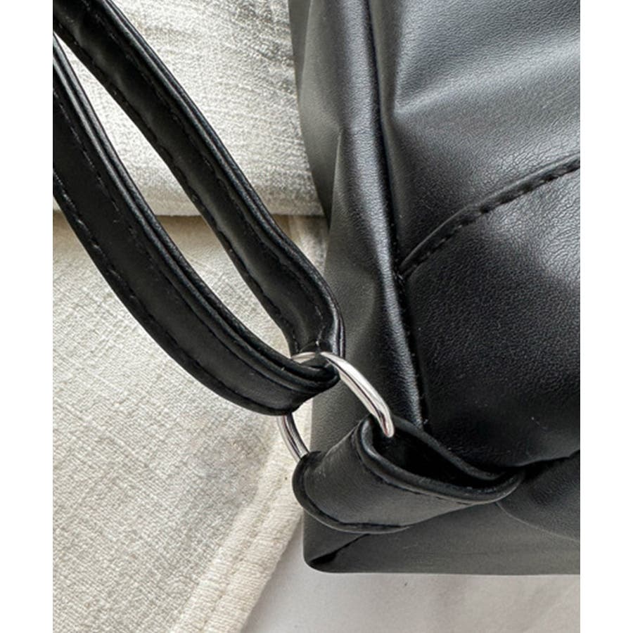 程よい艶感で大人っぽいアクセントを加えるフェイクレザーバッグ。