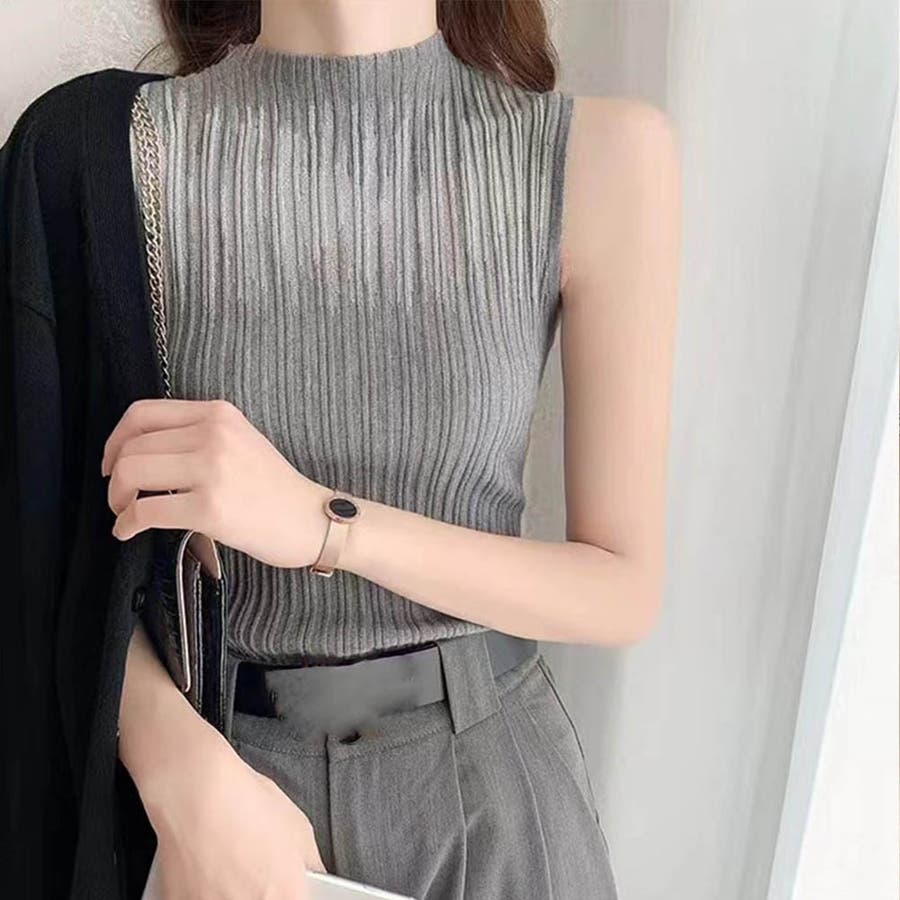 ノースリーブ仕様なので単品としてもインナーとしても使える1枚、どんなコーデにも馴染みやすい万能アイテム