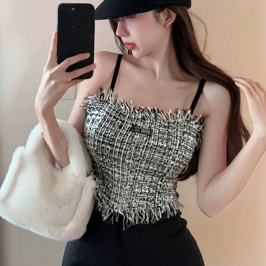 セクシーさと女子力を上げるツイード素材のキャミソール