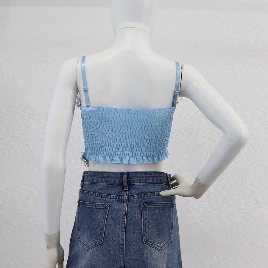 シャーリングキャミ 韓国風 トップス フレンチ 肌見せ