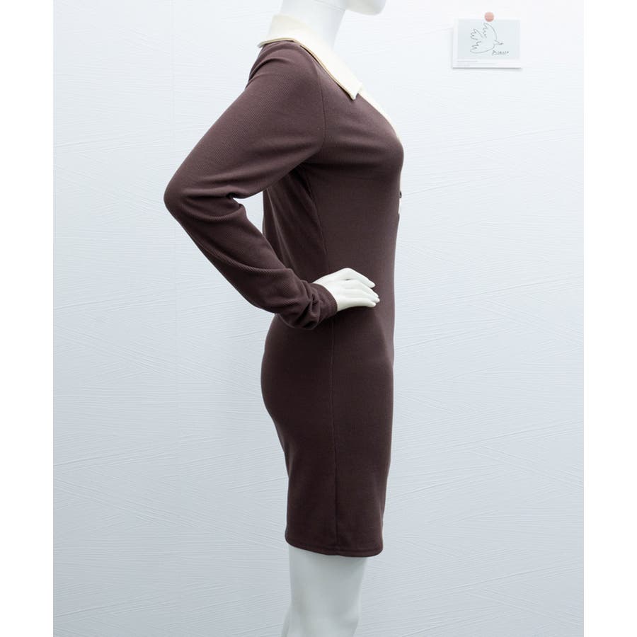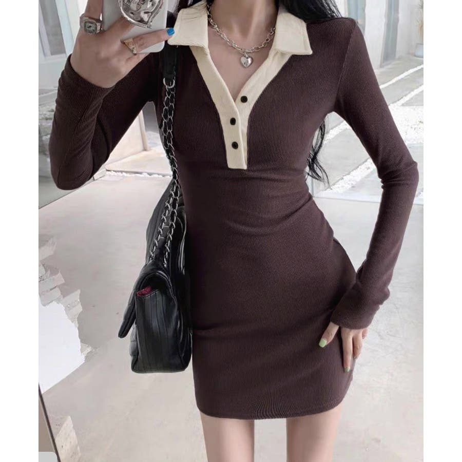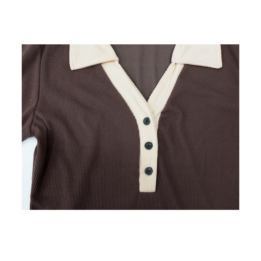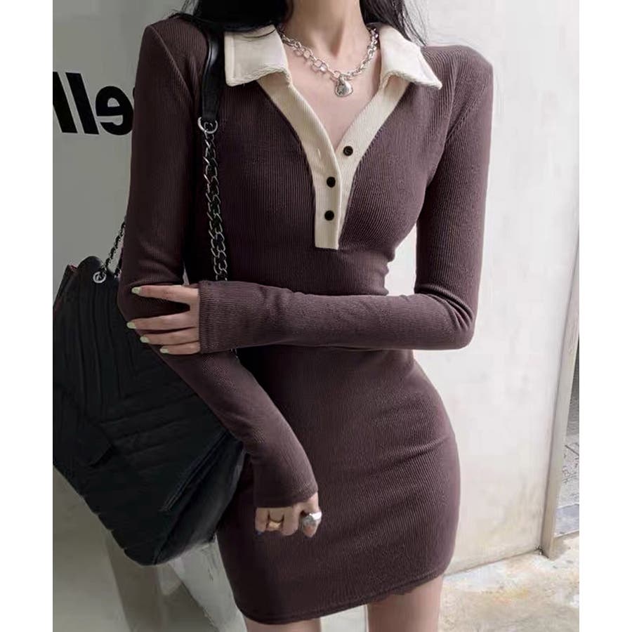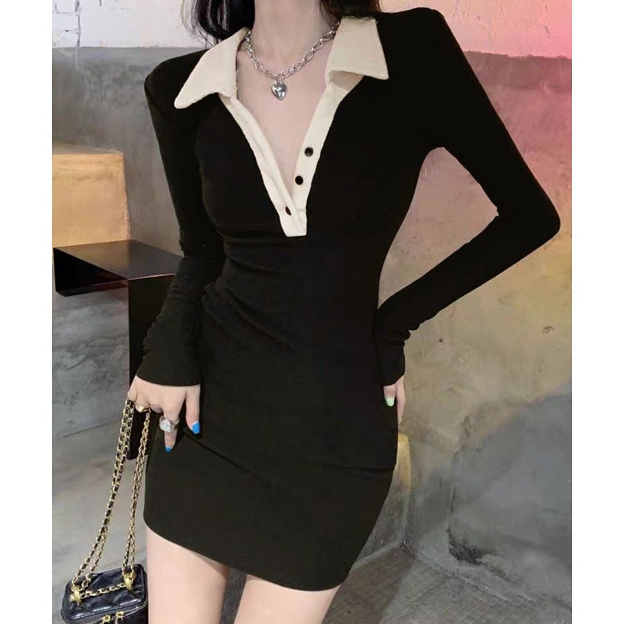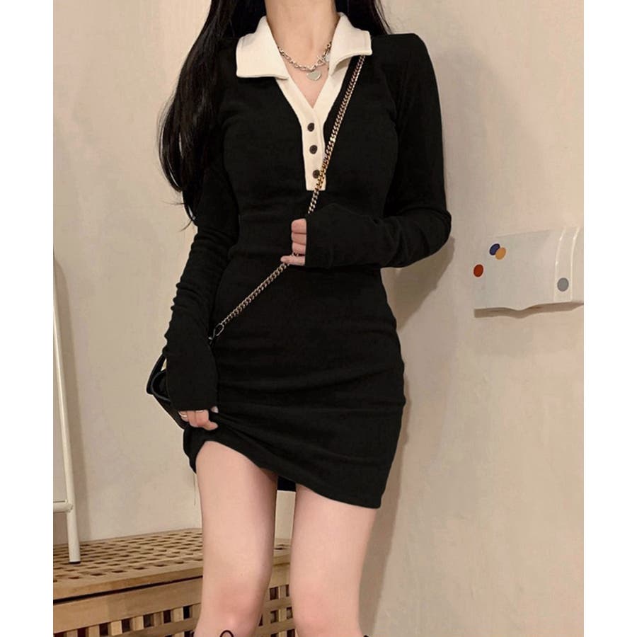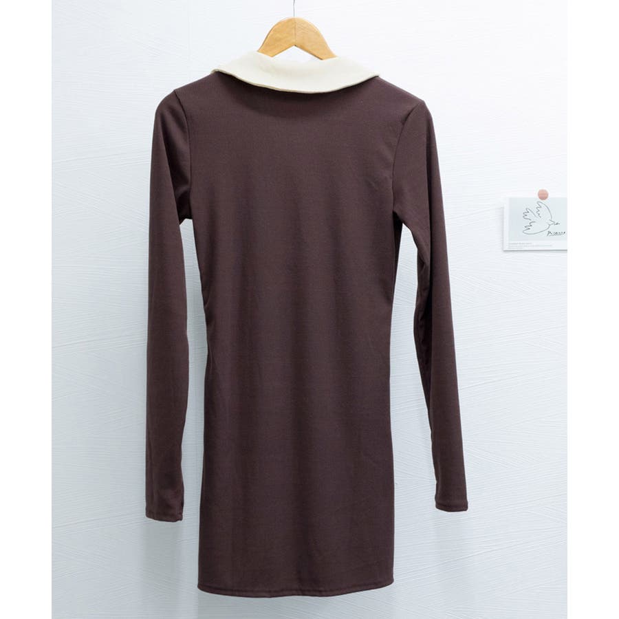 ポロネックミニワンピ 女性らしい Vネック レトロっぽ 柔らか 長袖 ポロ襟 セクシー おしゃれ ショート丈 ワンピース