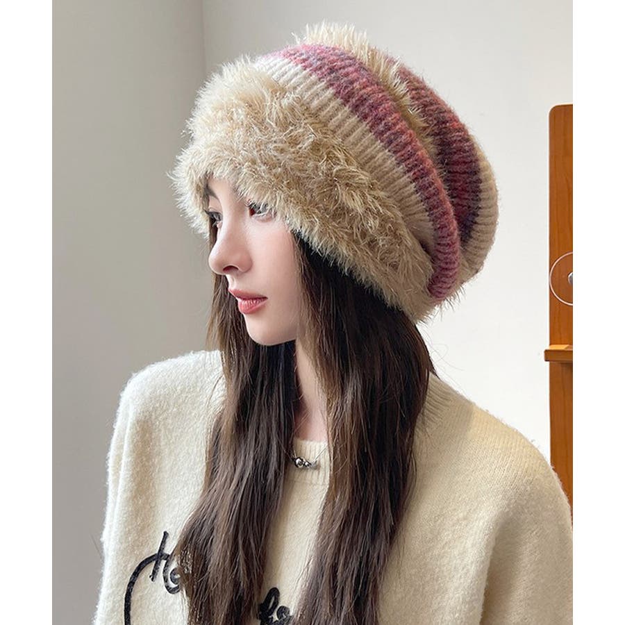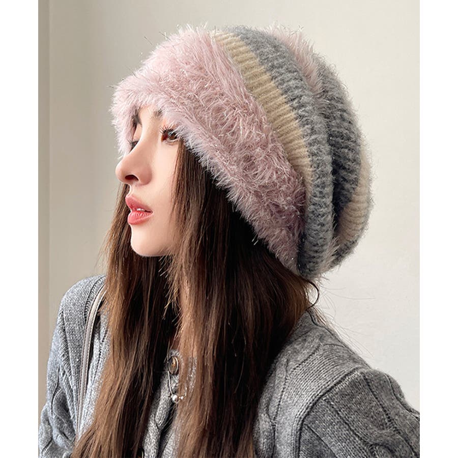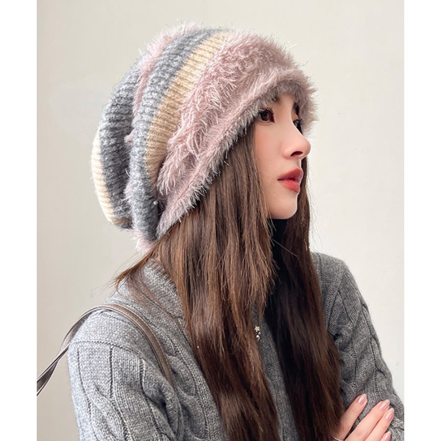 ふわふわ素材が可愛いニット帽です。