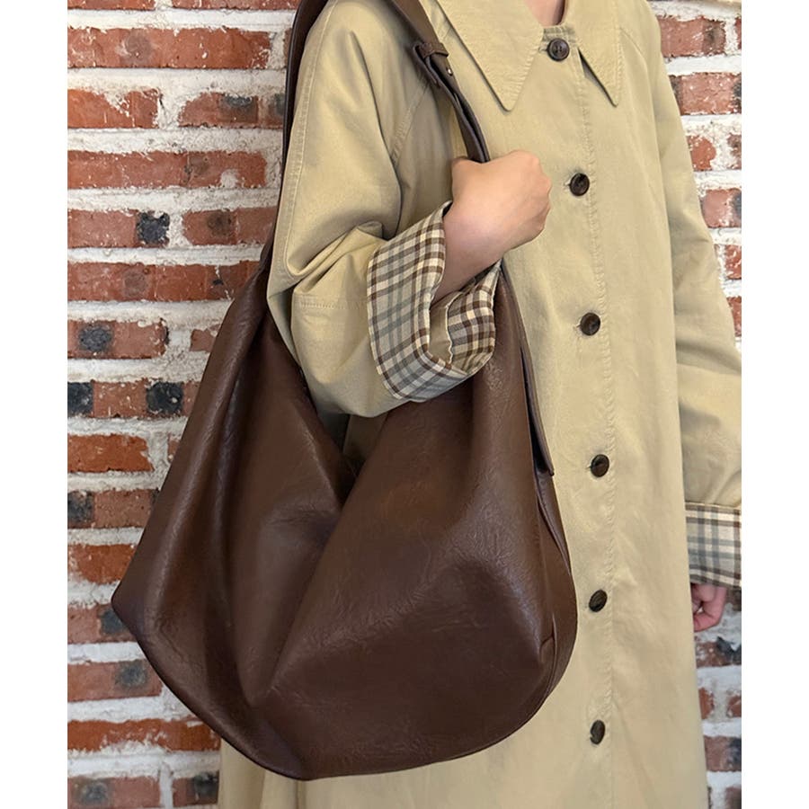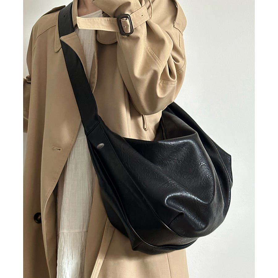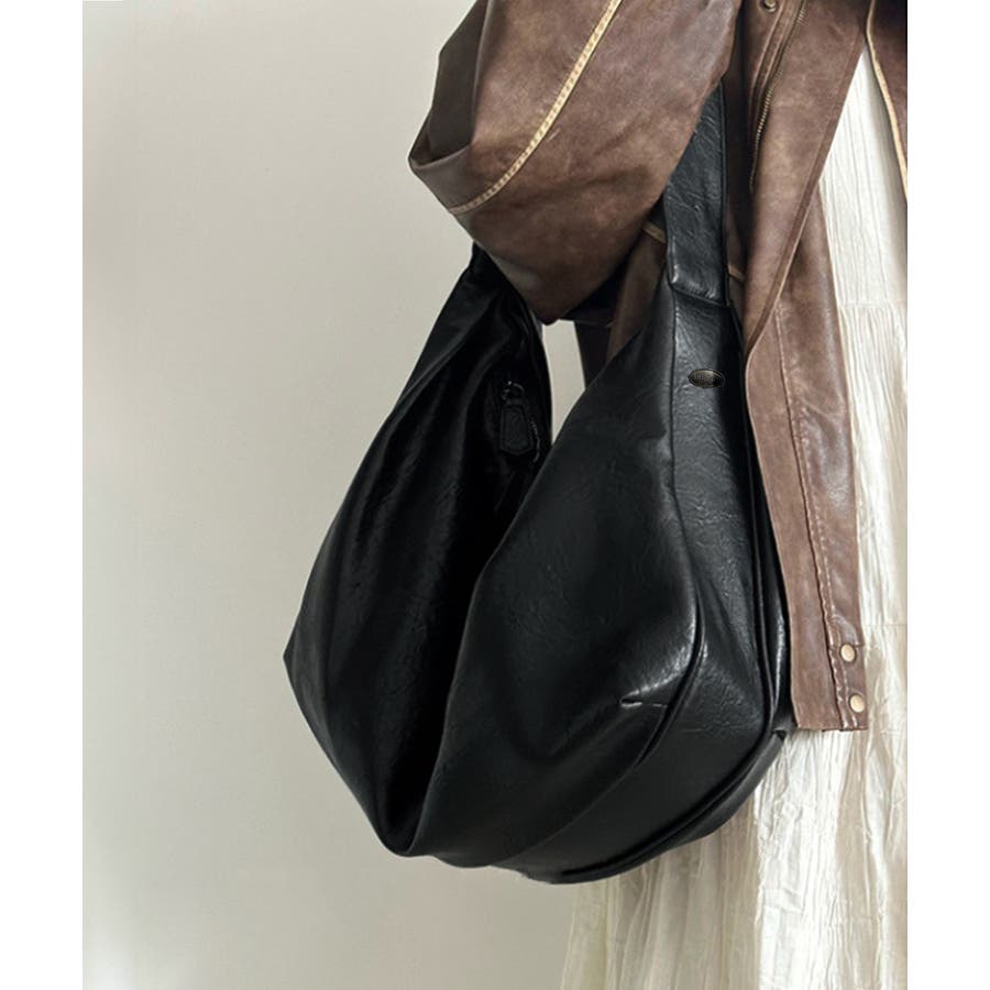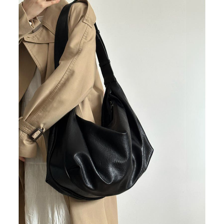 くったりとした風合いのフェイクレザーを使用しているので、持ったときに身体に馴染みやすく、デイリー使いにぴったり。