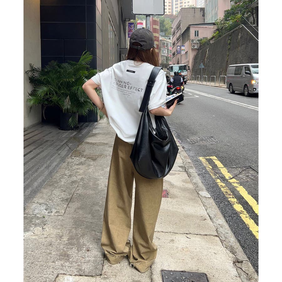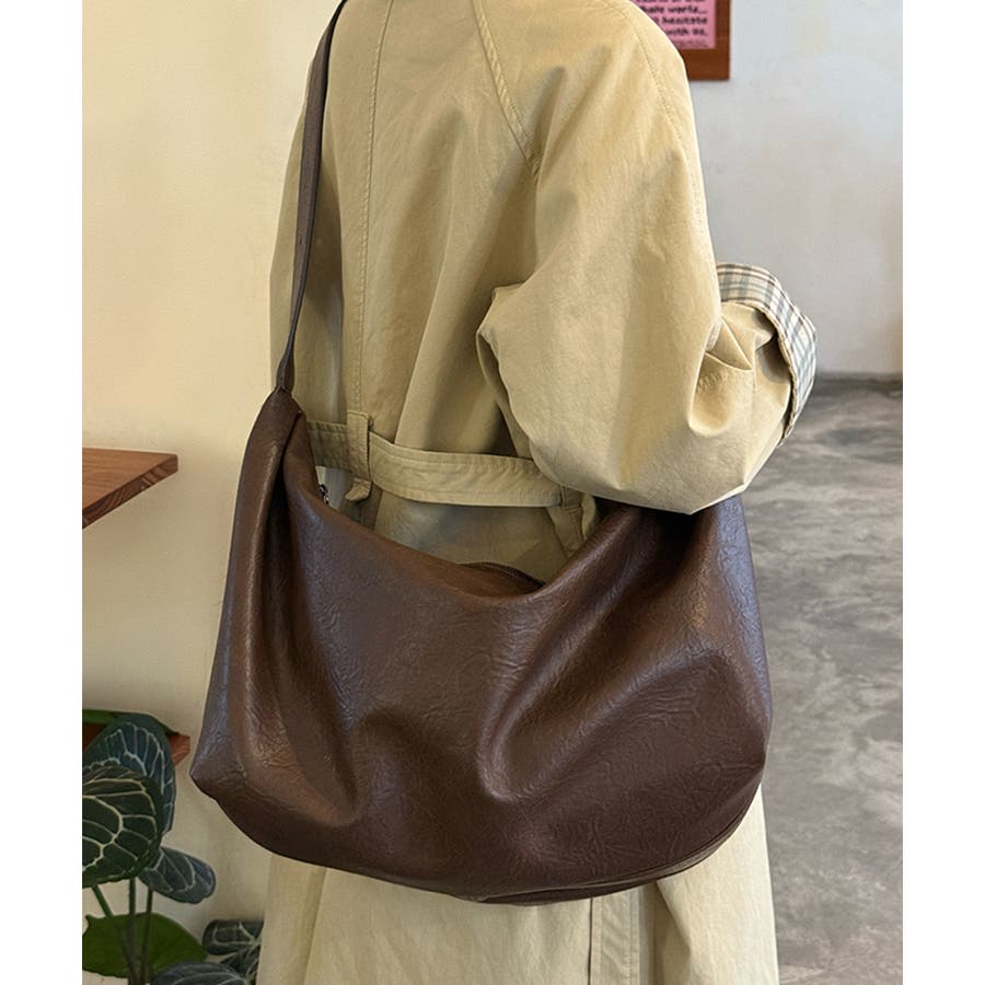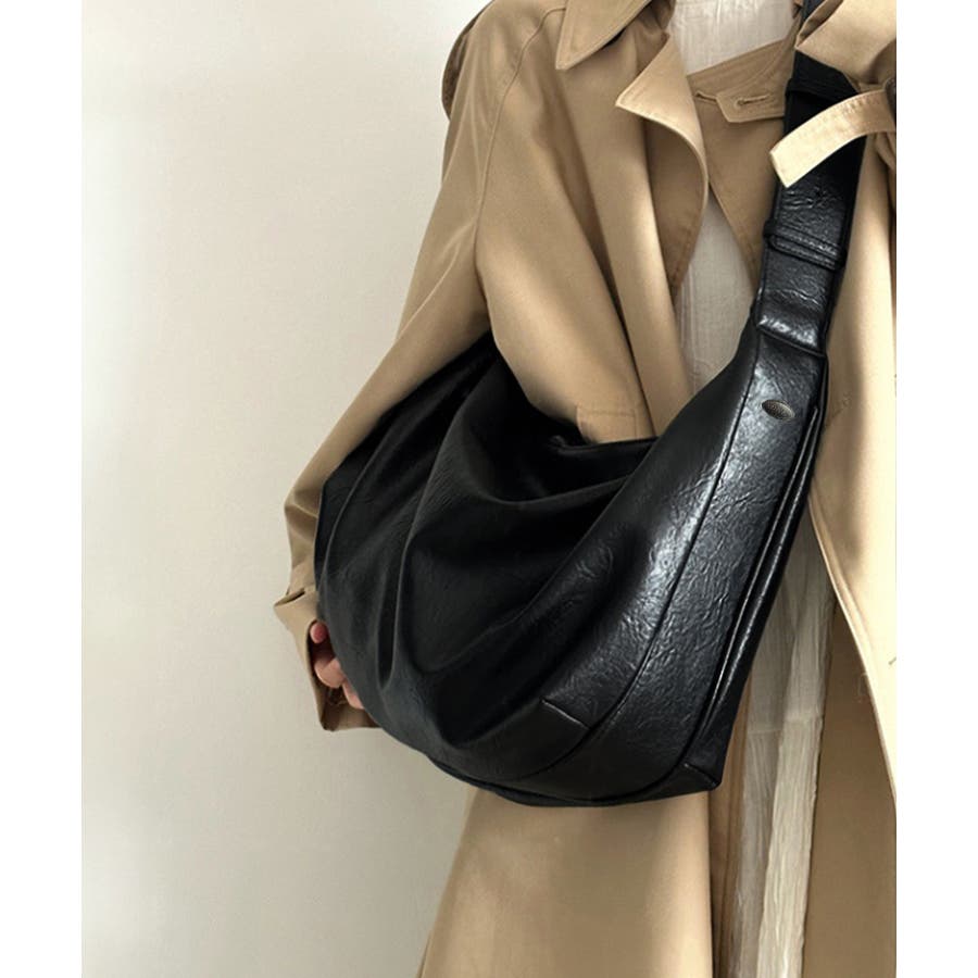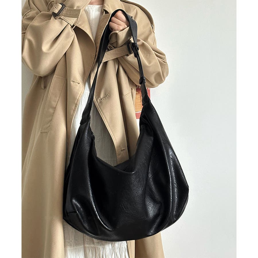 くったりとした風合いのフェイクレザーを使用しているので、持ったときに身体に馴染みやすく、デイリー使いにぴったり。