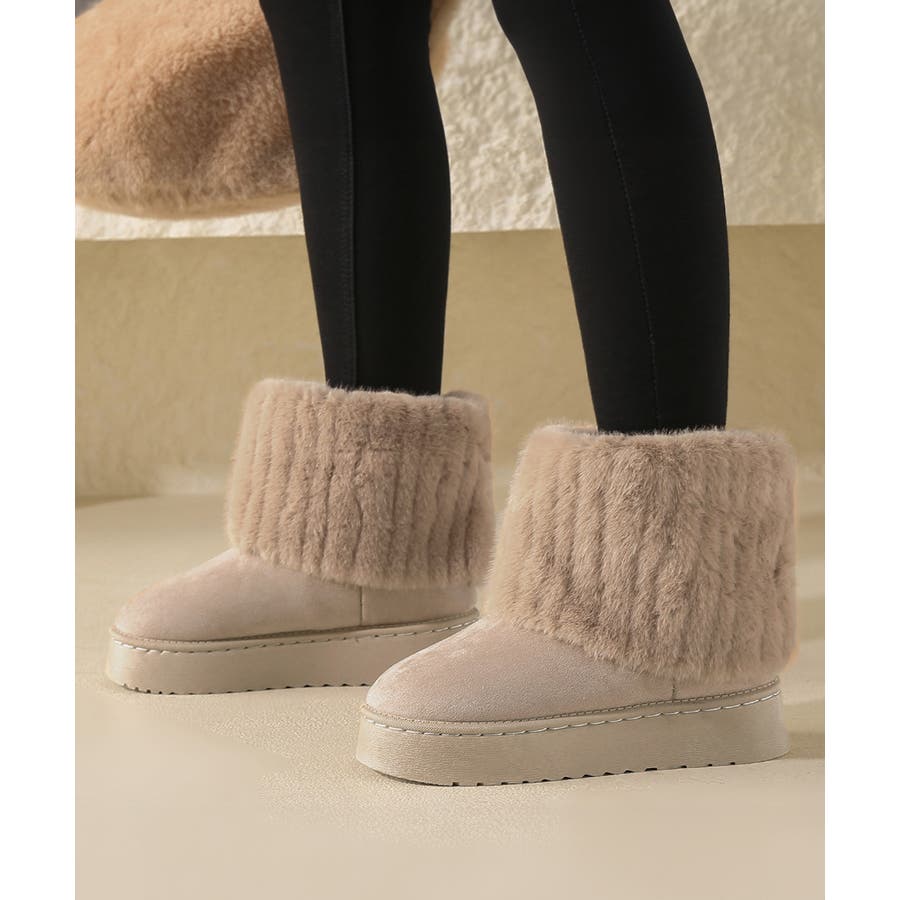 秋冬の定番靴、シンプルなデザインで着る服を選ばない無地のムートンブーツ。