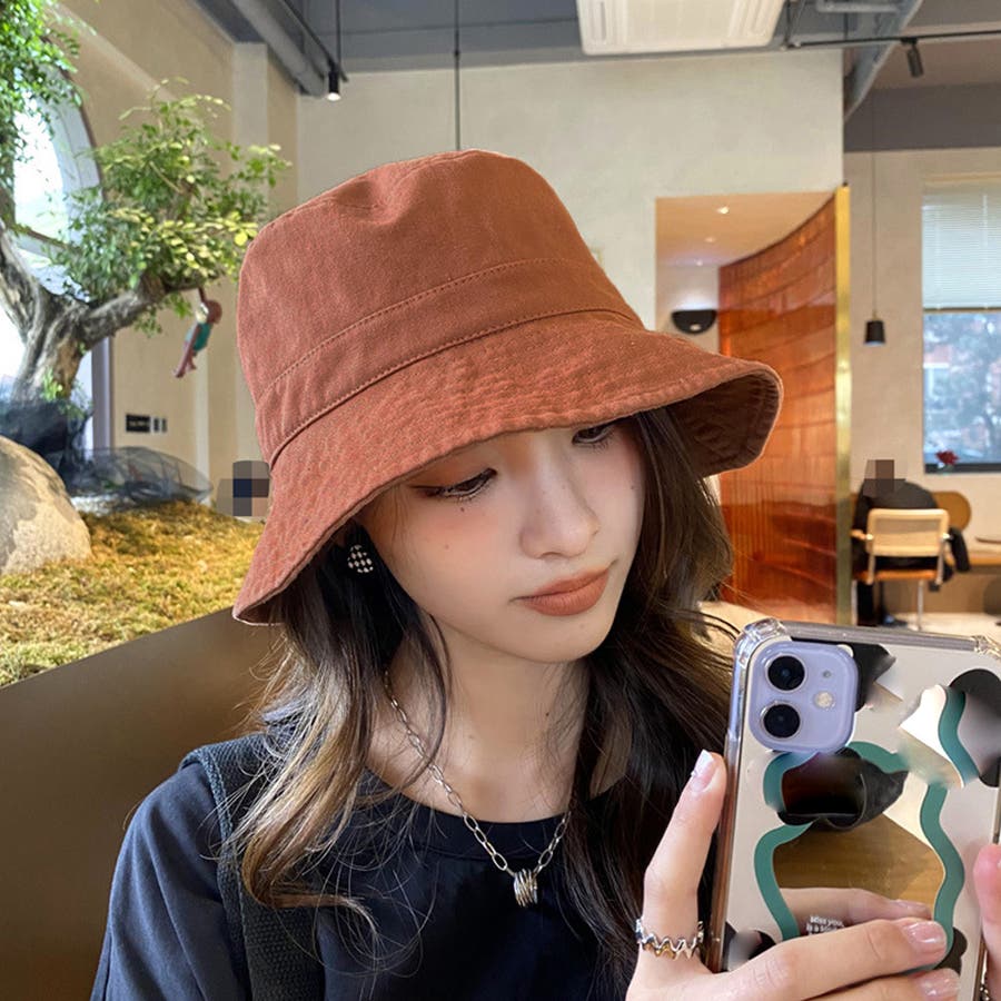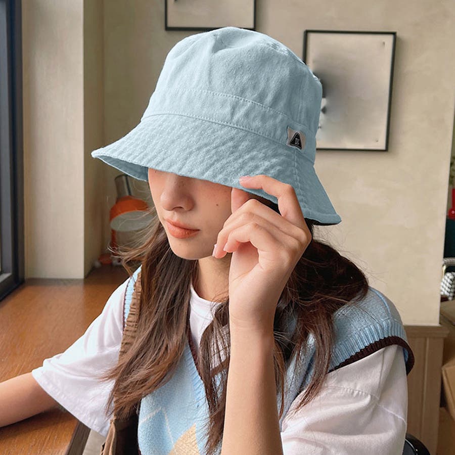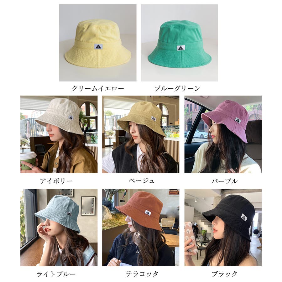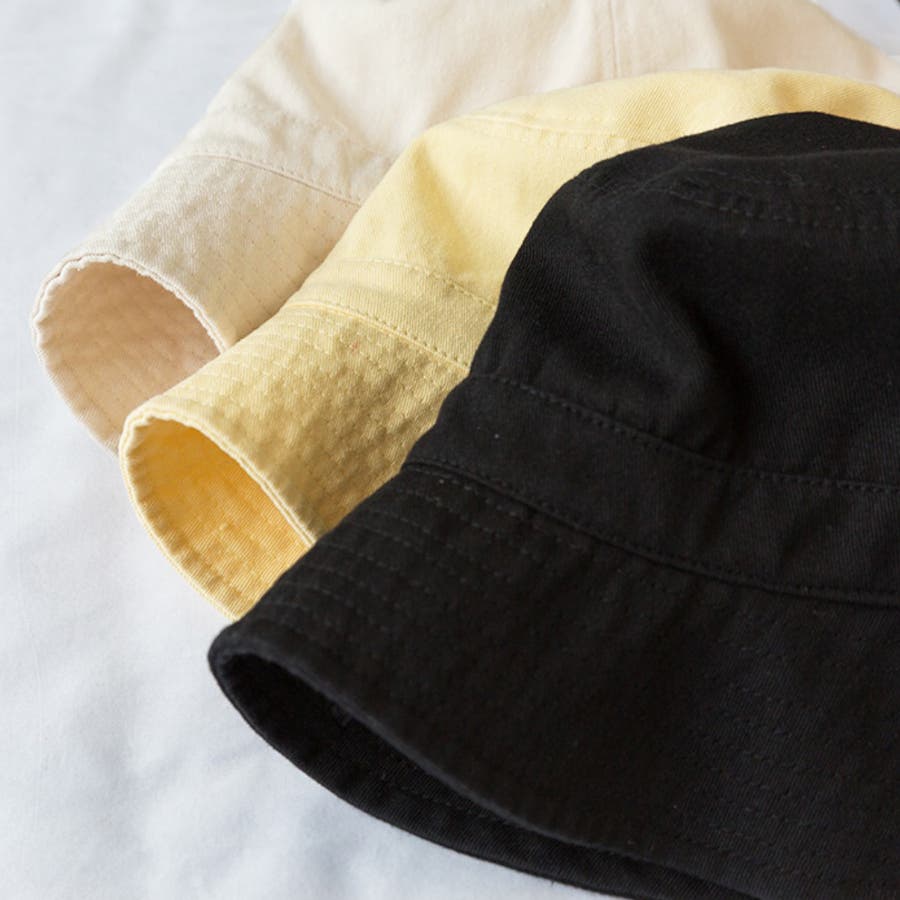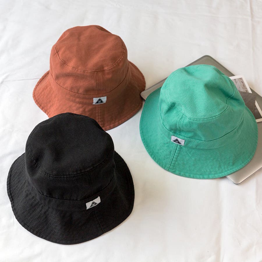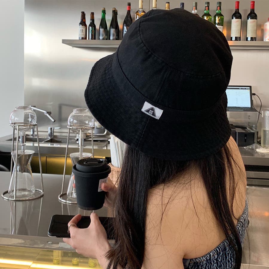 外側に英字ロゴのタグが付いたバケットハットの登場。