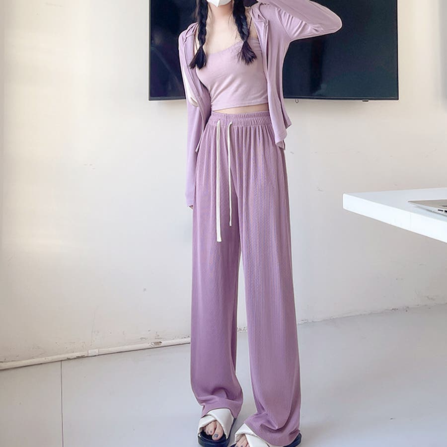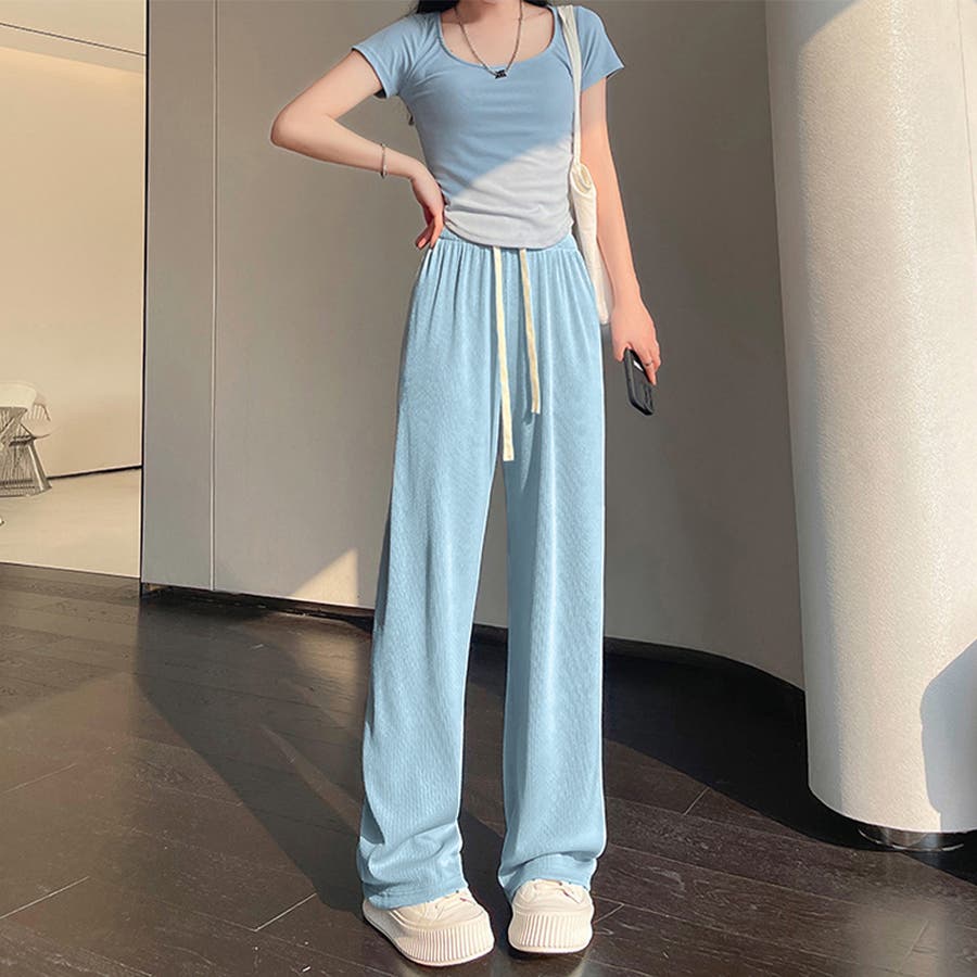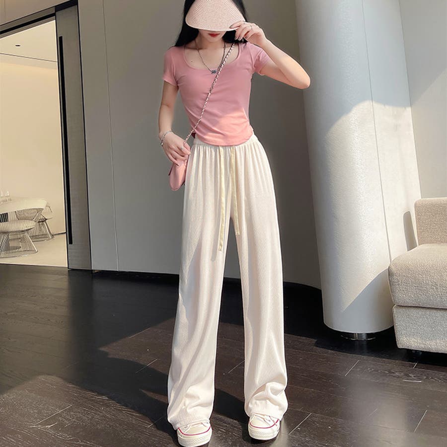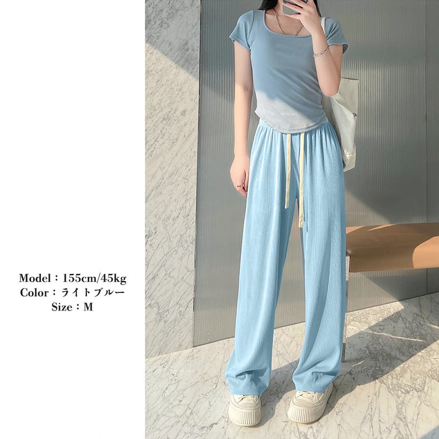 体型カバーズボン 薄手ボトムス 脚長楽ちんパンツ