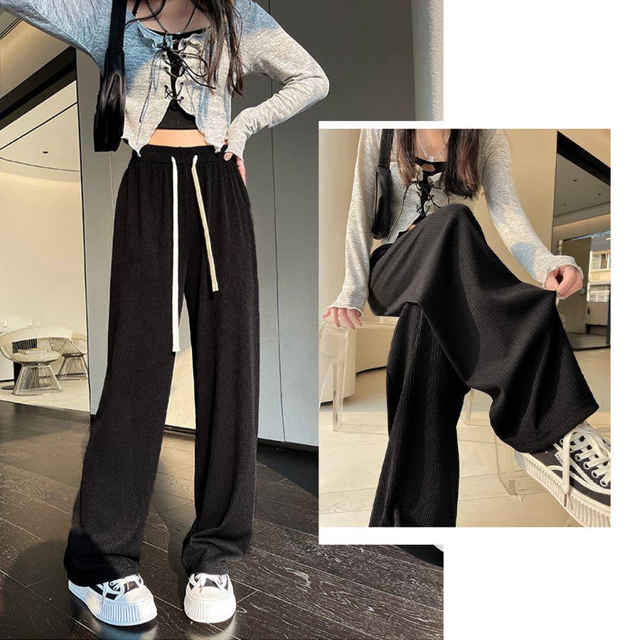 立体感のある細めのリブと程よくワイドなストレートシルエットを持つセミワイドパンツ。