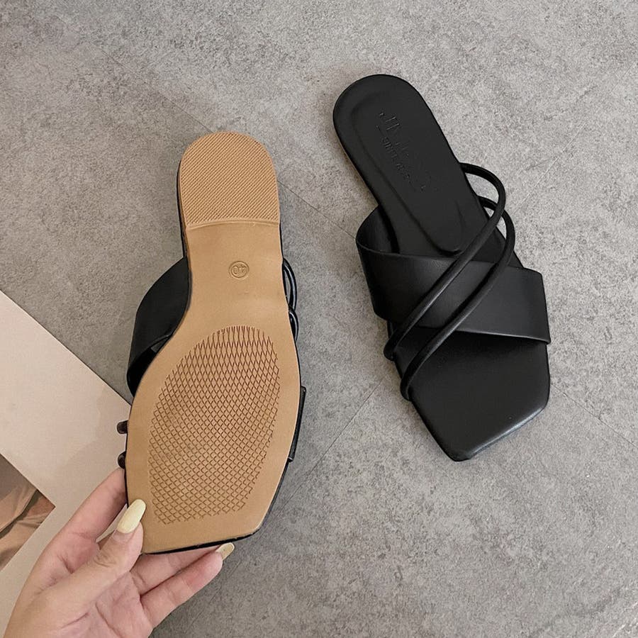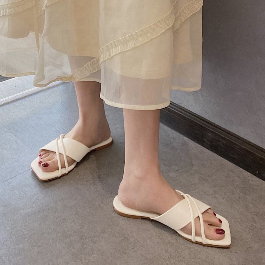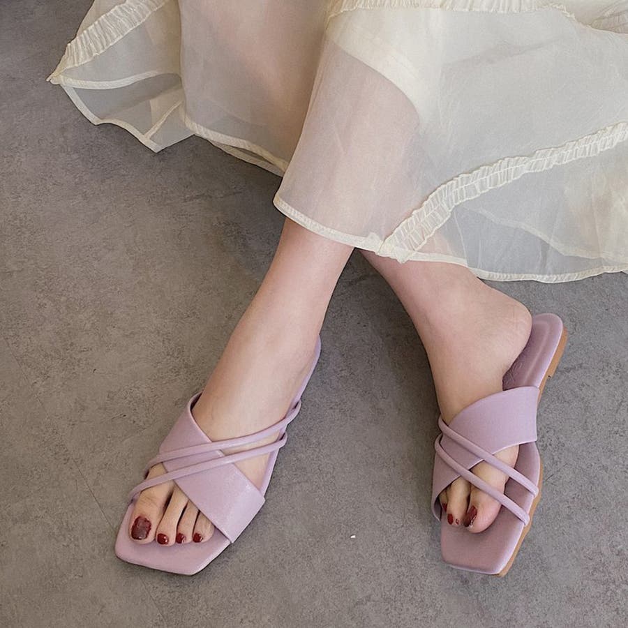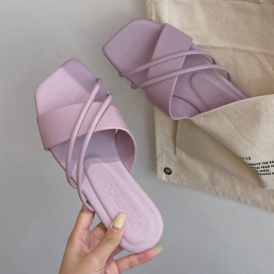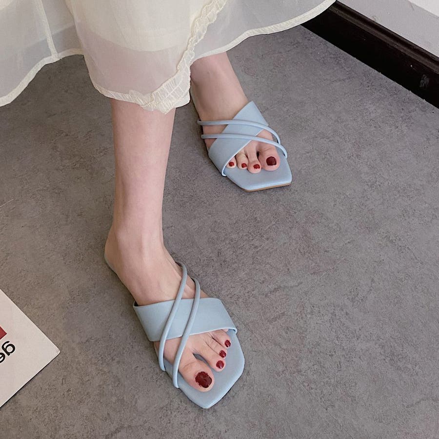 クロスデザインがこなれ感をプラスするカラーサンダル