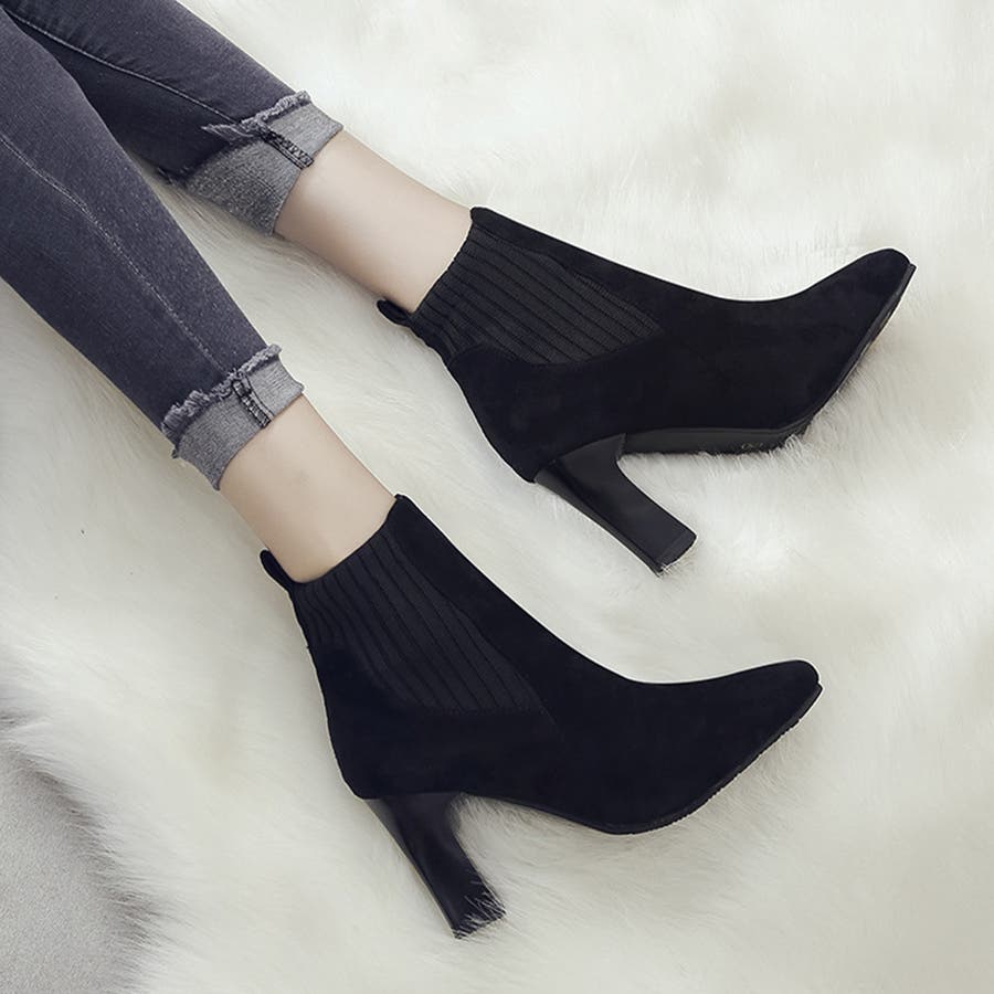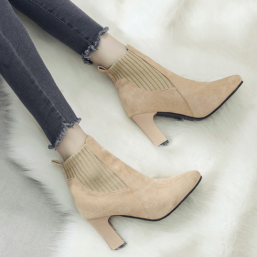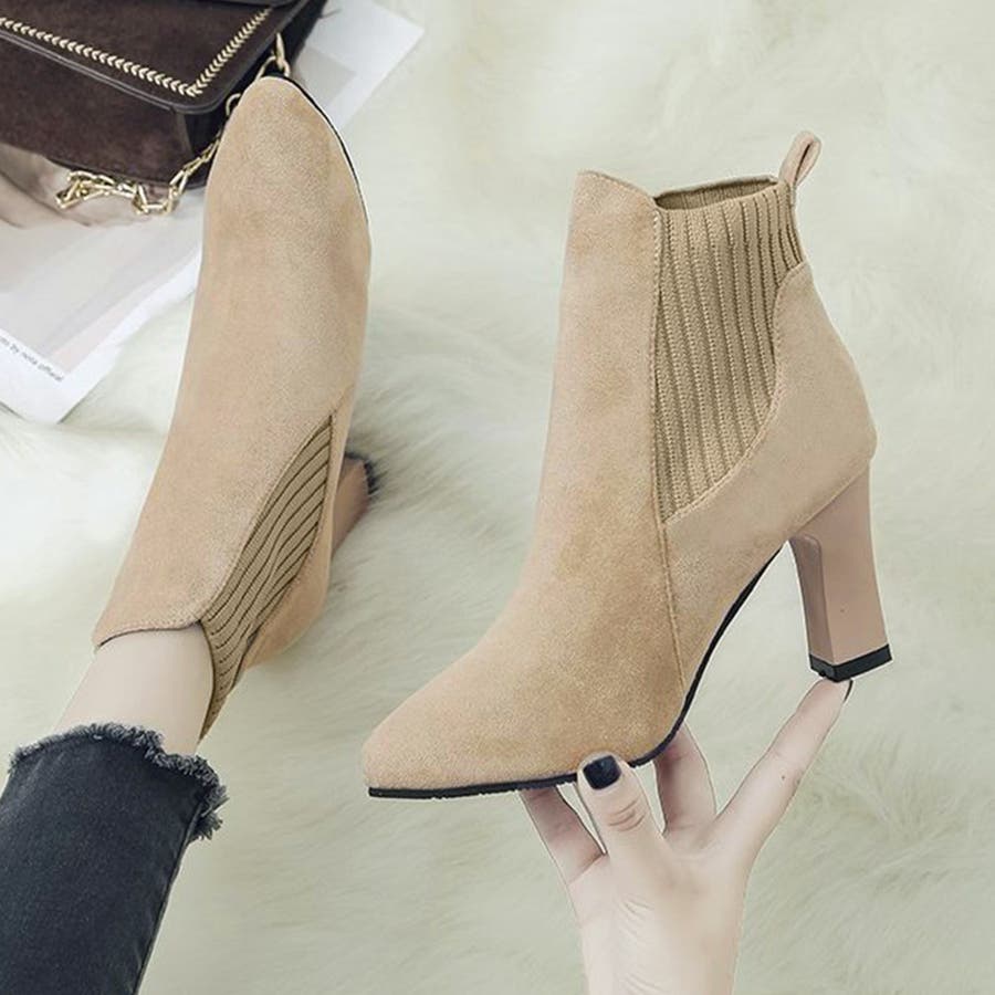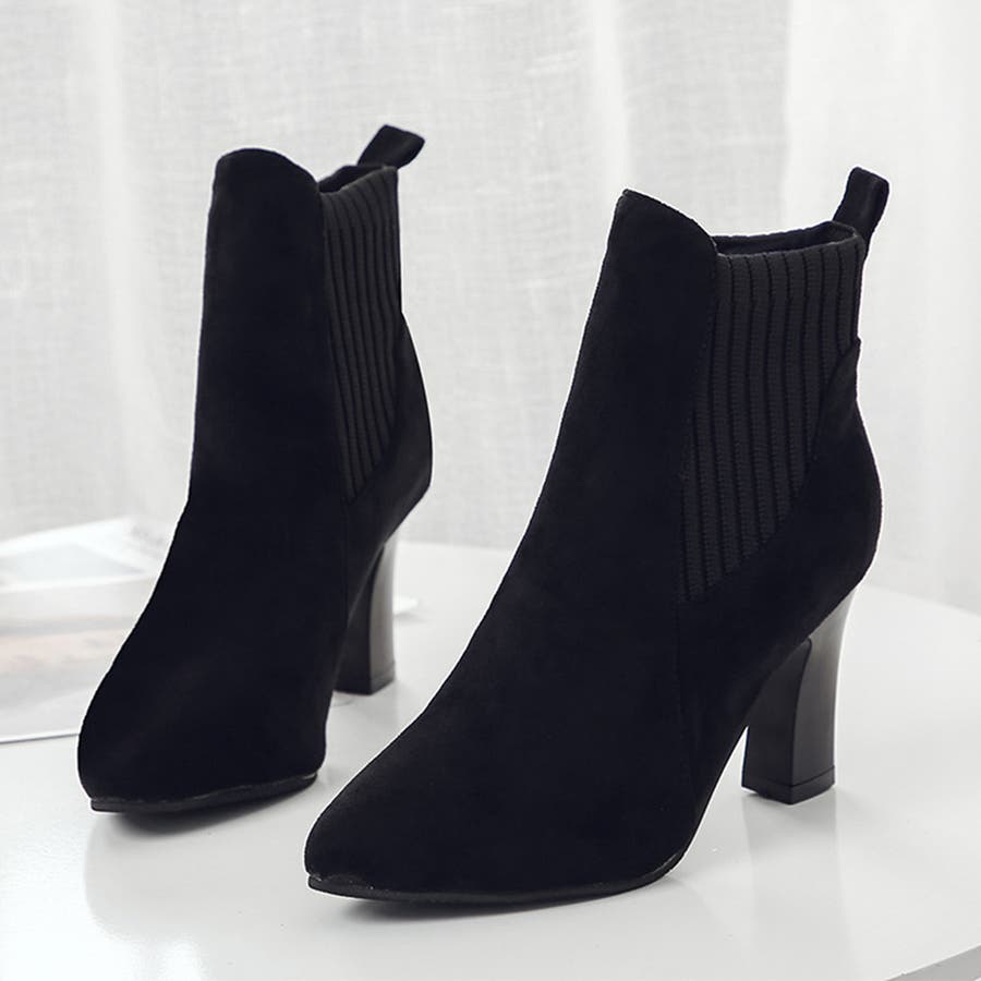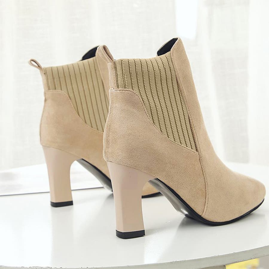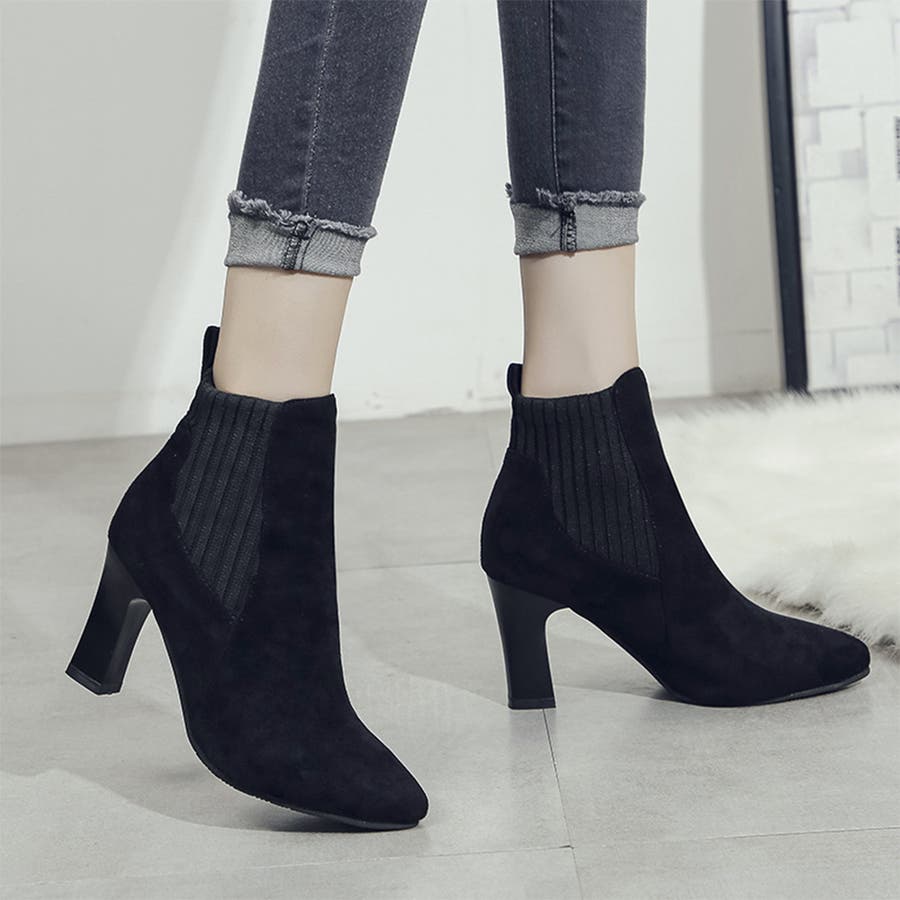 チャンキーヒール靴 美脚ブーツ 新作 履きやすいブーツ