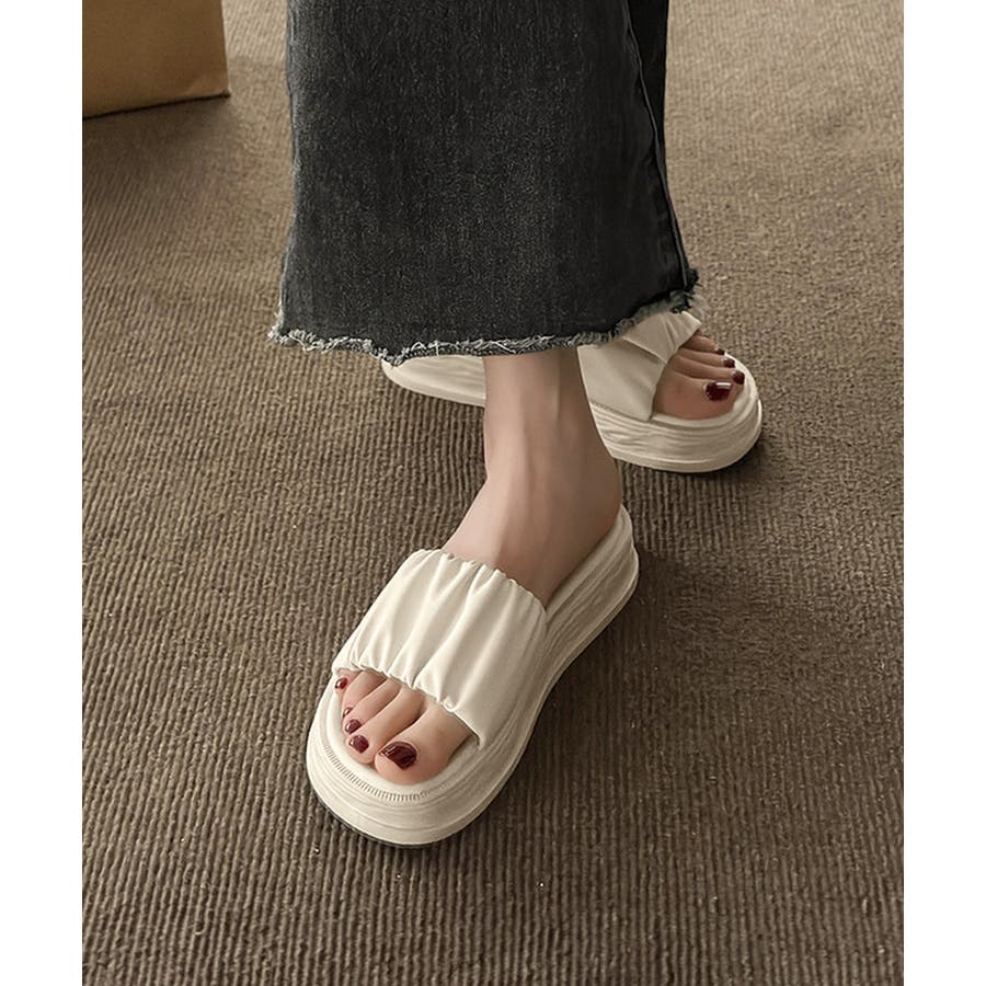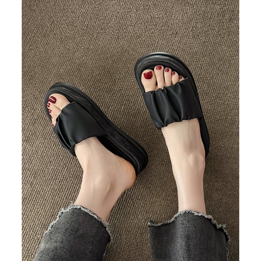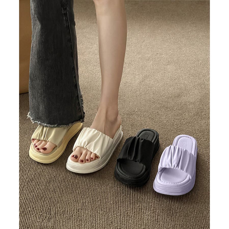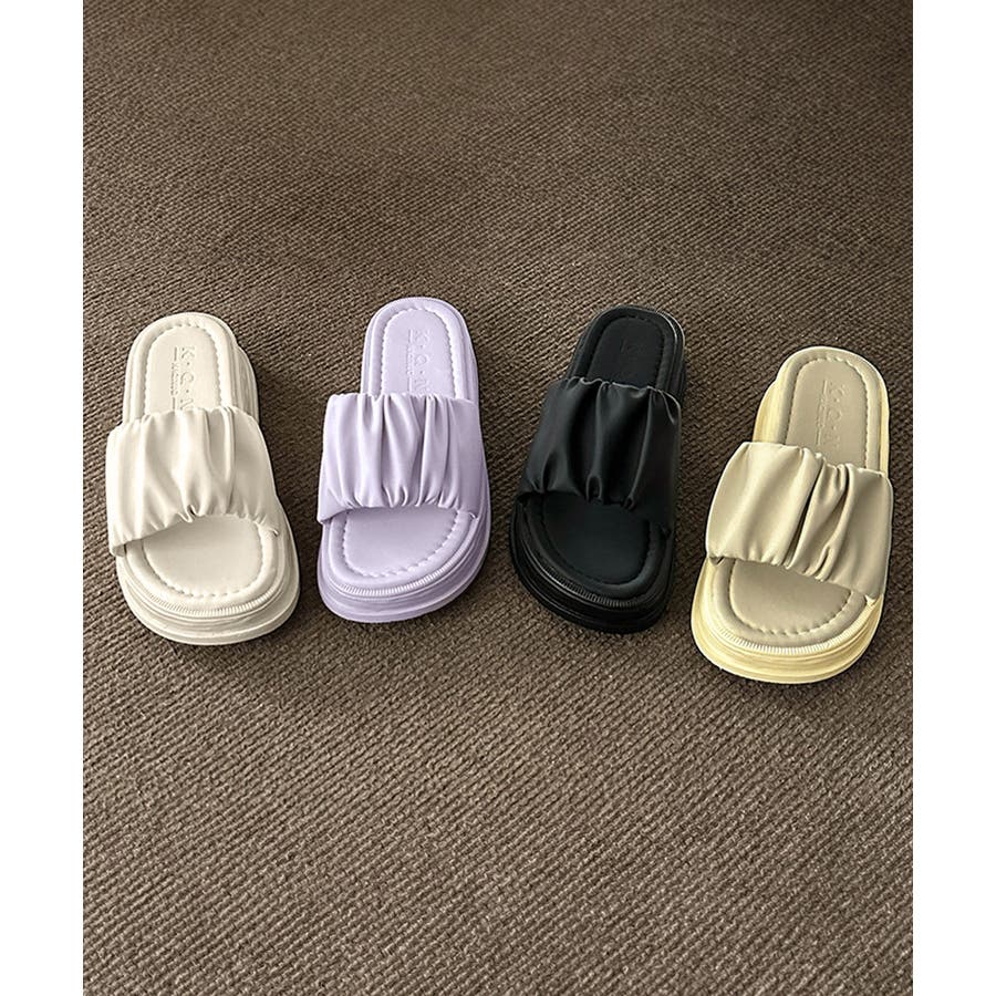 スタイルに合わせやすいブラック、アイボリー、クリームとラベンダー、ベーシックなカラー展開の厚底サンダル。