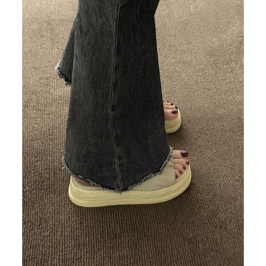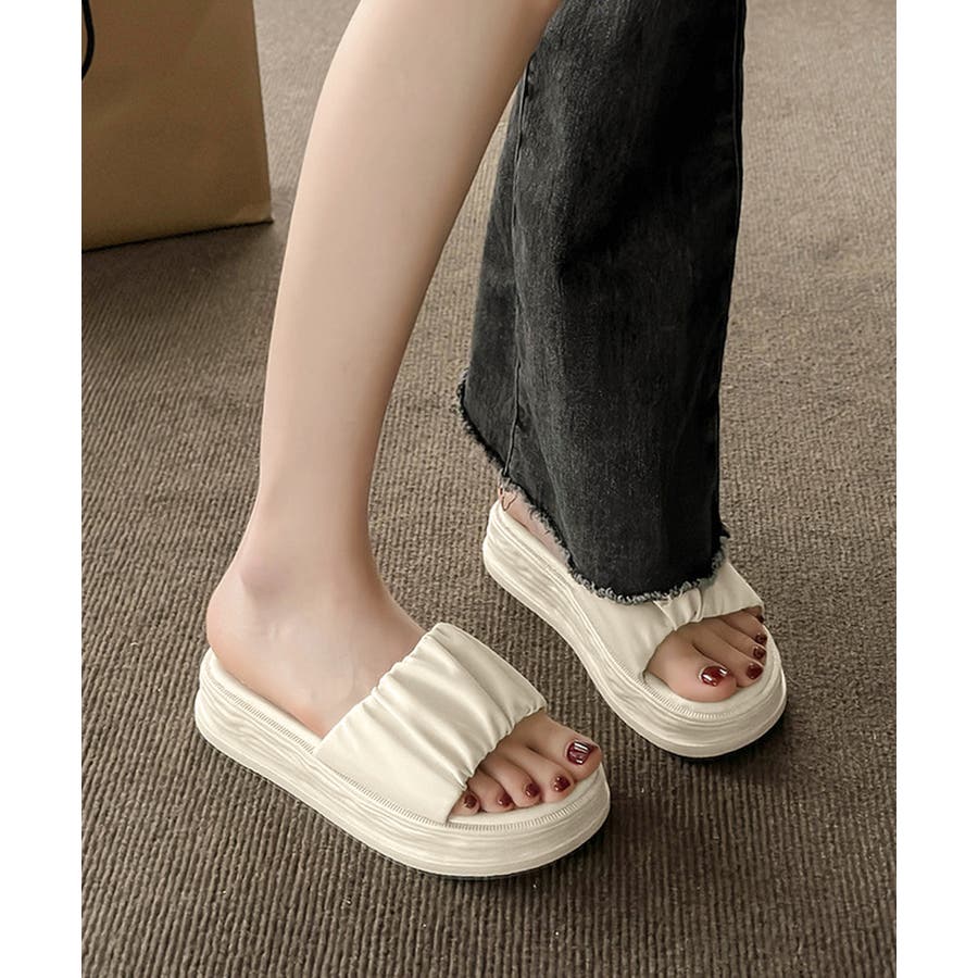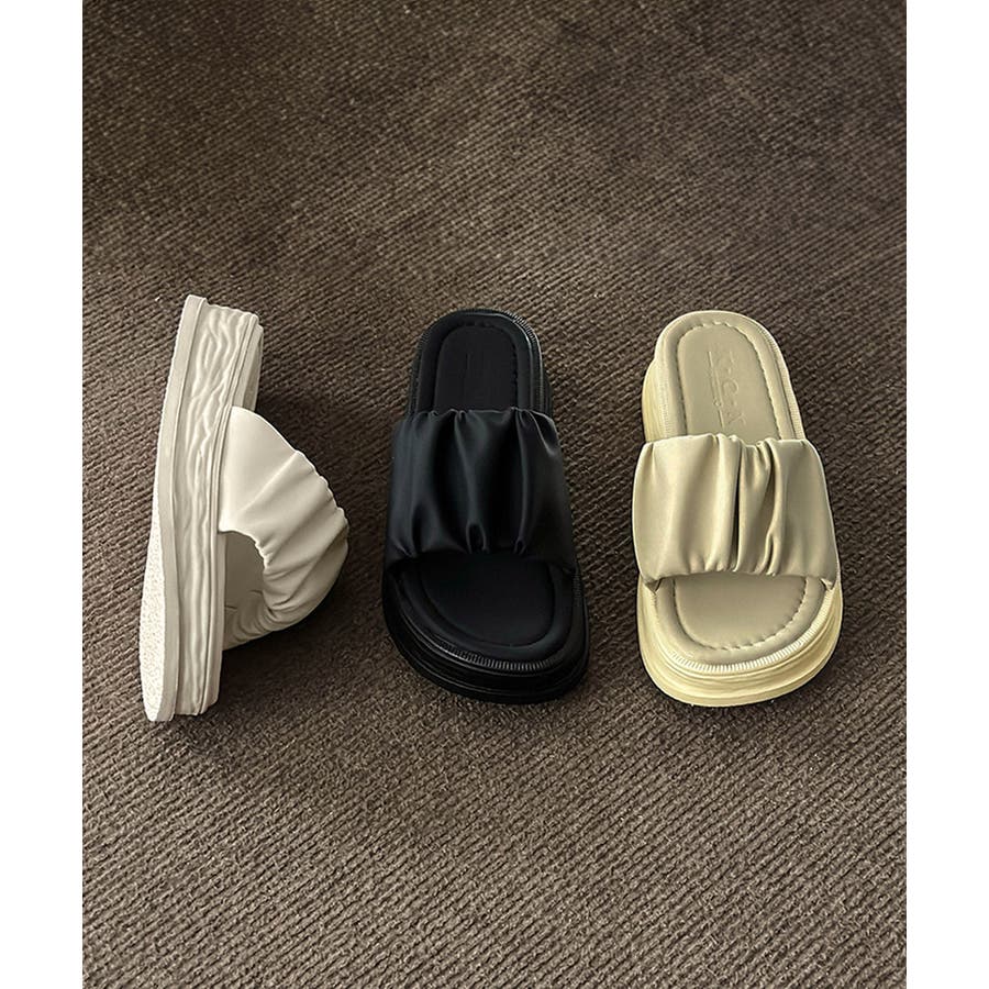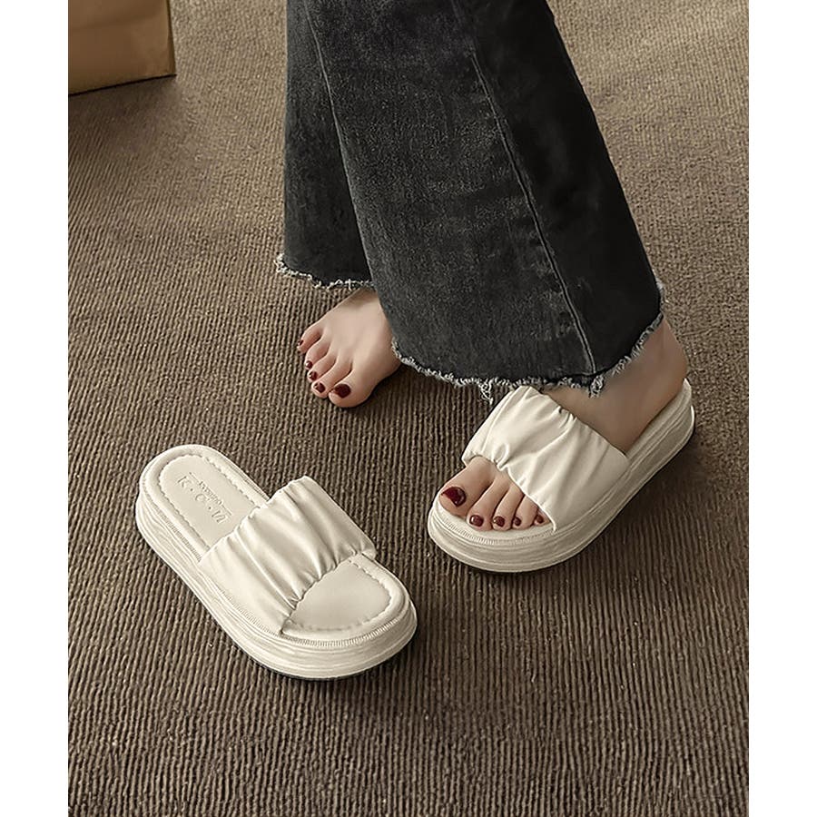 スタイルに合わせやすいブラック、アイボリー、クリームとラベンダー、ベーシックなカラー展開の厚底サンダル。
