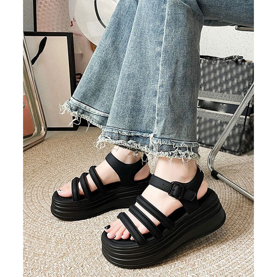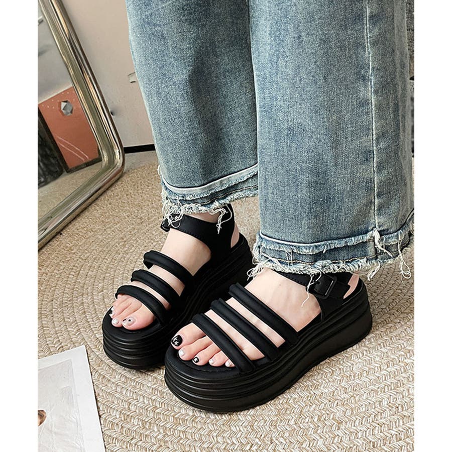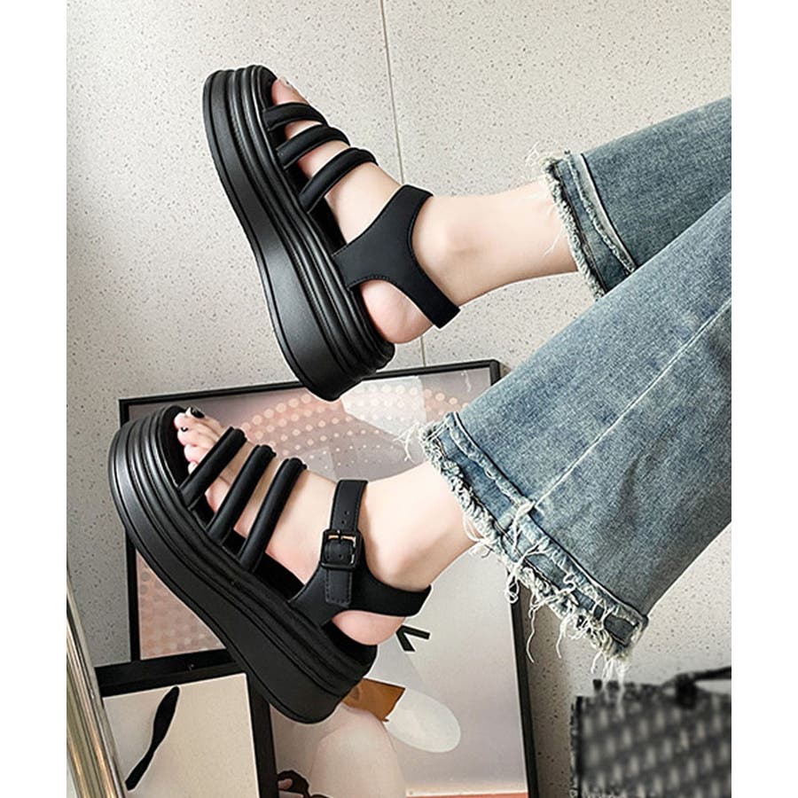 ストラップサンダル 厚底 美脚 夏くつ