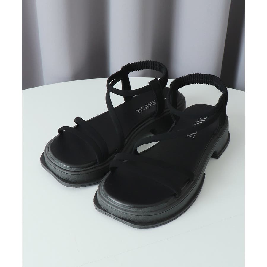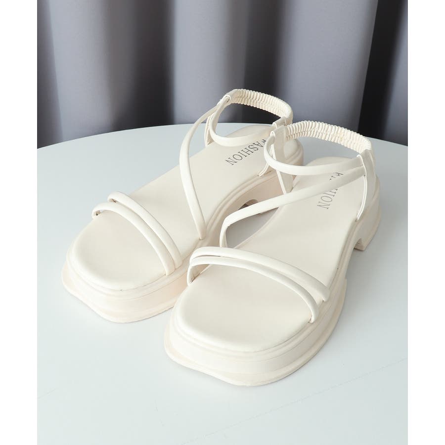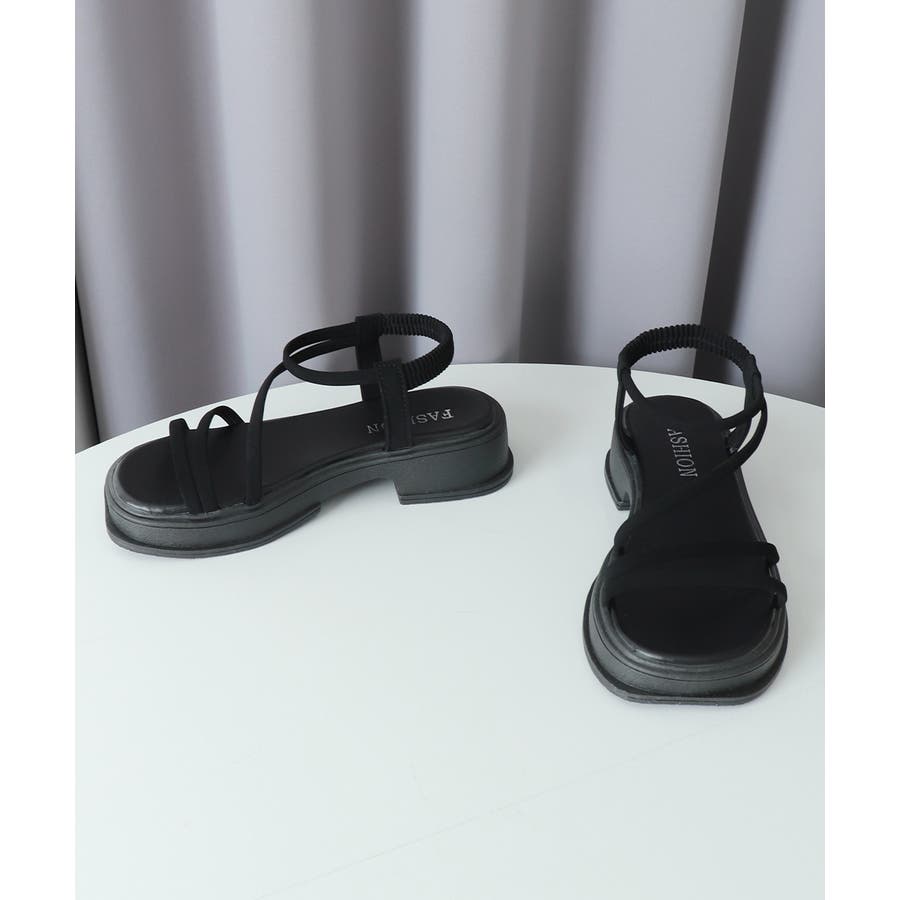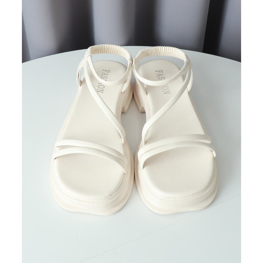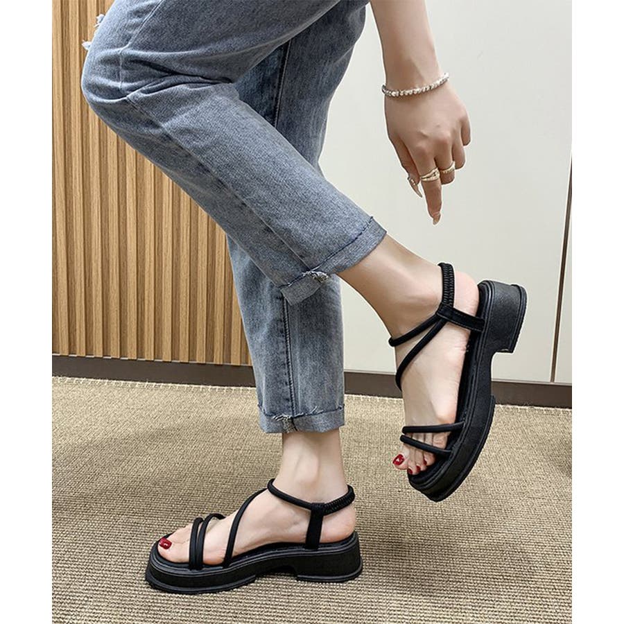 細めのストラップは女性らしい足元を演出する厚底サンダル。