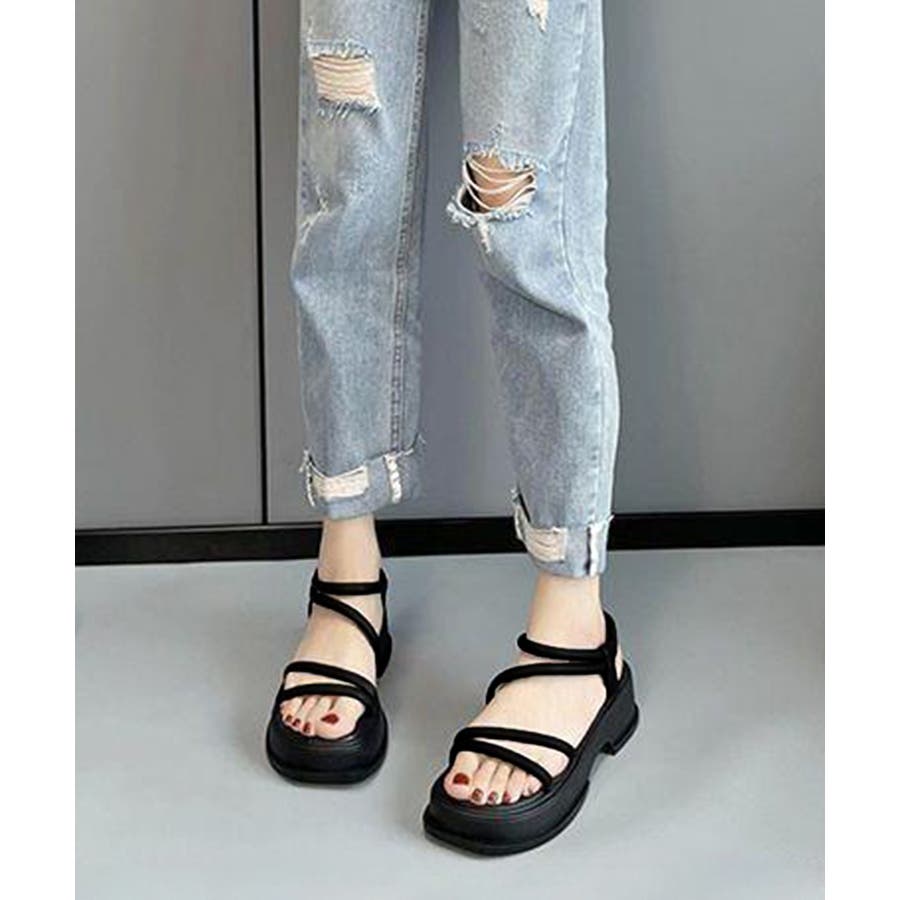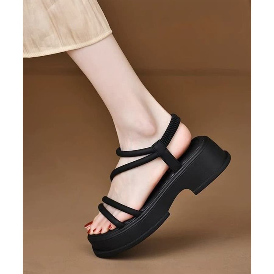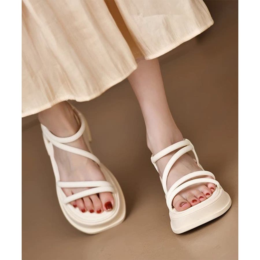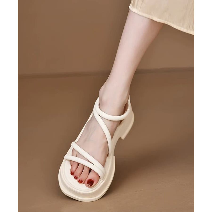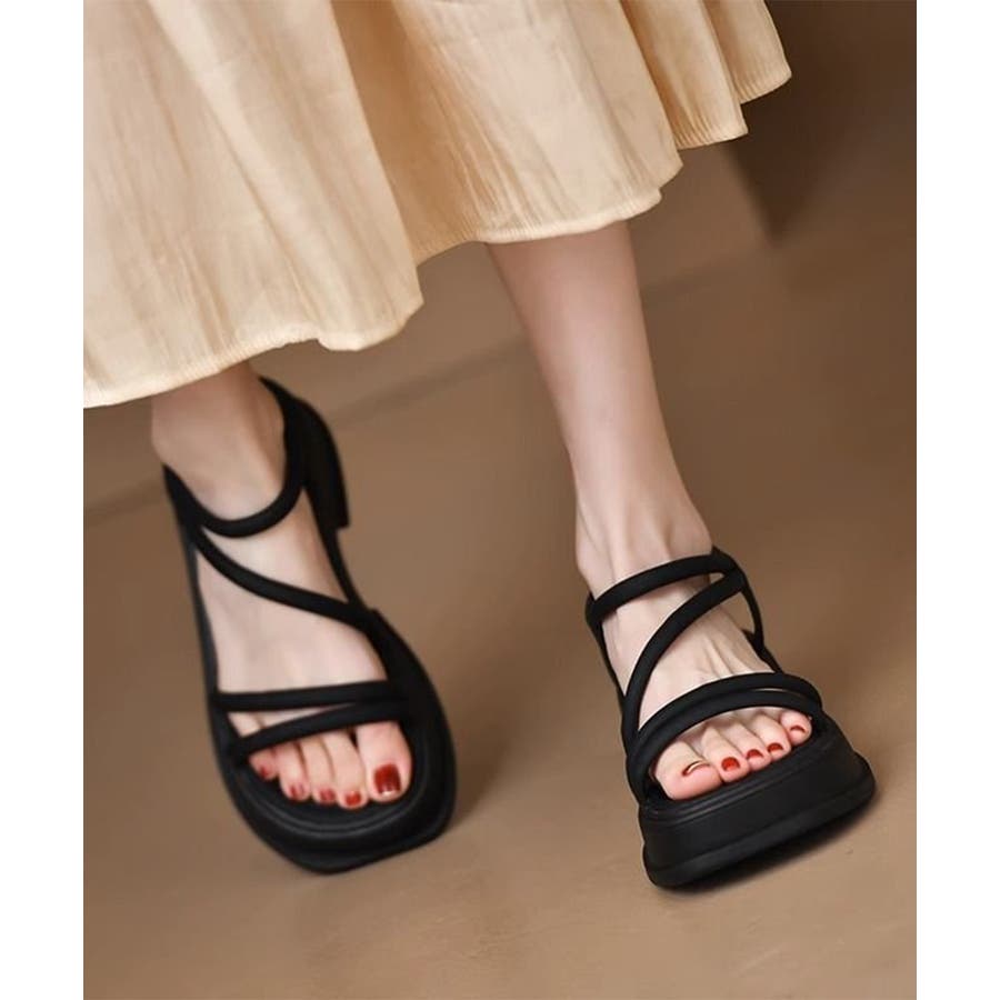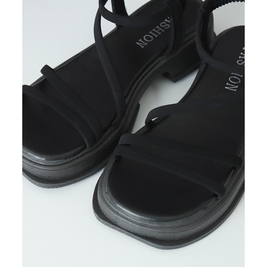 細めのストラップは女性らしい足元を演出する厚底サンダル。