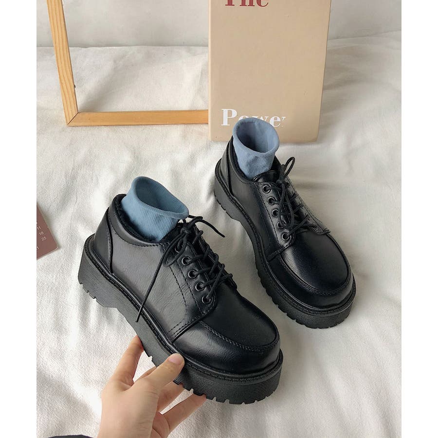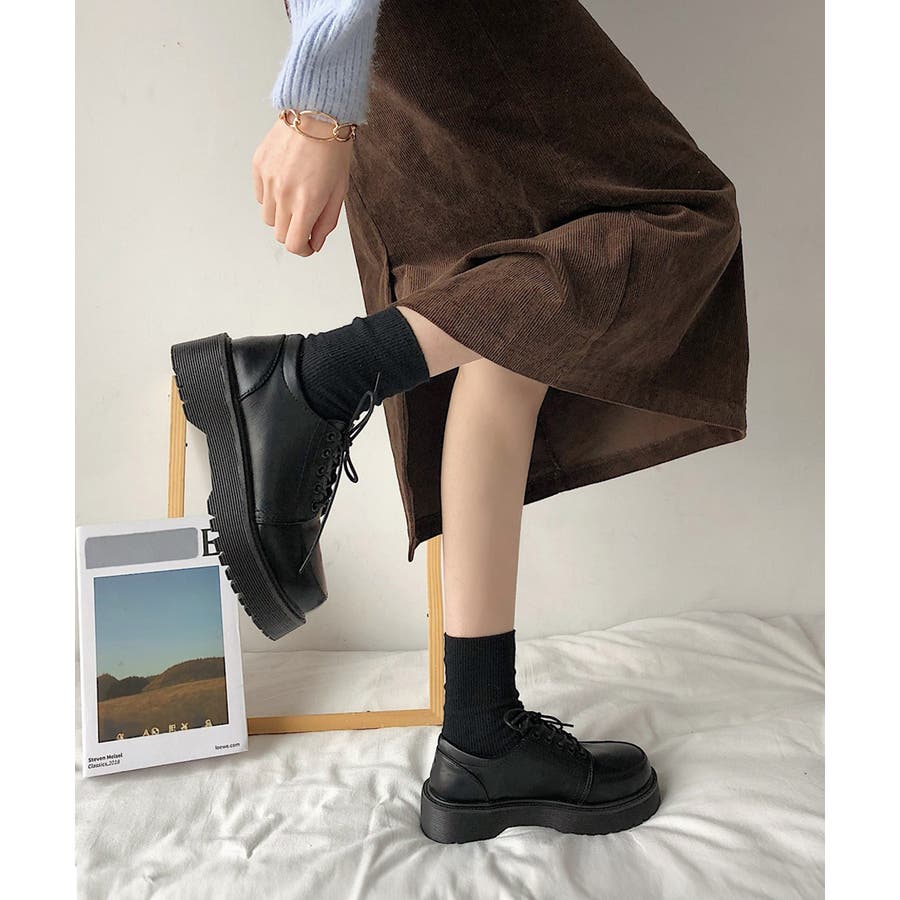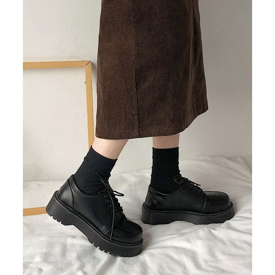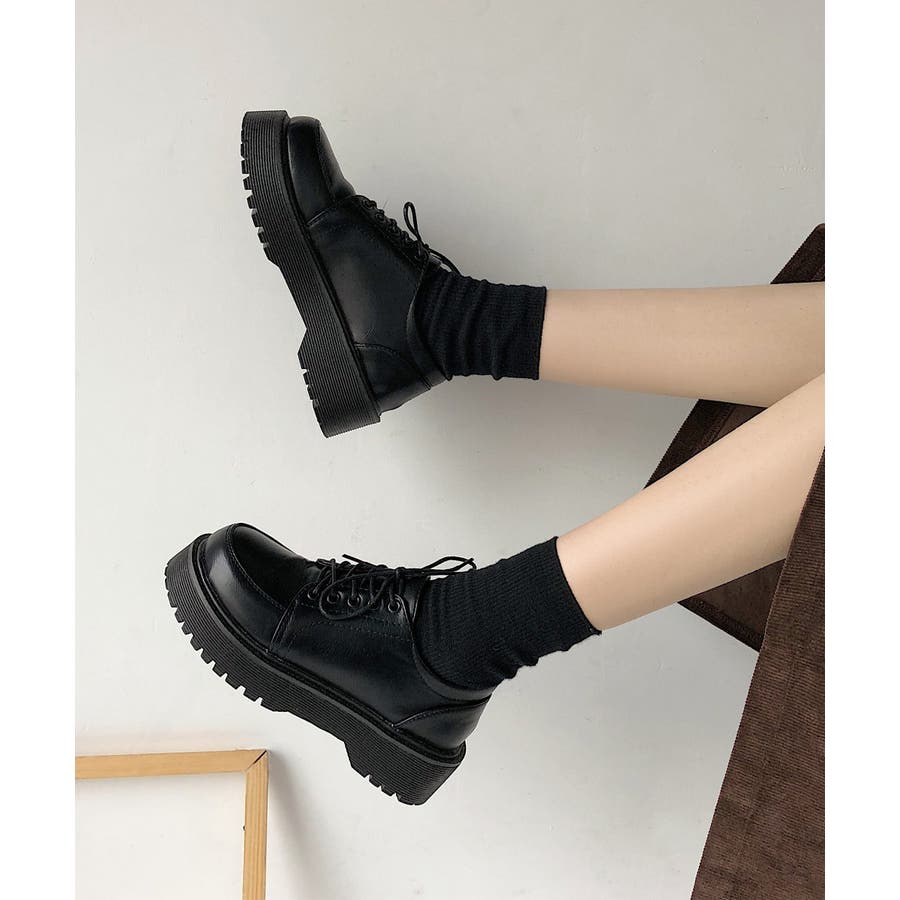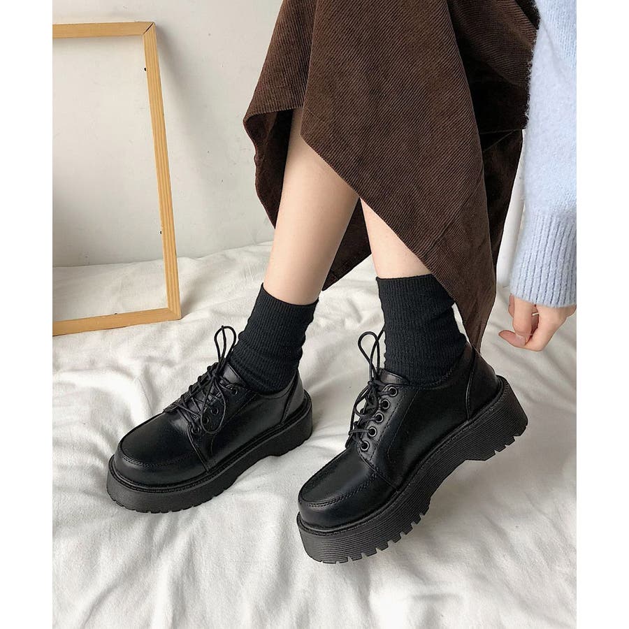 歩きやすいシューズ 韓国ファッション靴 ボリュームソール黒