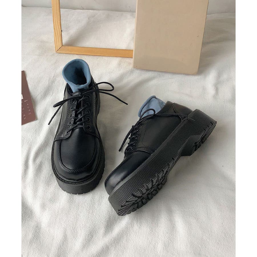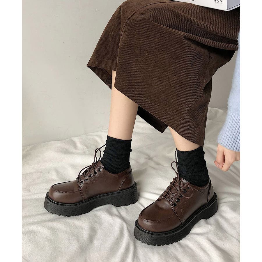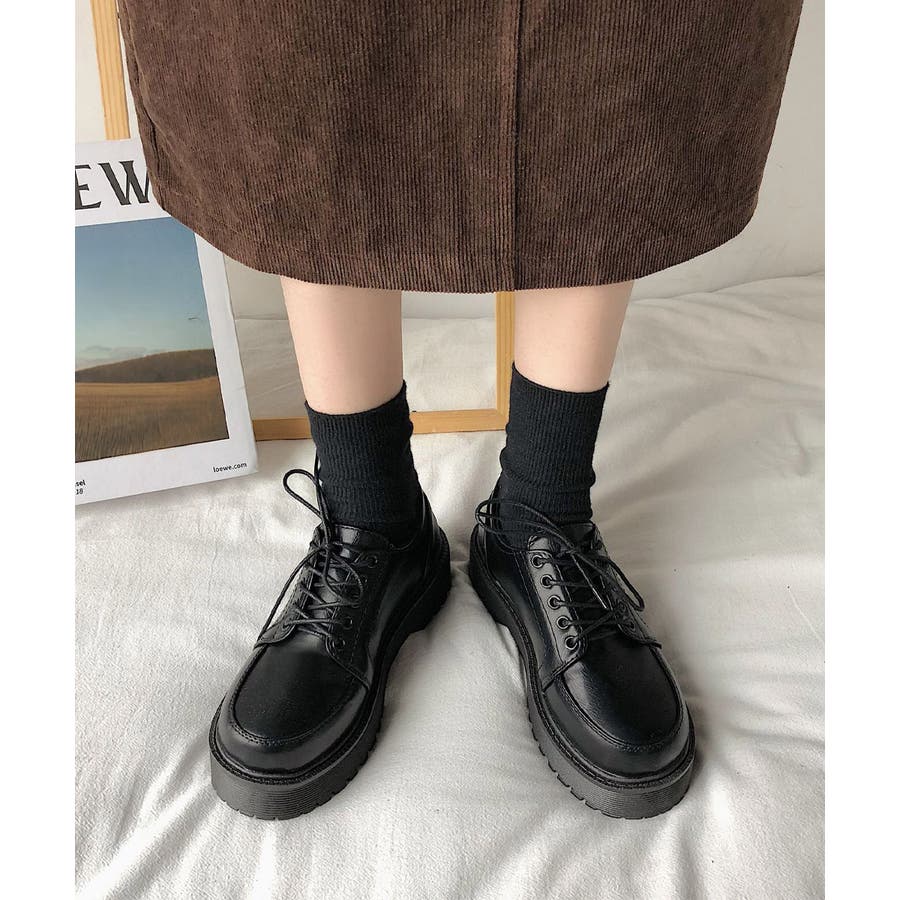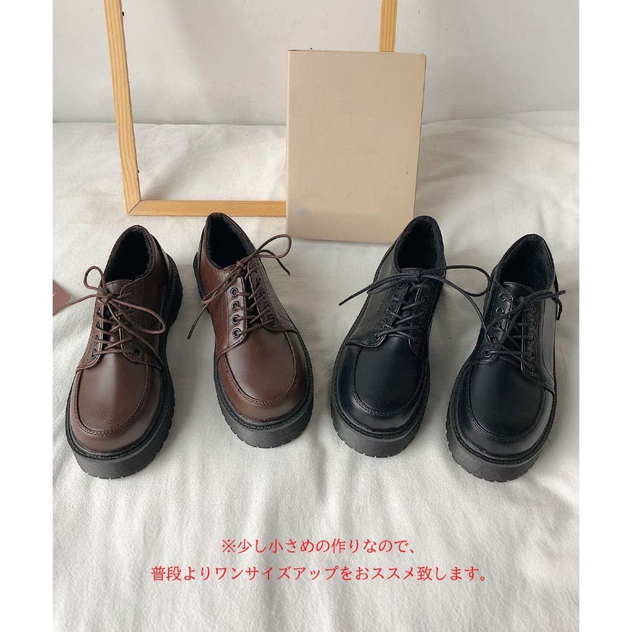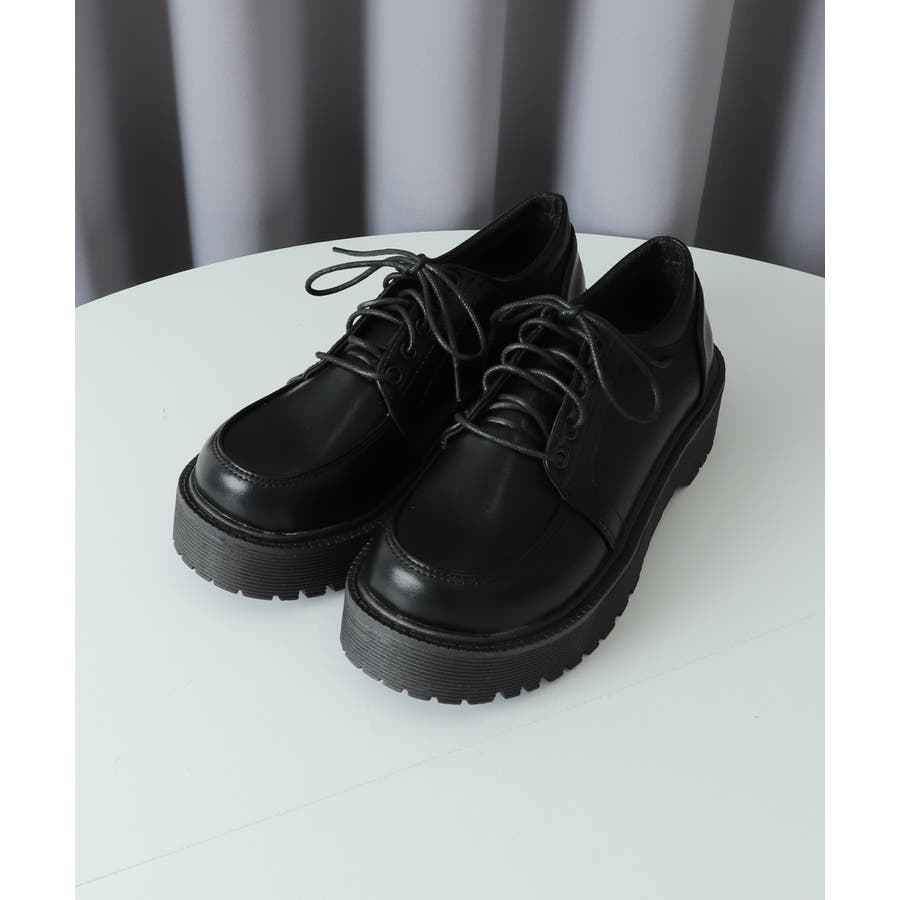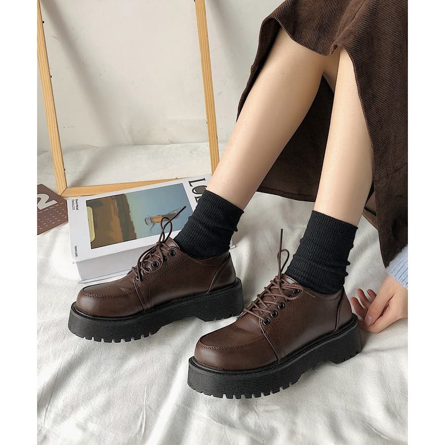 歩きやすいシューズ 韓国ファッション靴 ボリュームソール黒
