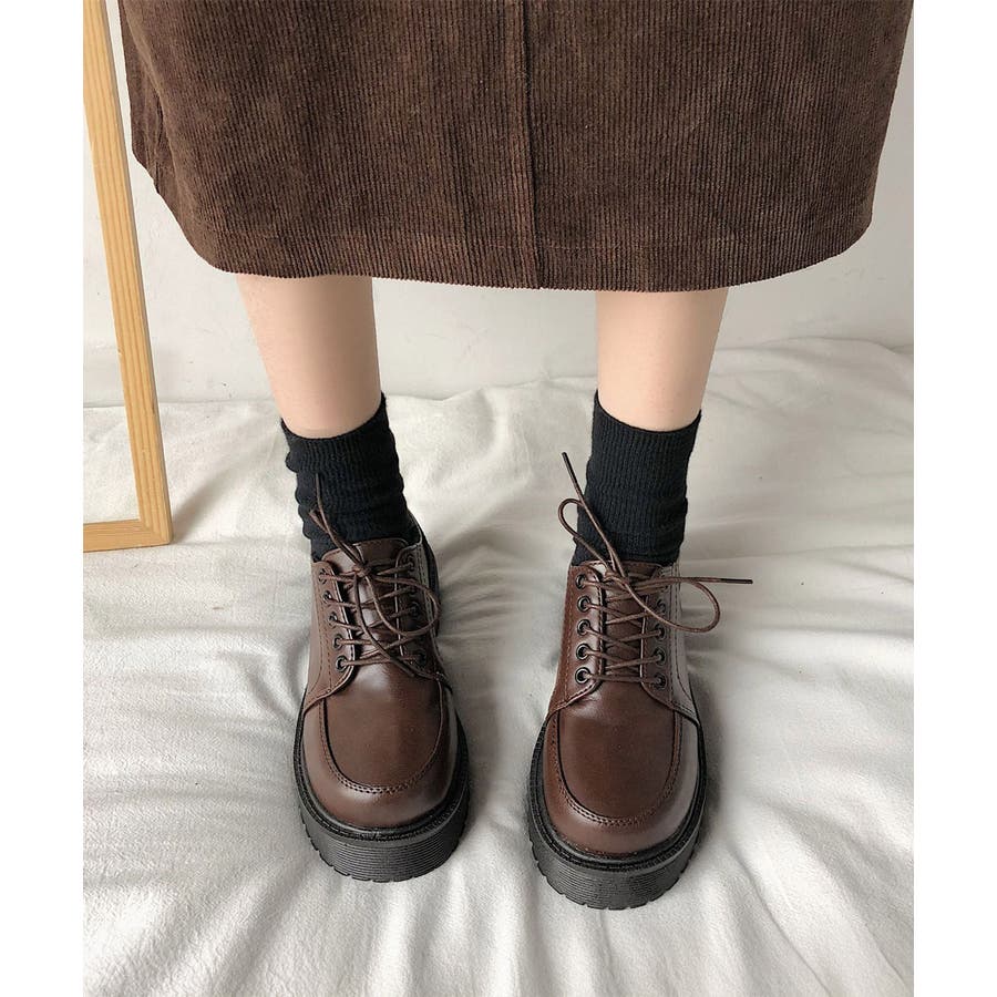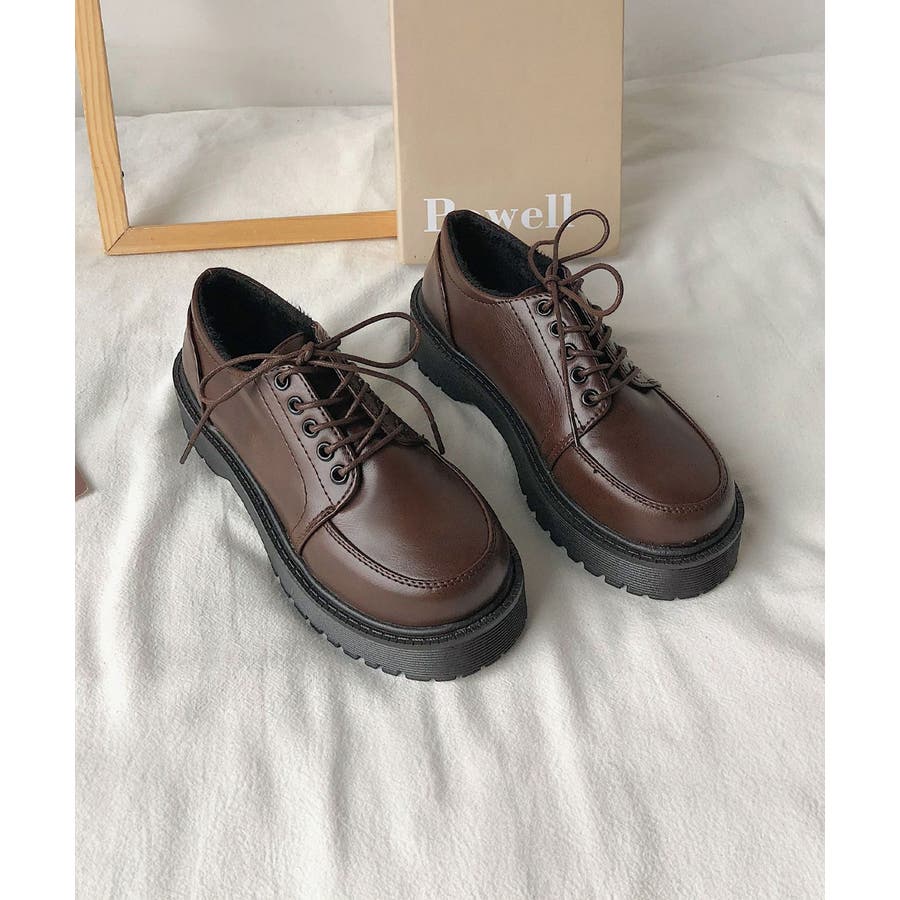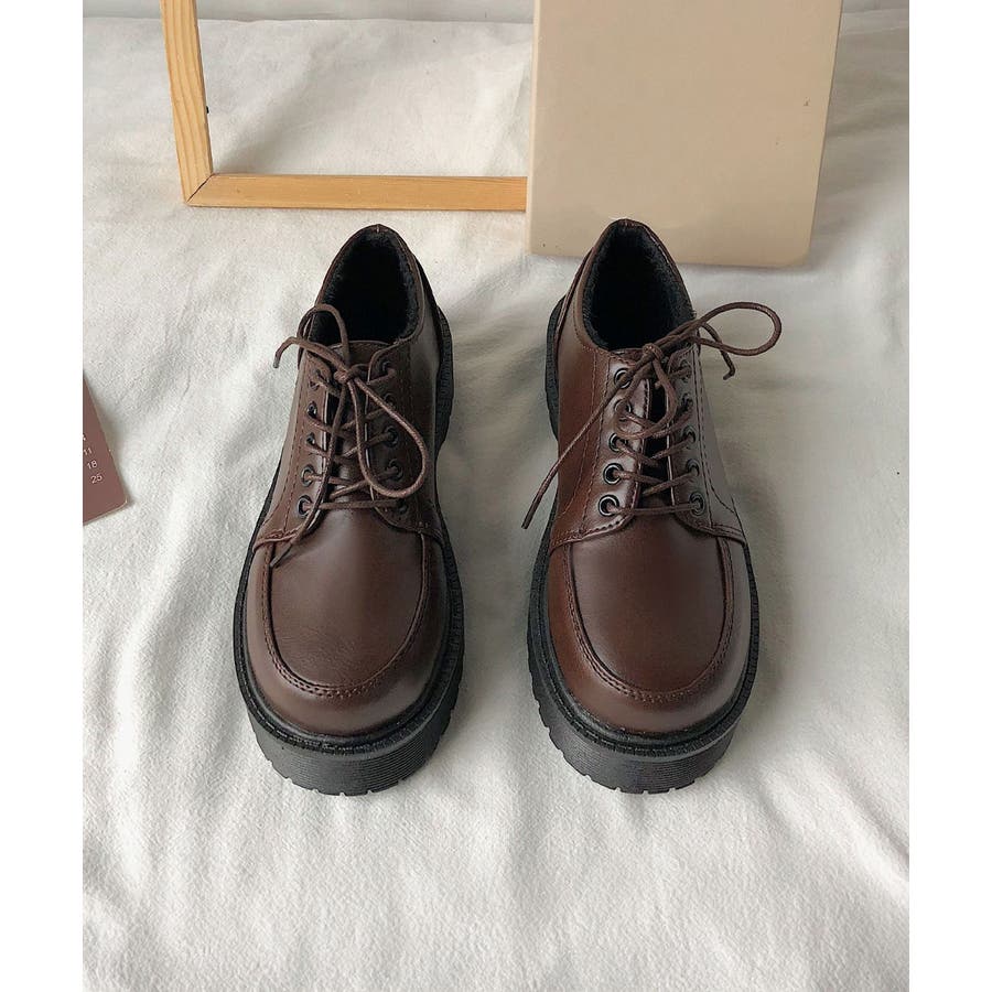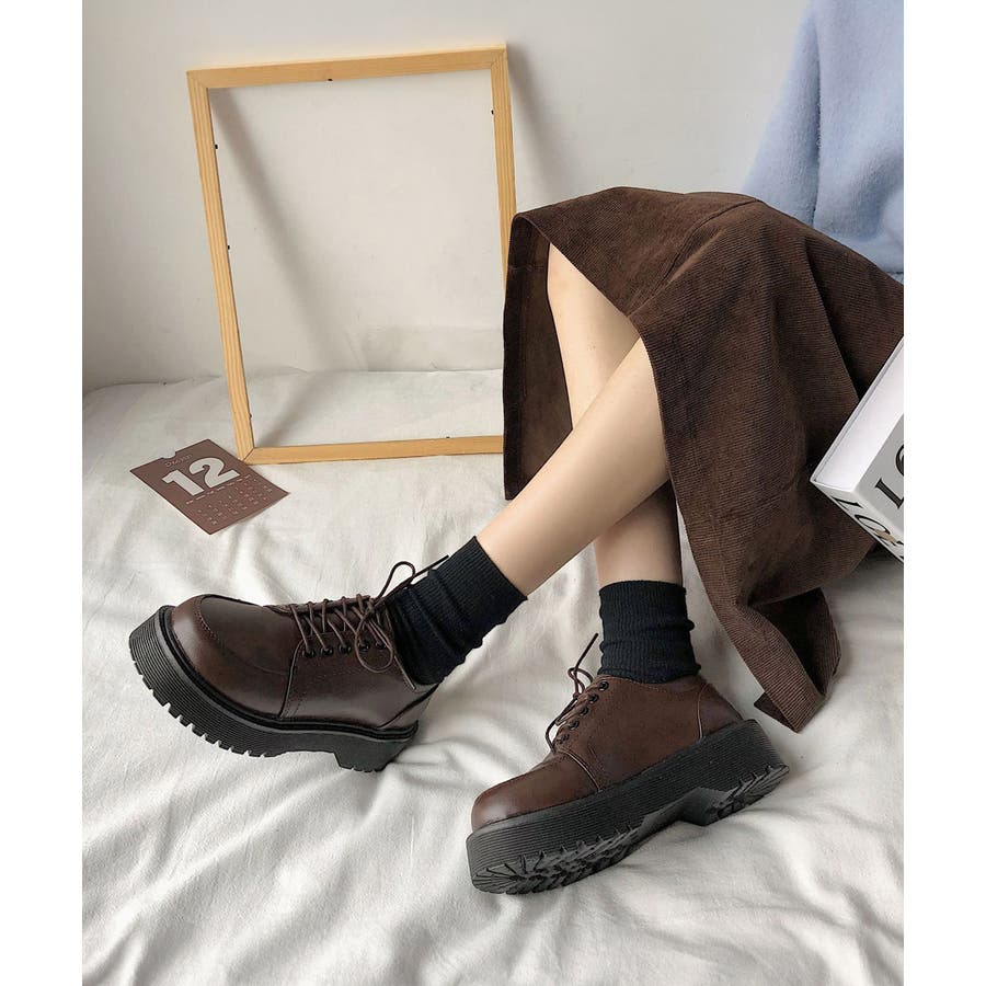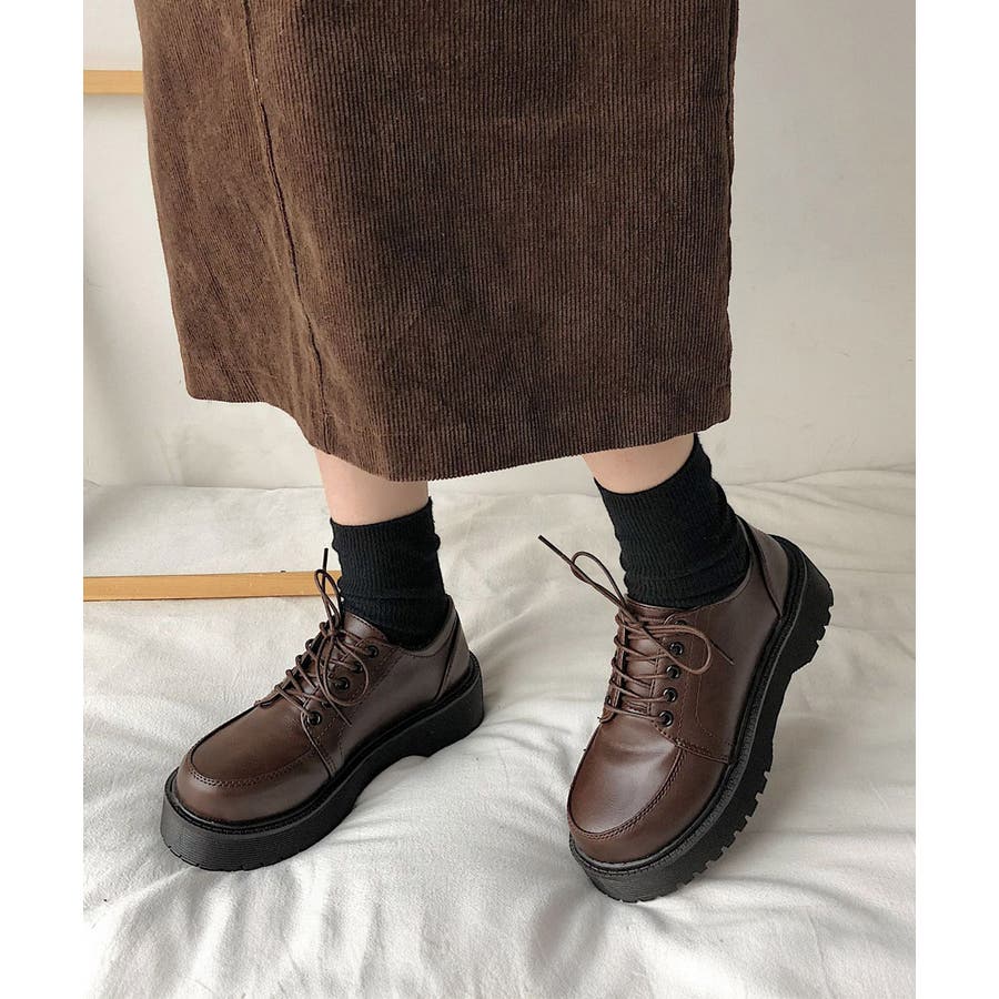 歩きやすいシューズ 韓国ファッション靴 ボリュームソール黒