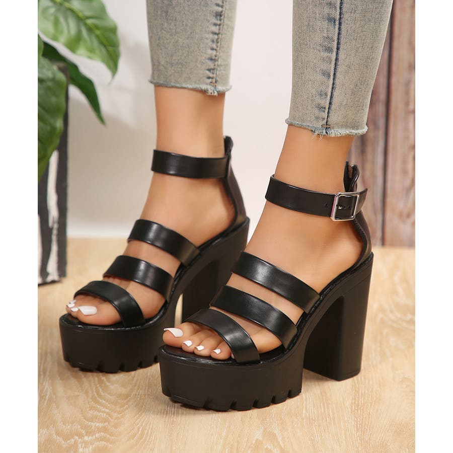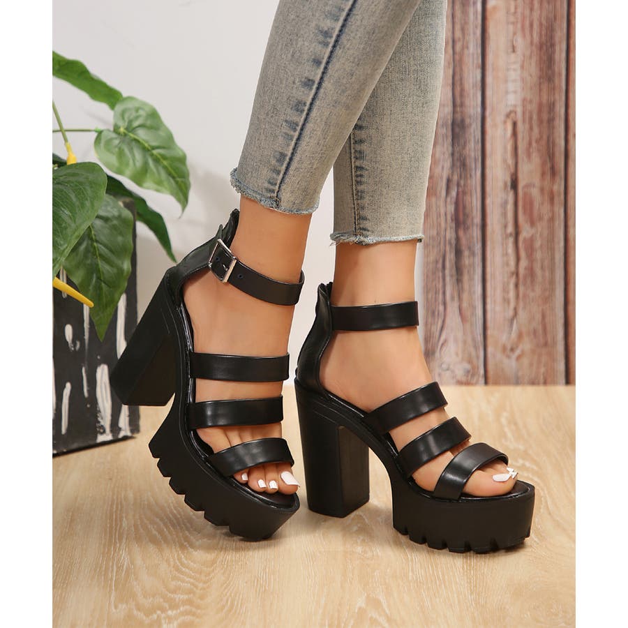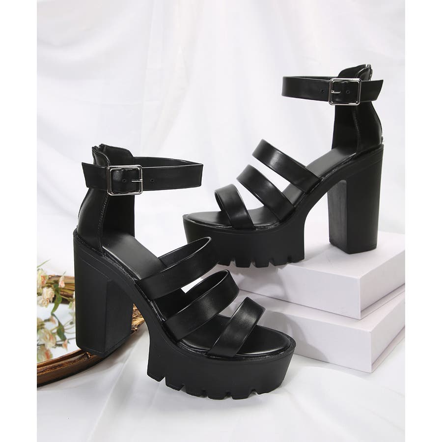 太ヒールで安定感あり、後ろファスナー付きで脱ぎ履きも楽ちんです。