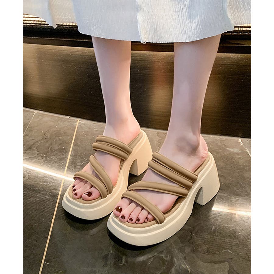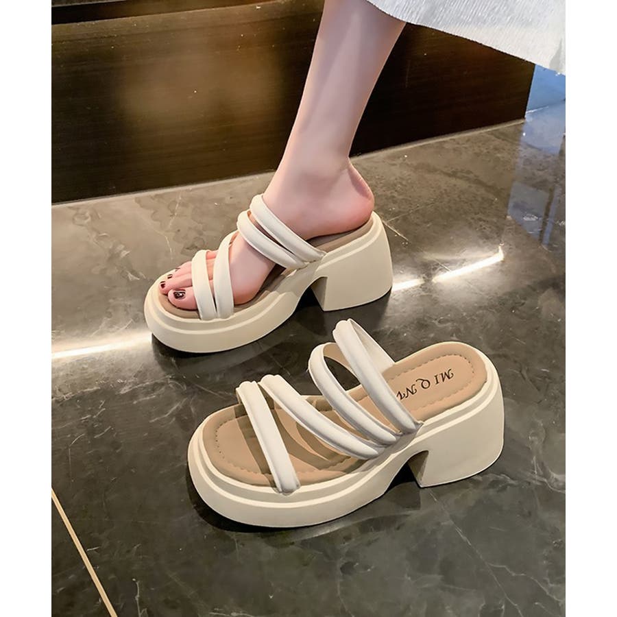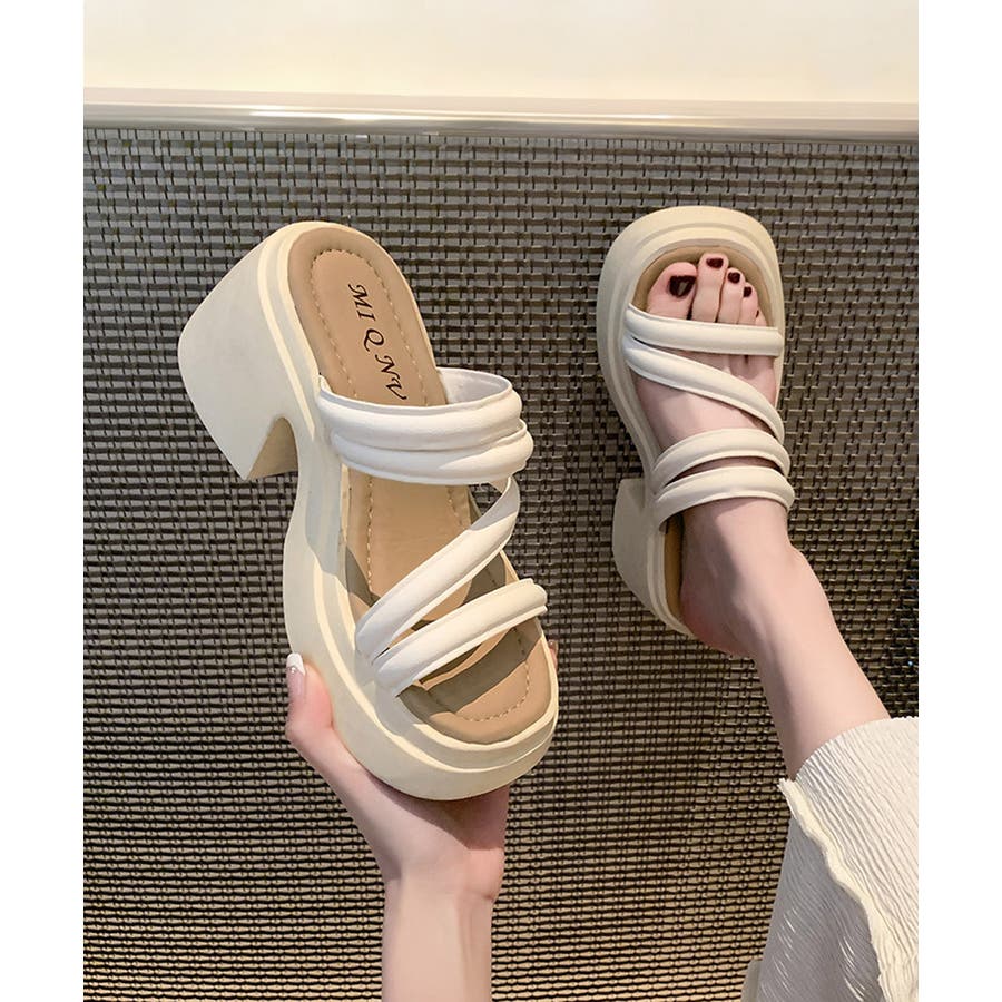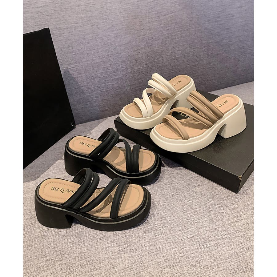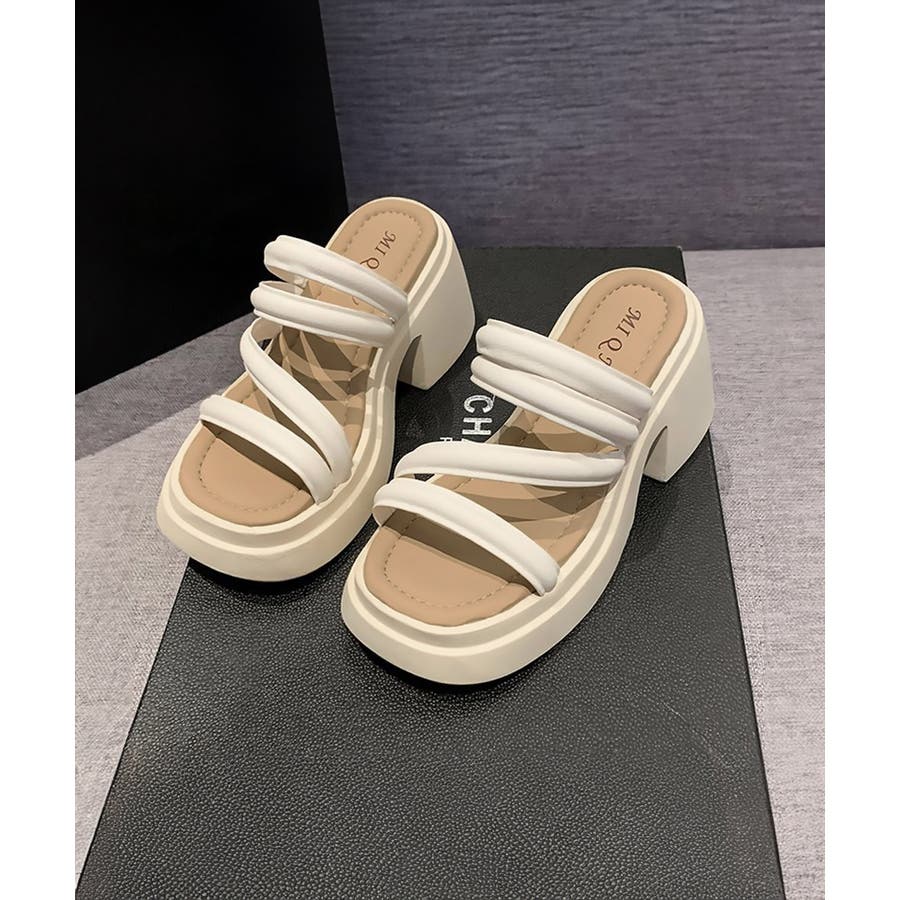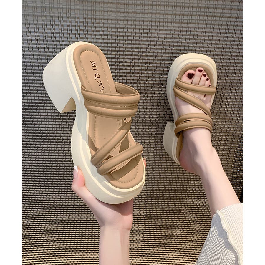 ミュールサンダル 厚底 太ヒール 美脚夏