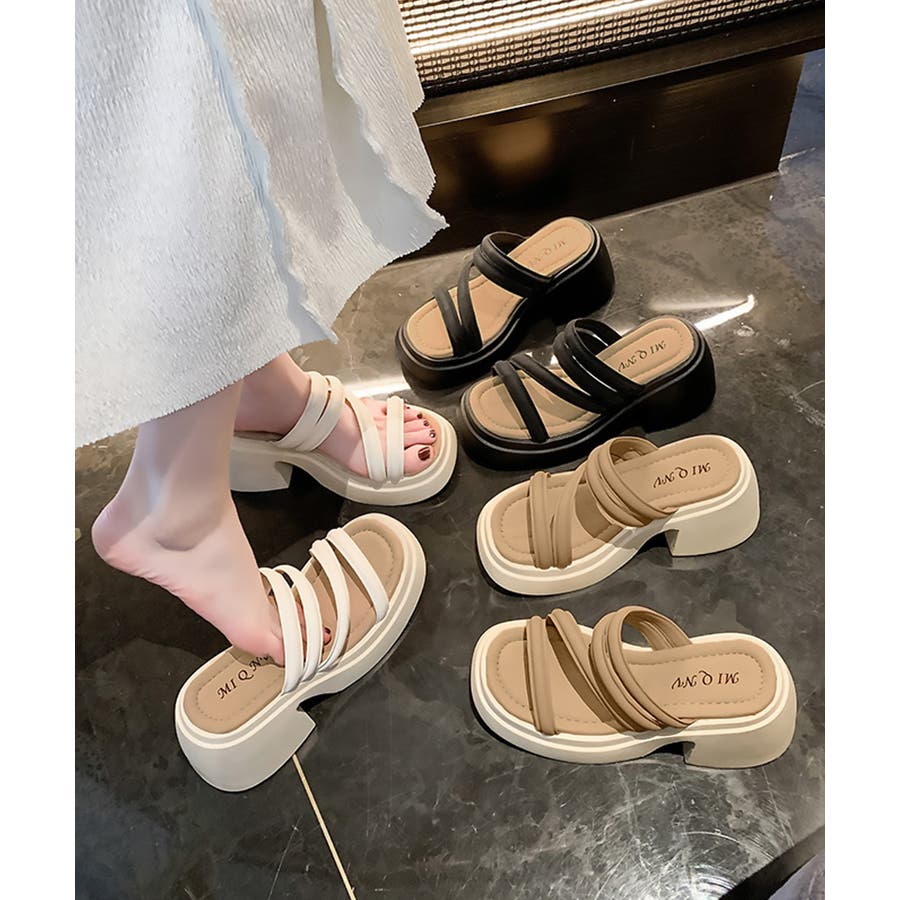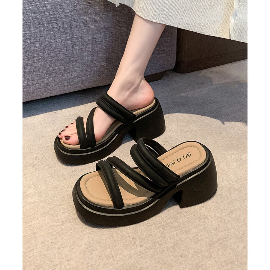 ミュールデザインでさっと履きやすい厚底サンダル。