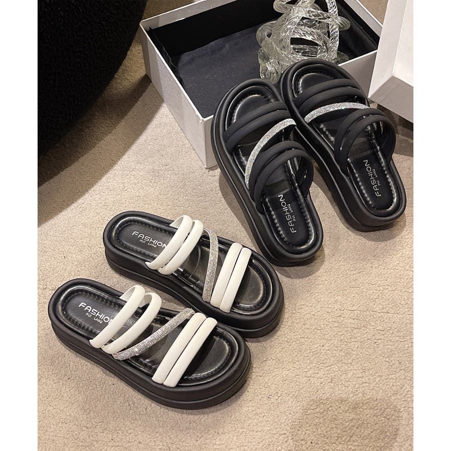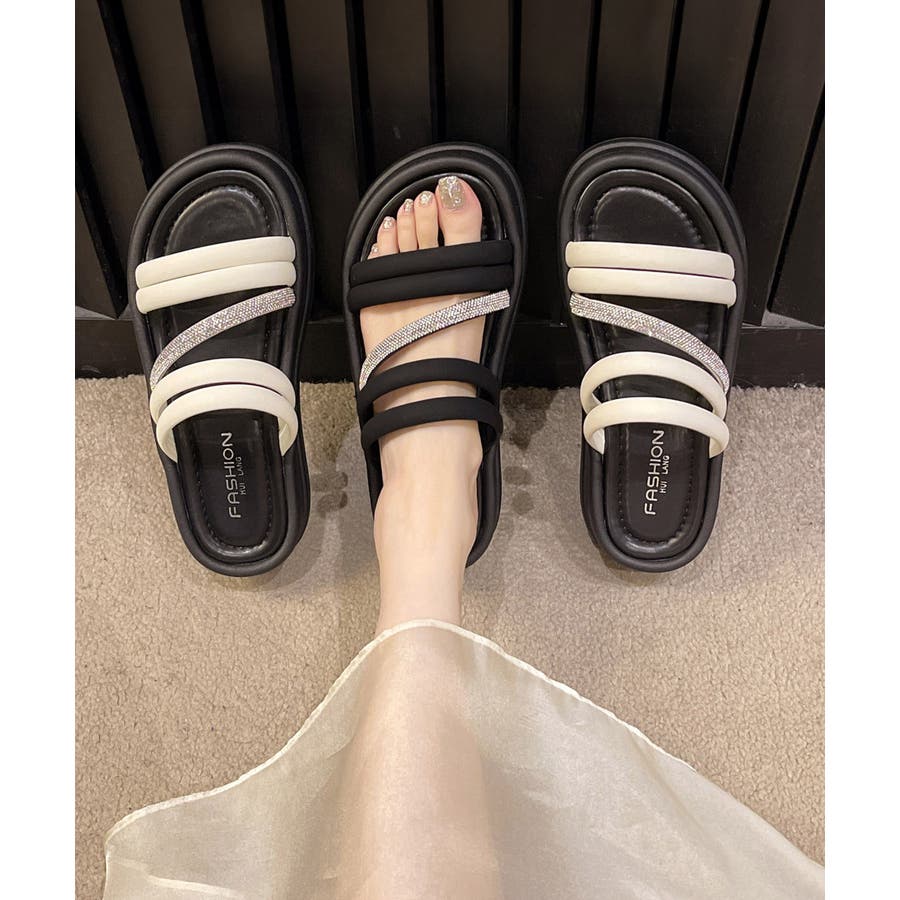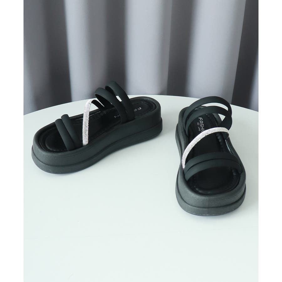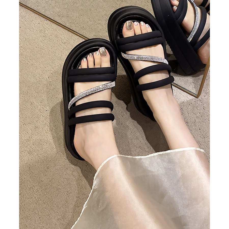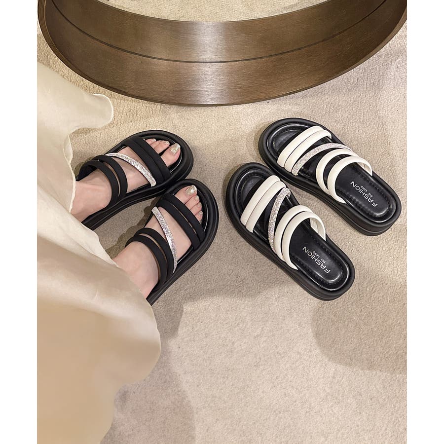 歩くたびキラキラ光る!豪華ラインストーン付きで多重ストラップデザインが特徴的なサンダルの登場。