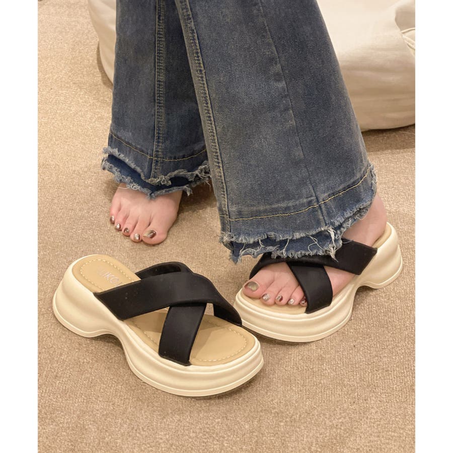 太くて安定感のあるソールがコーデのアクセントにぴったりの厚底サンダル。