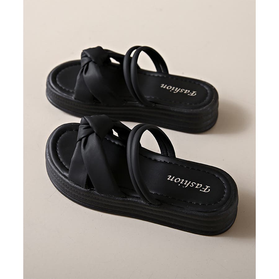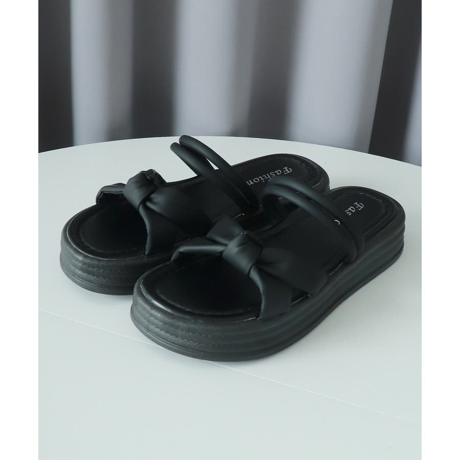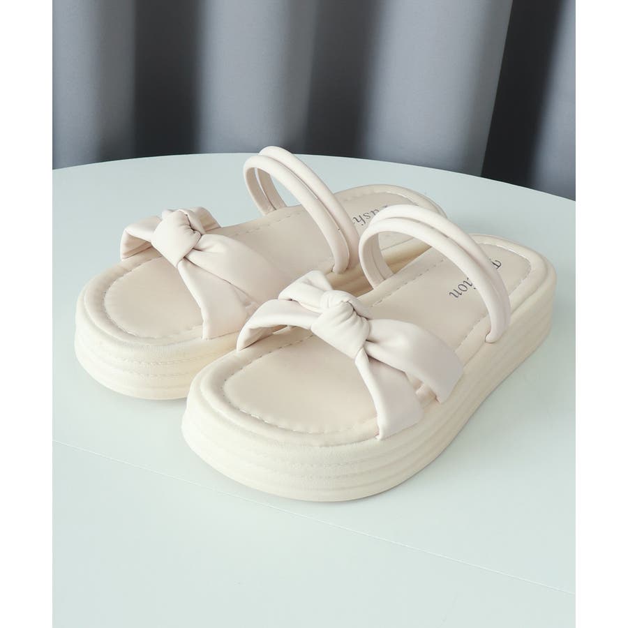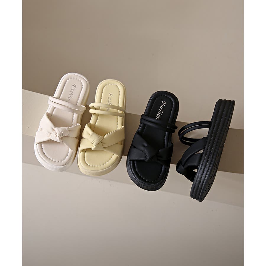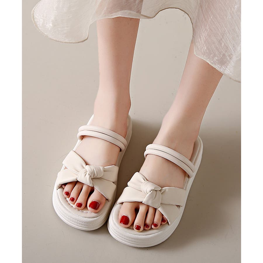 厚底サンダル レディース リボン