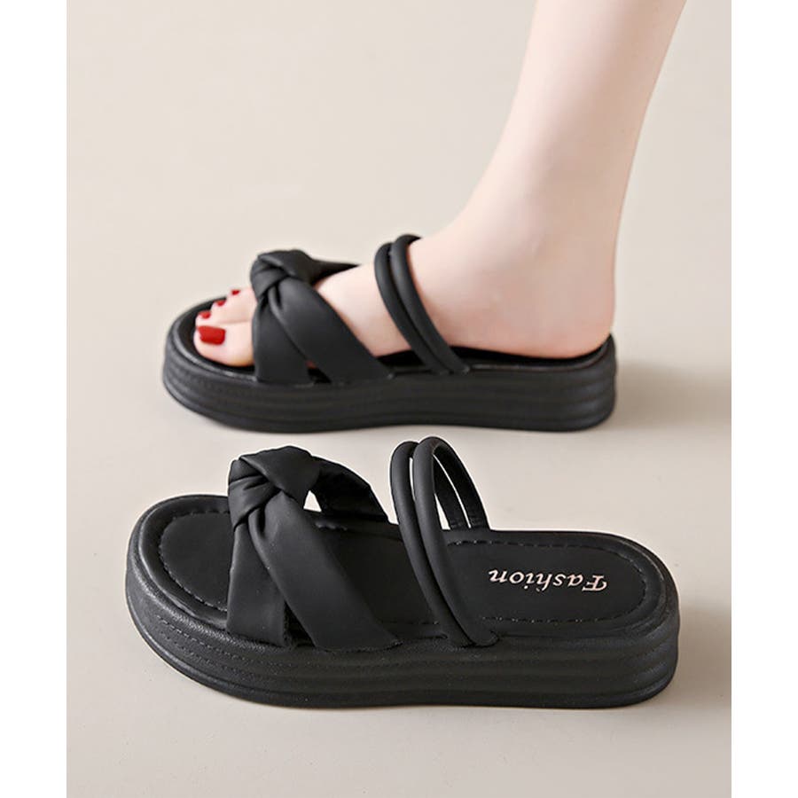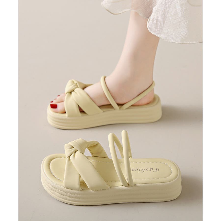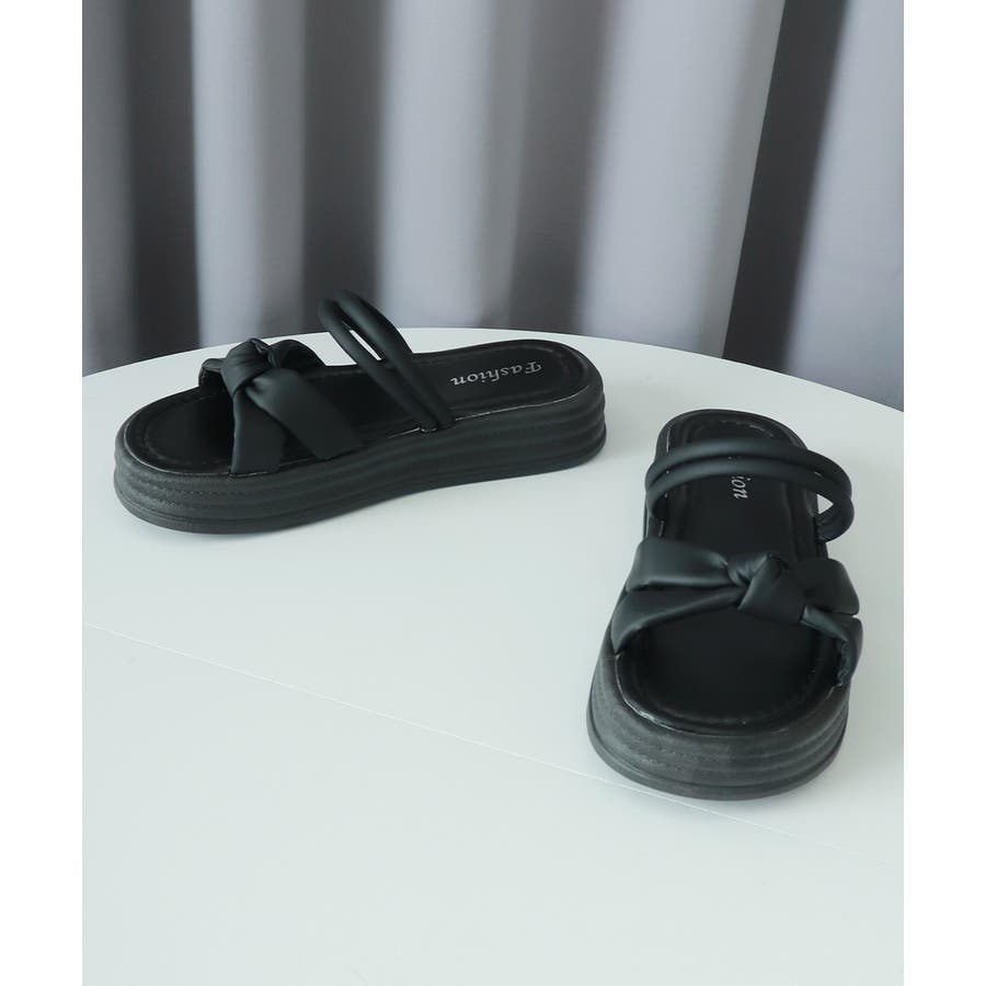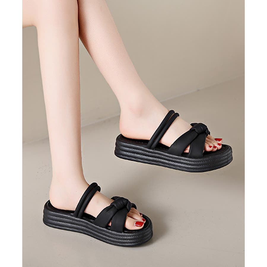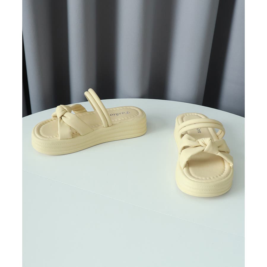 厚底サンダル レディース リボン