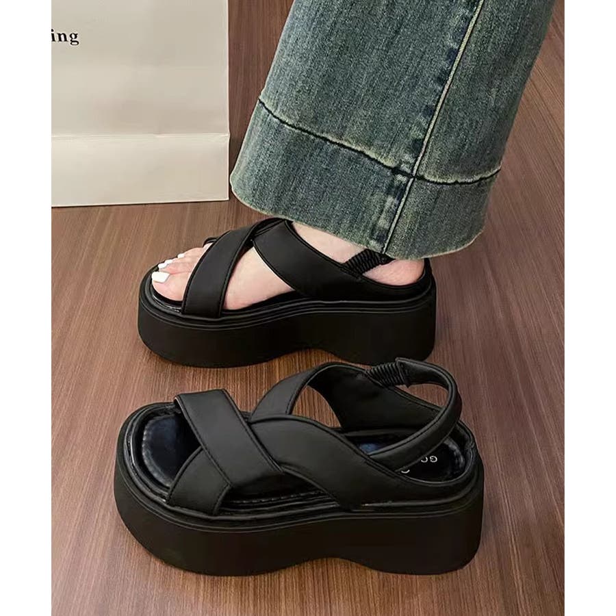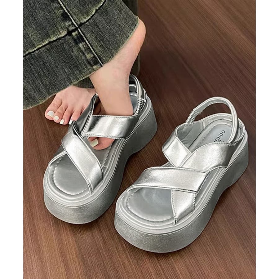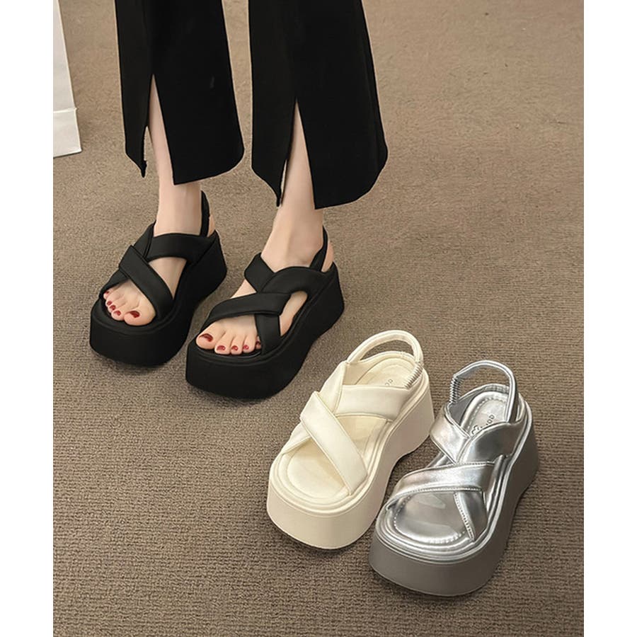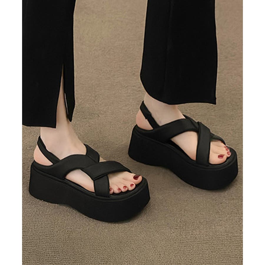 厚底サンダル クロスベルト レディース夏