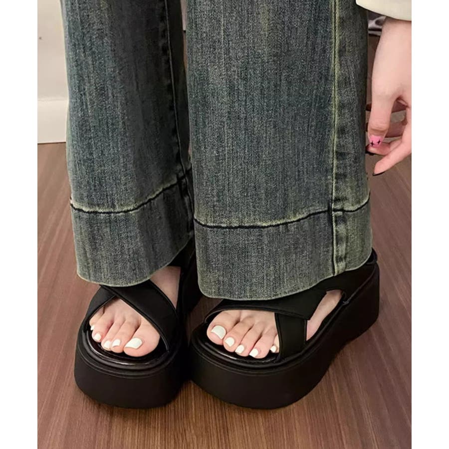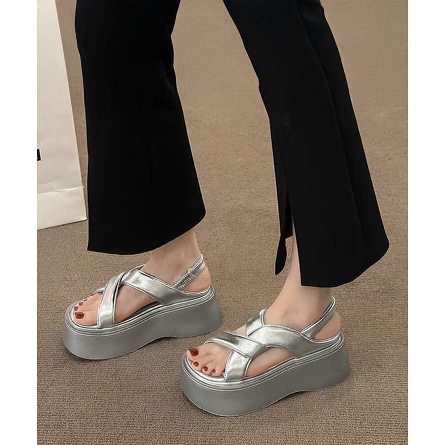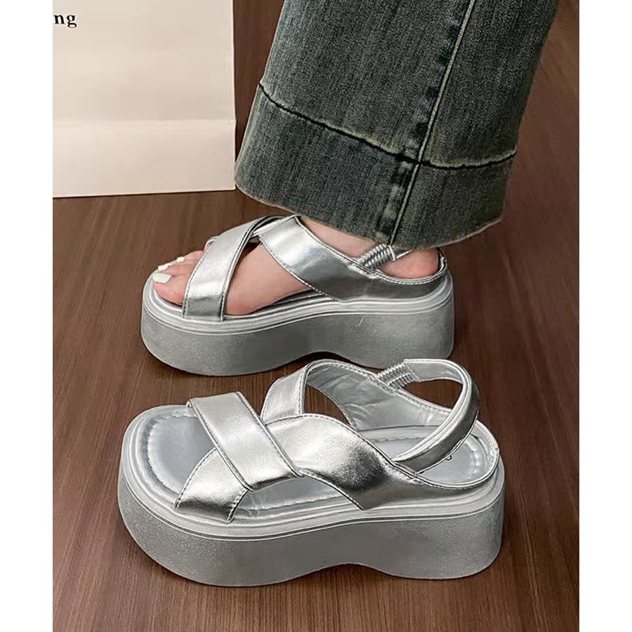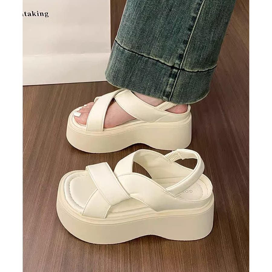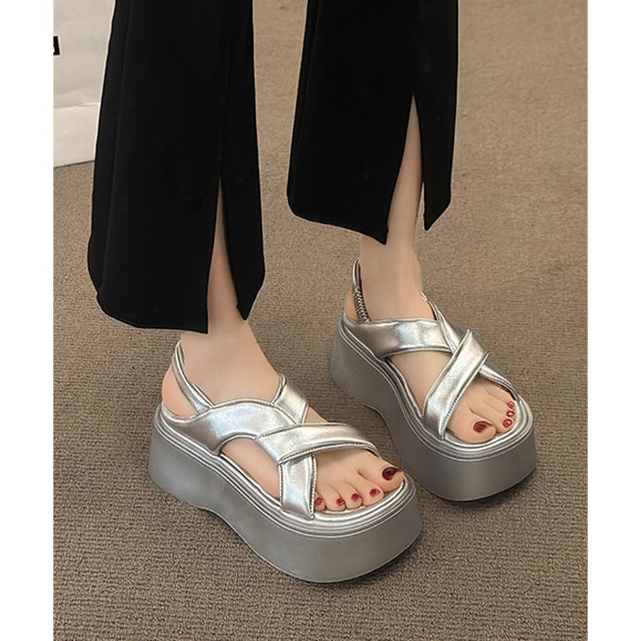 厚底サンダル クロスベルト レディース夏
