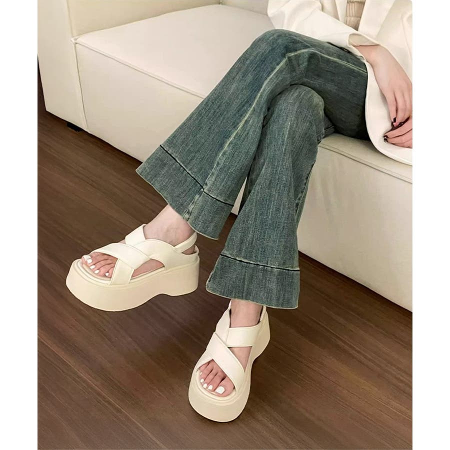シンプルでリラックスしたデザインが特徴の厚底サンダル