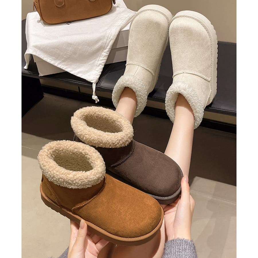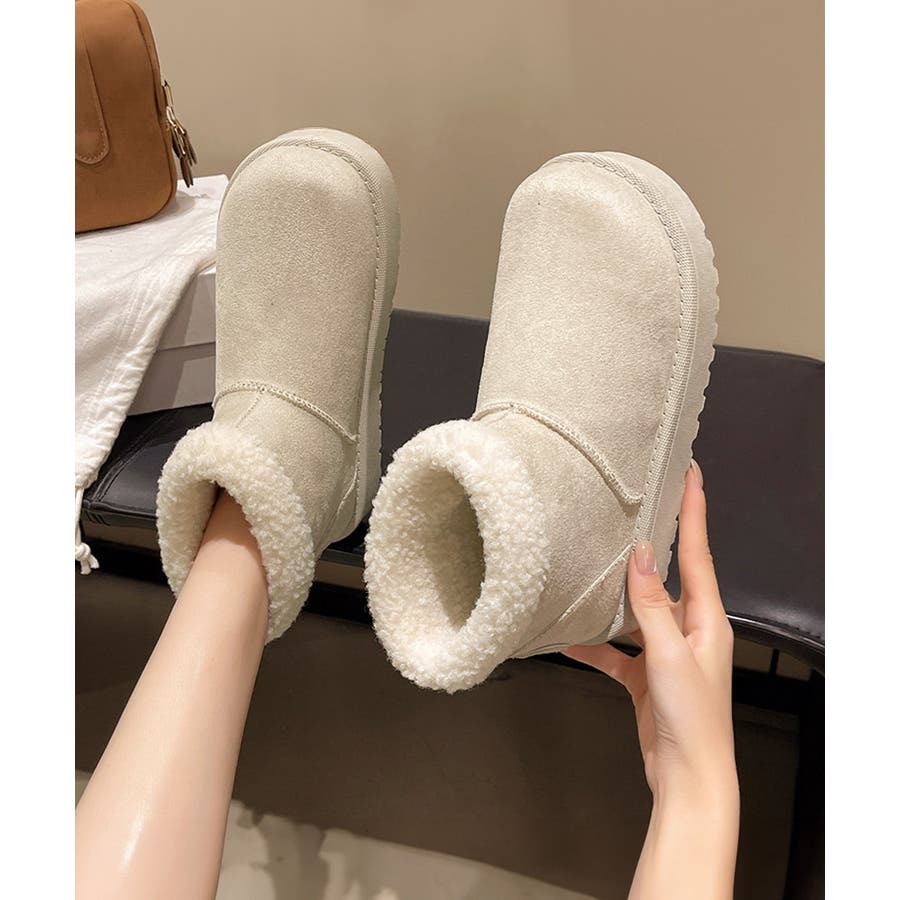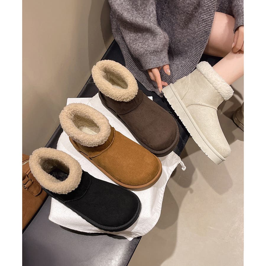 秋冬の定番靴、シンプルなデザインでどんな服にも合わせやすい無地のムートンブーツ。