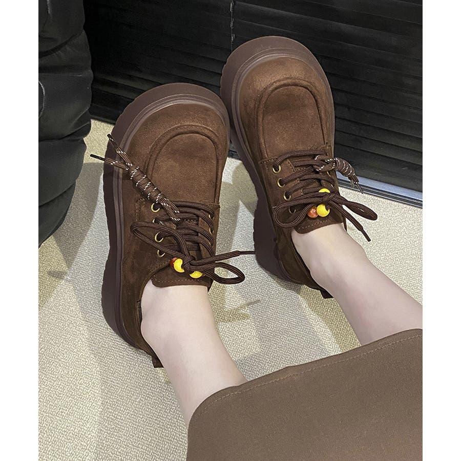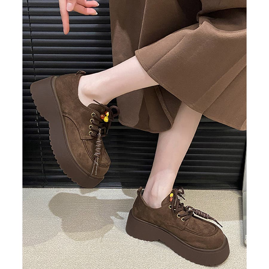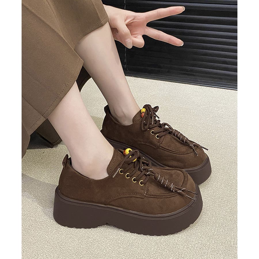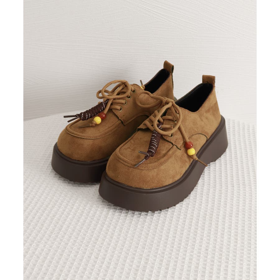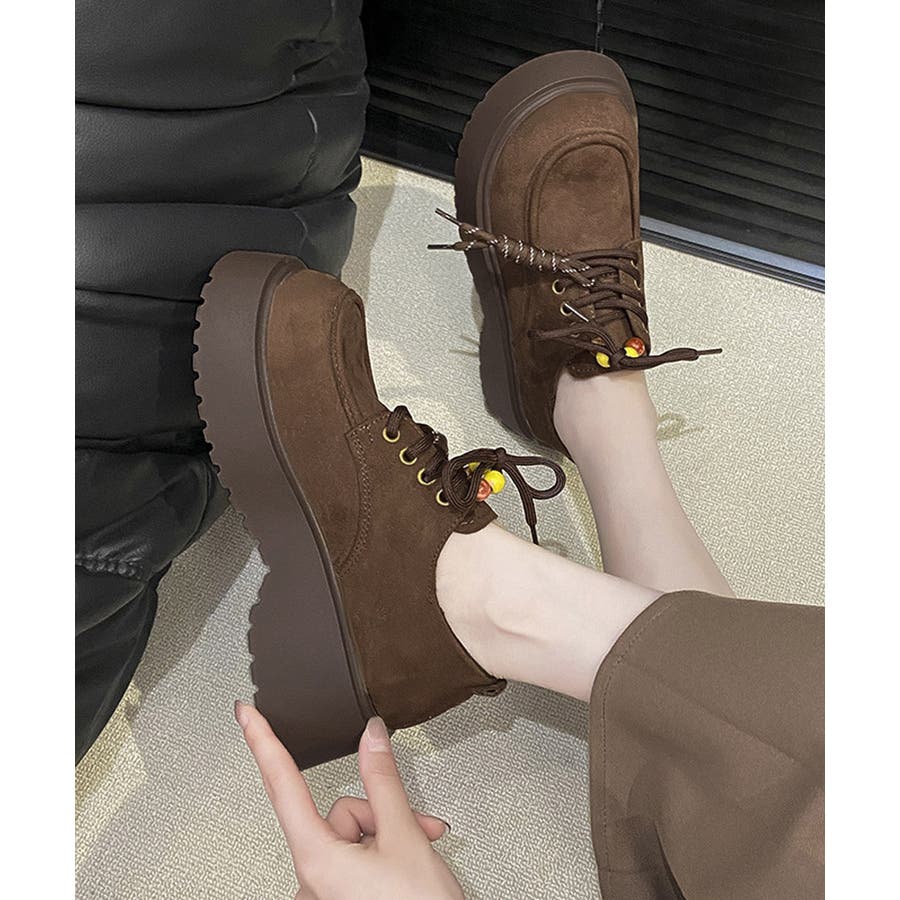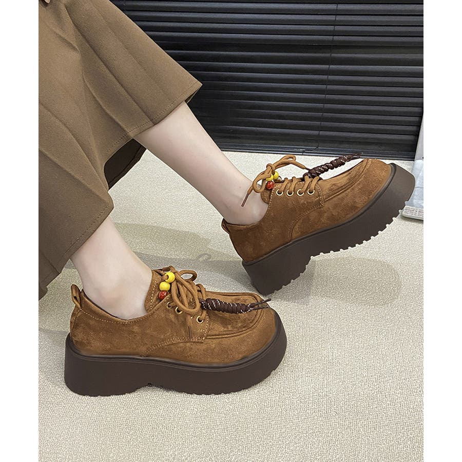 編み上げローファー 疲れにくい 厚底靴 太ヒールシューズ