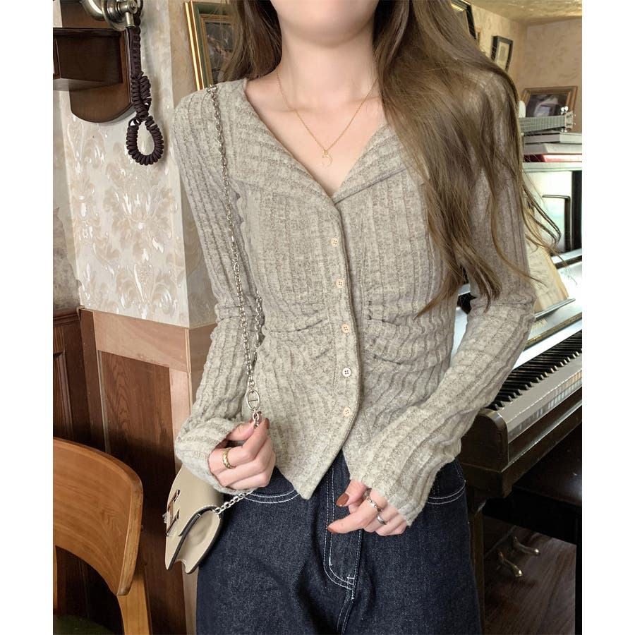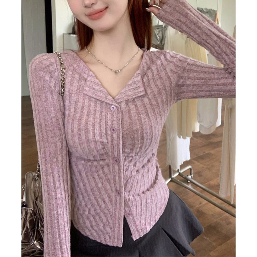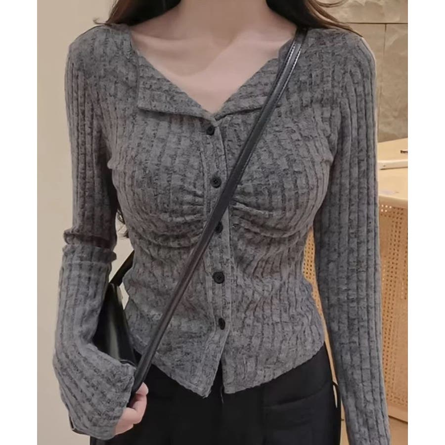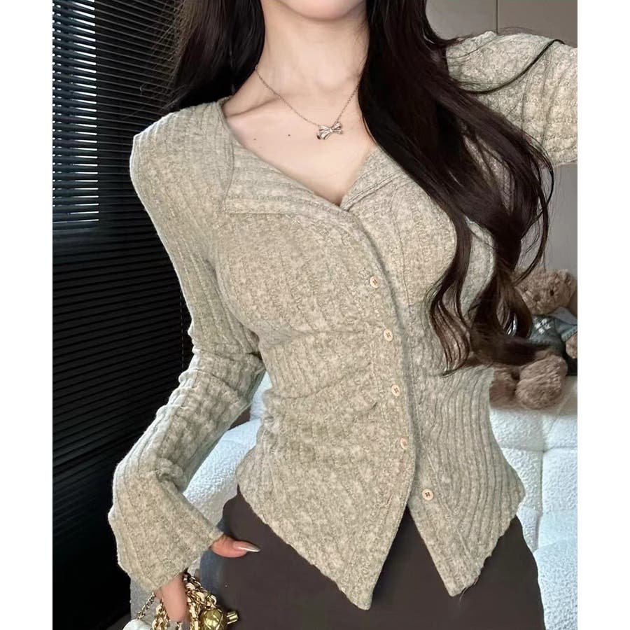 ニットトップス 前開き 編み フィット感 無地 セクシー 大人 可愛い おしゃれ 着やせ オルチャン