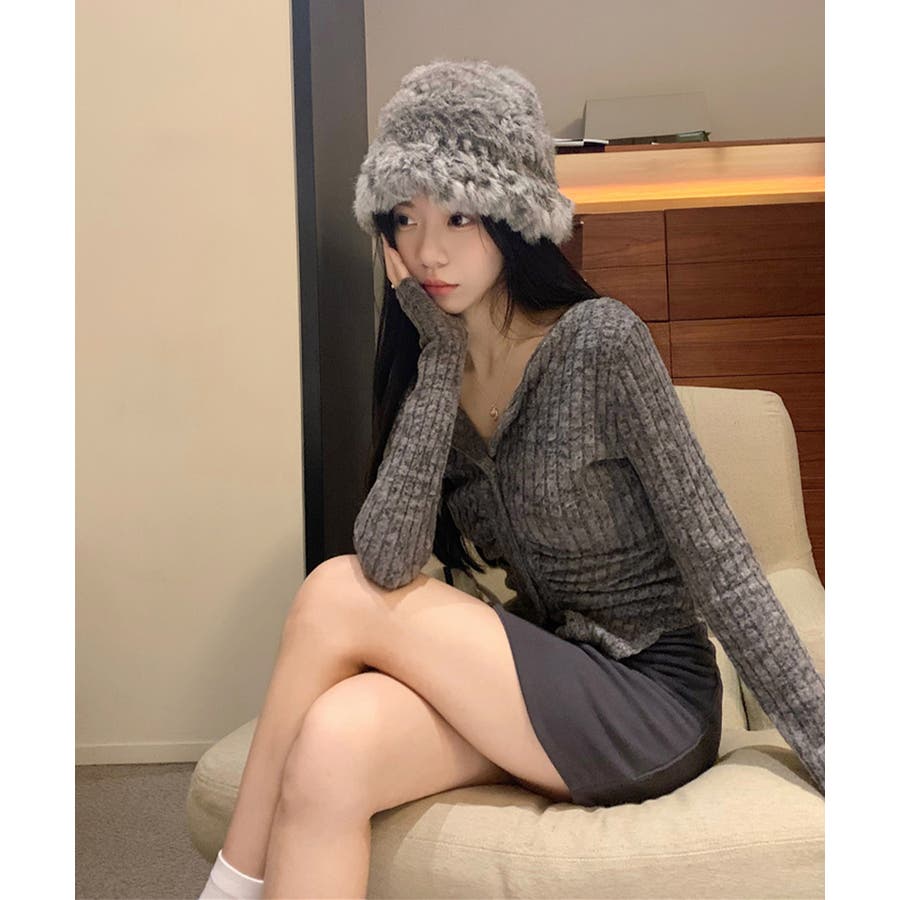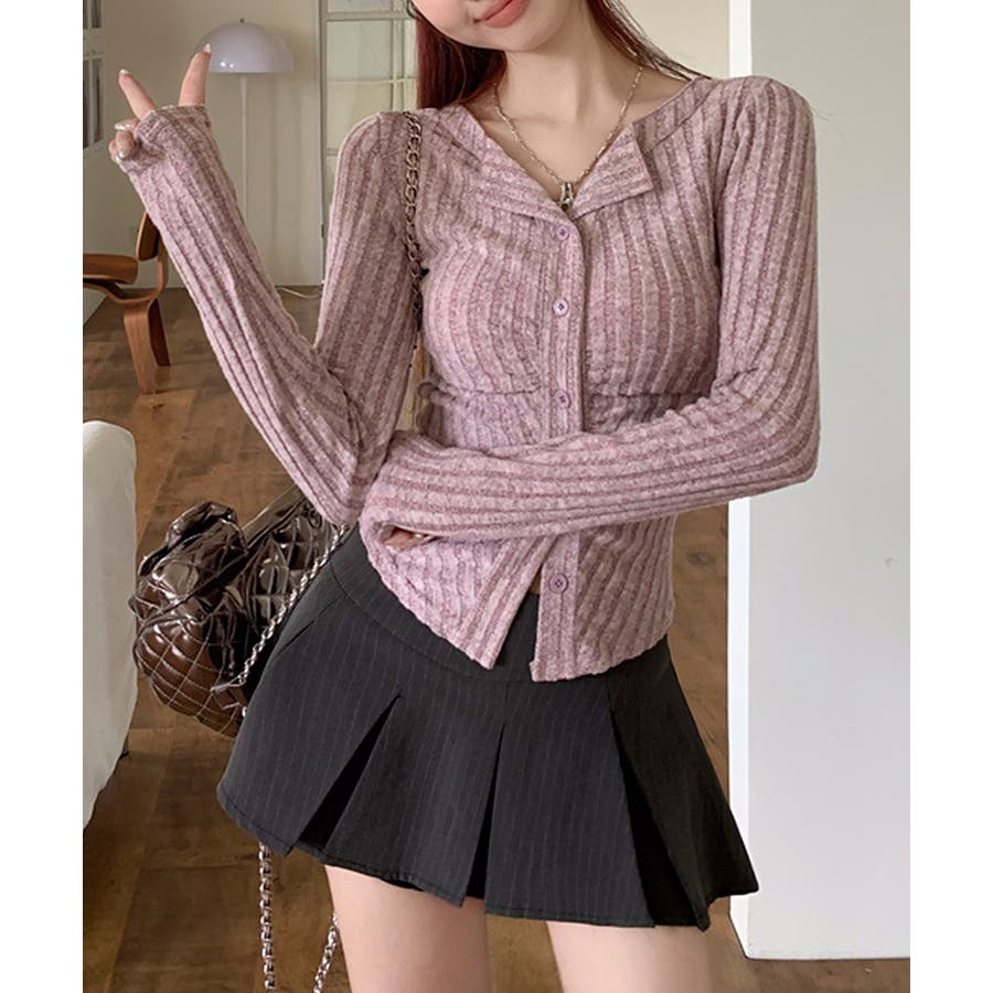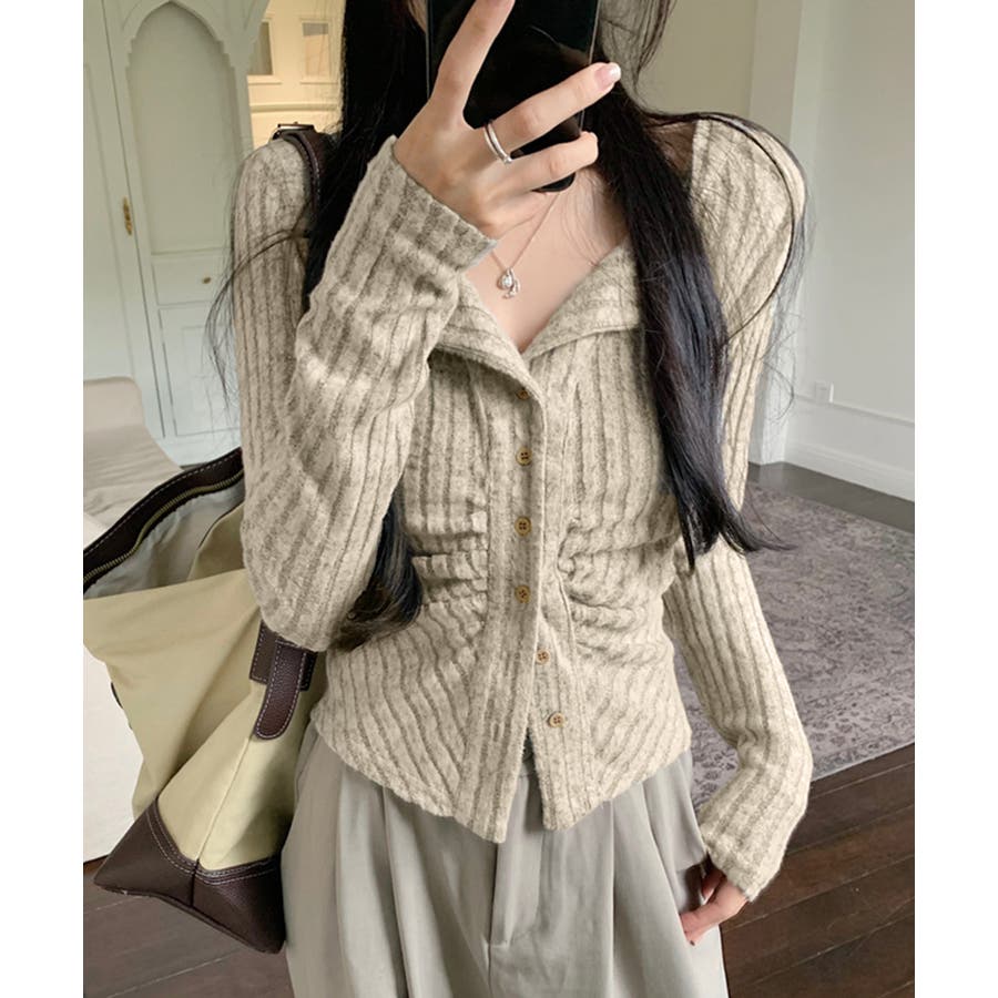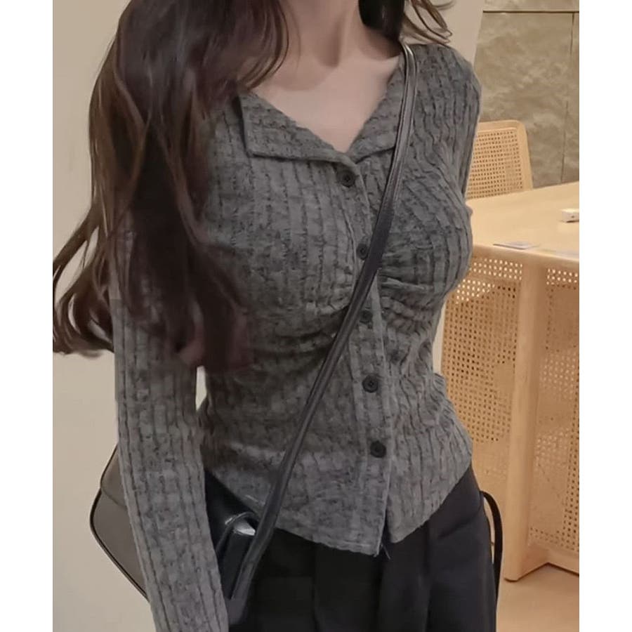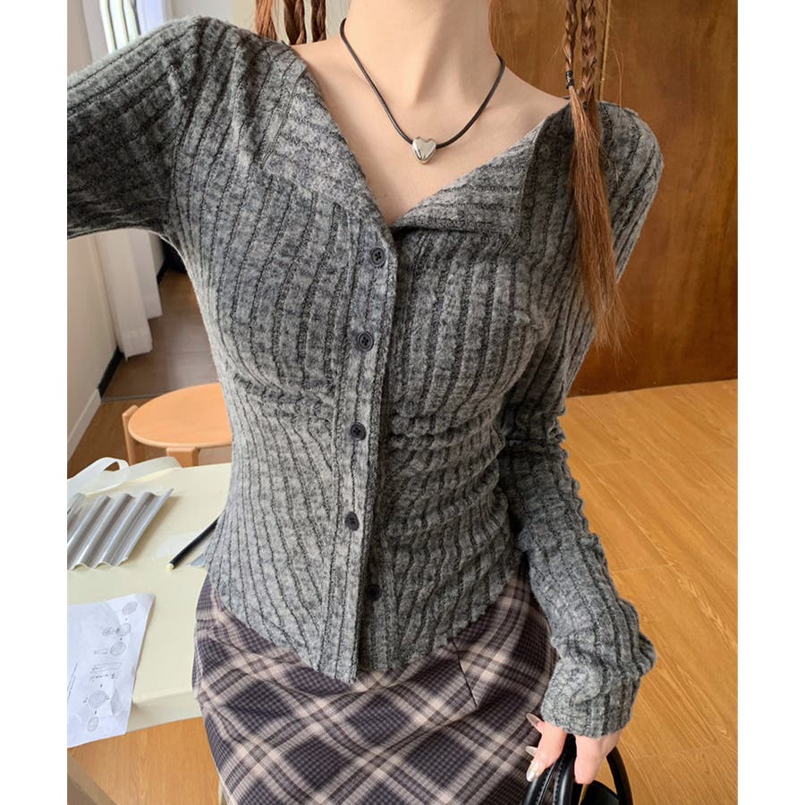ニットトップス 前開き 編み フィット感 無地 セクシー 大人 可愛い おしゃれ 着やせ オルチャン