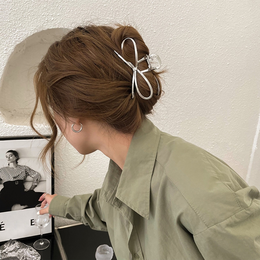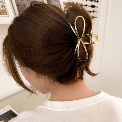 リボン型デザインの韓国風ヘアクリップ