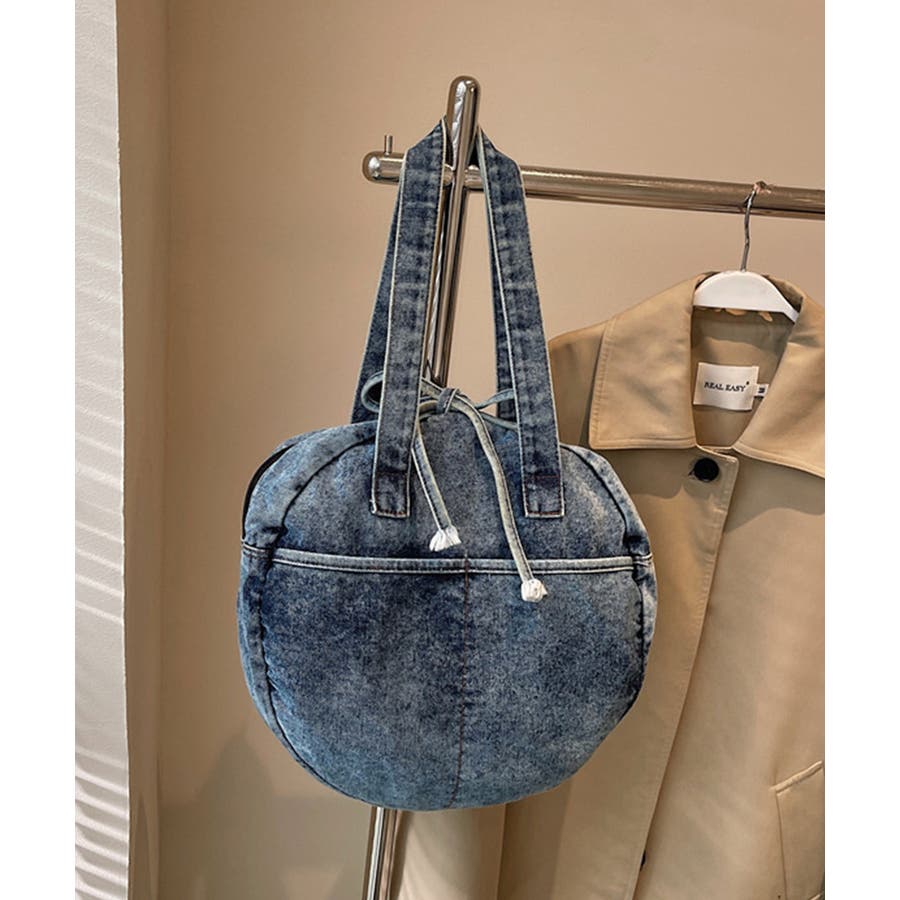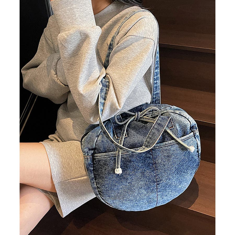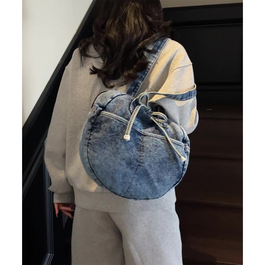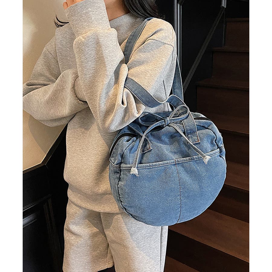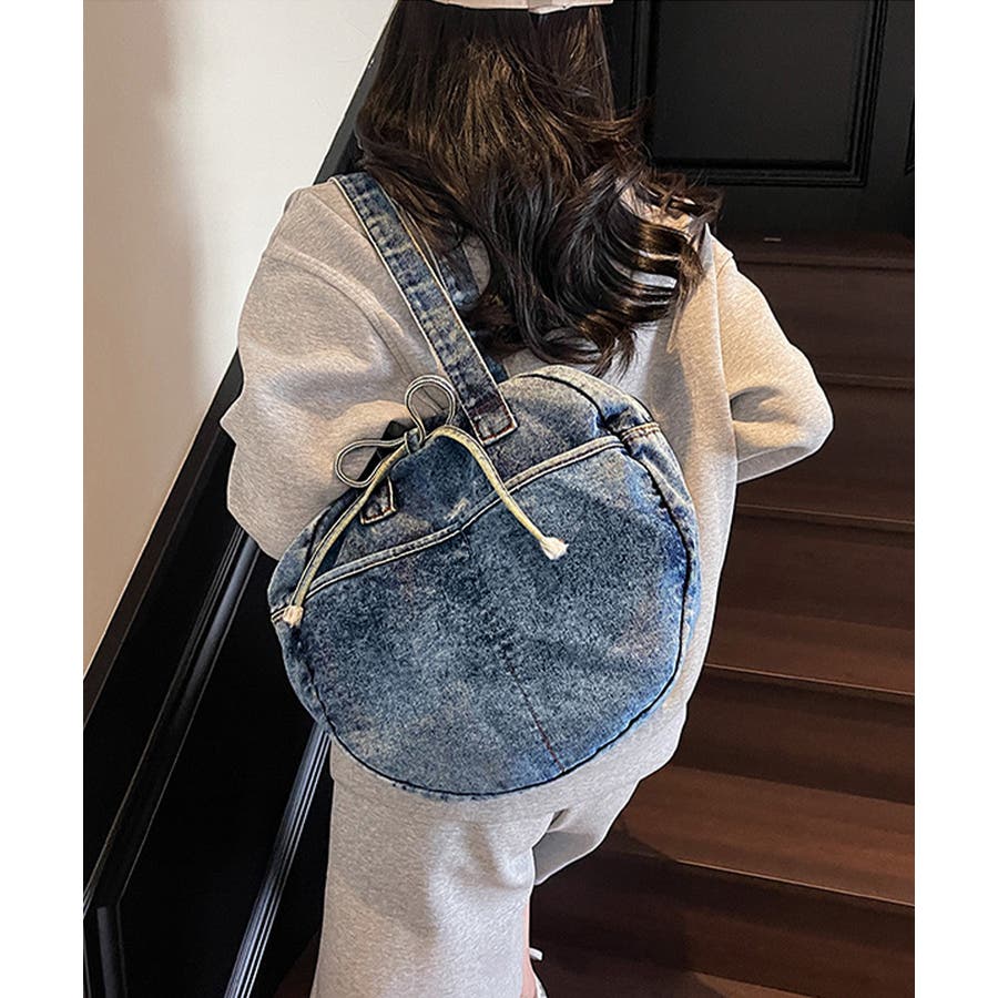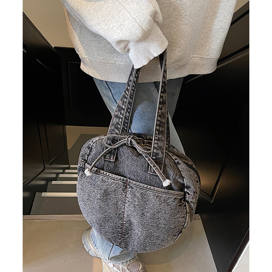 カジュアルな雰囲気が可愛いデニム素材のラウンドバッグです。