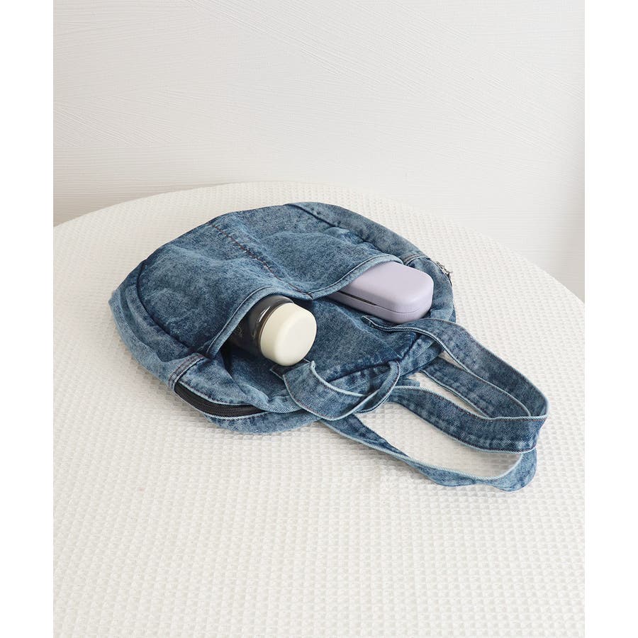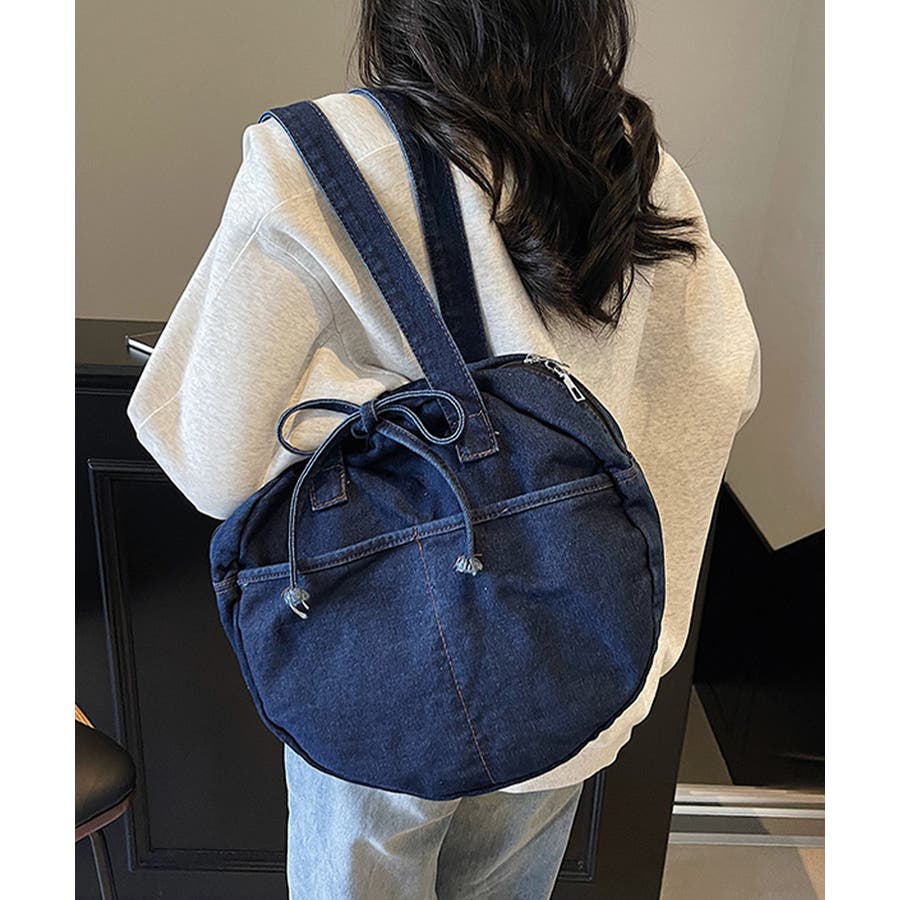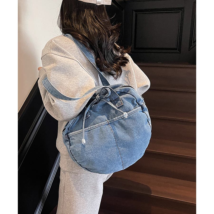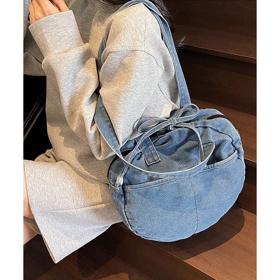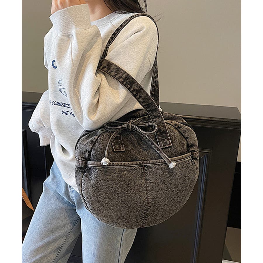 カジュアルな雰囲気が可愛いデニム素材のラウンドバッグです。