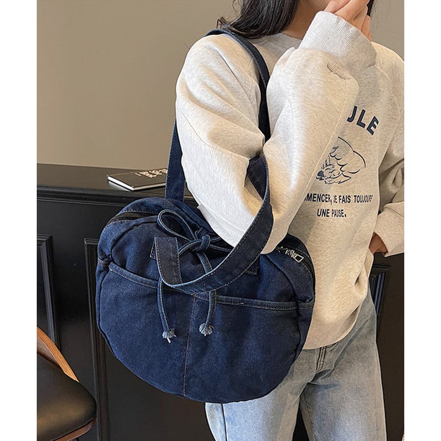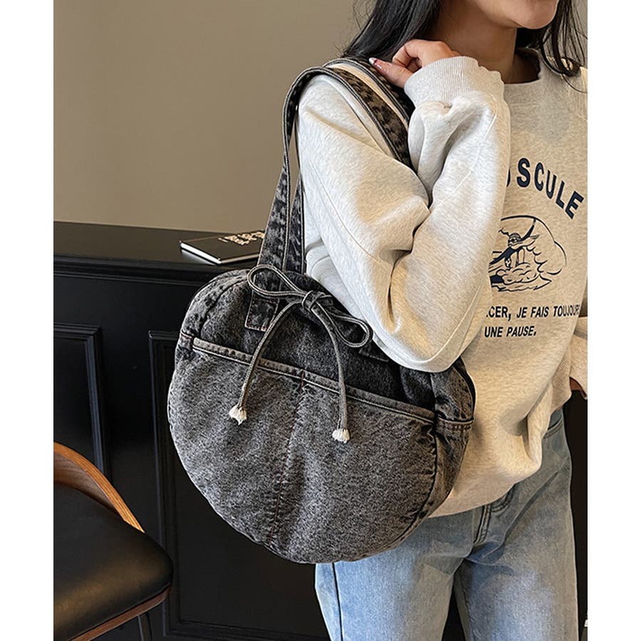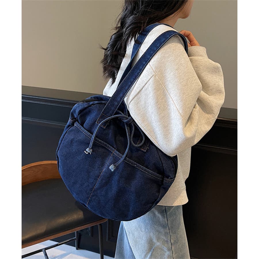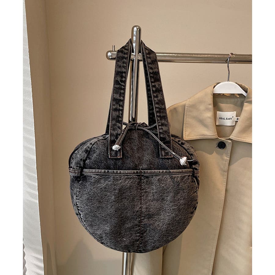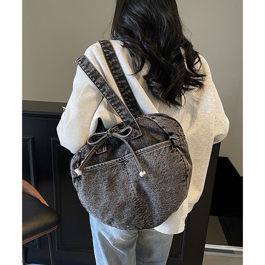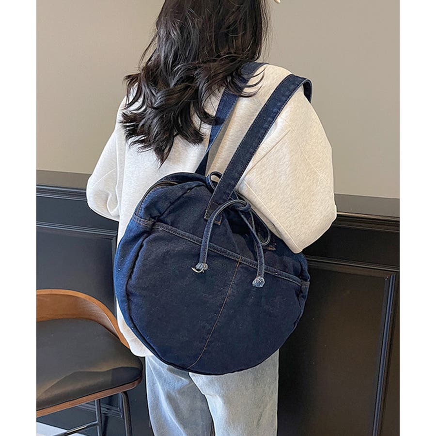 カジュアルな雰囲気が可愛いデニム素材のラウンドバッグです。