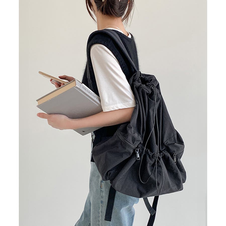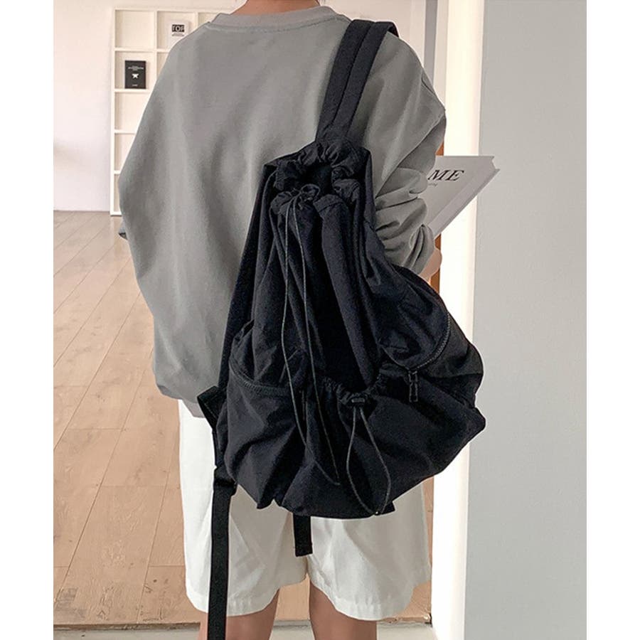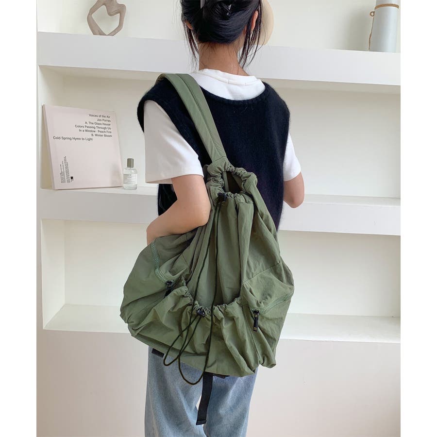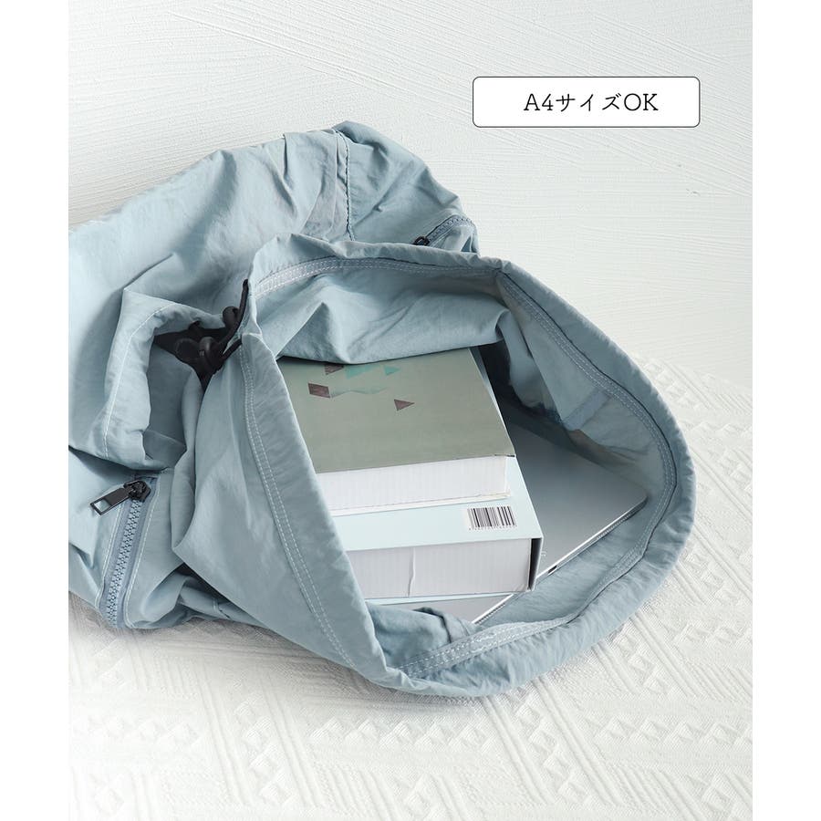 開口部はドローストリング仕様で、大きく開けられるため、物の出し入れがスムーズ