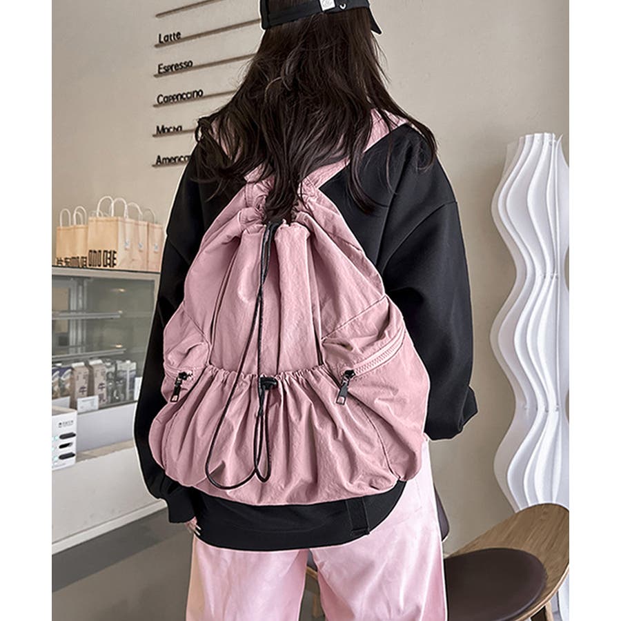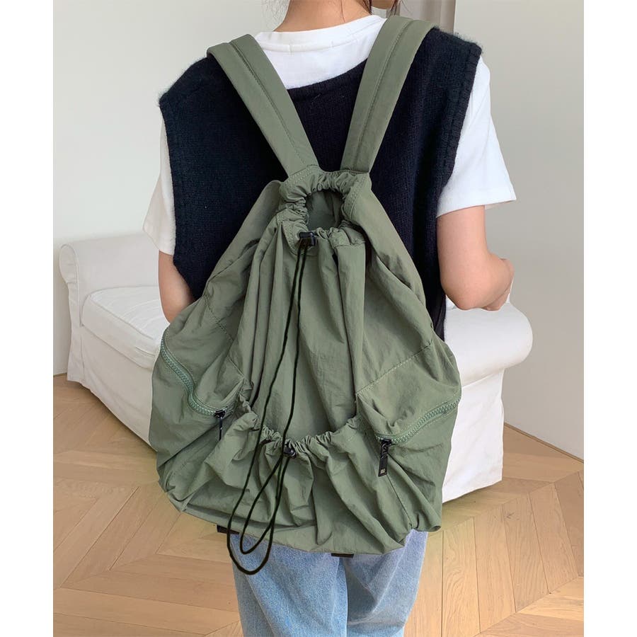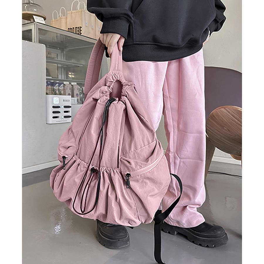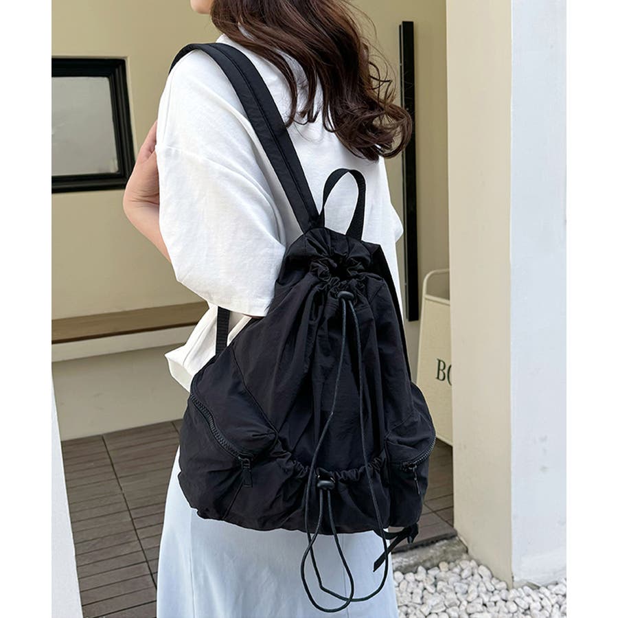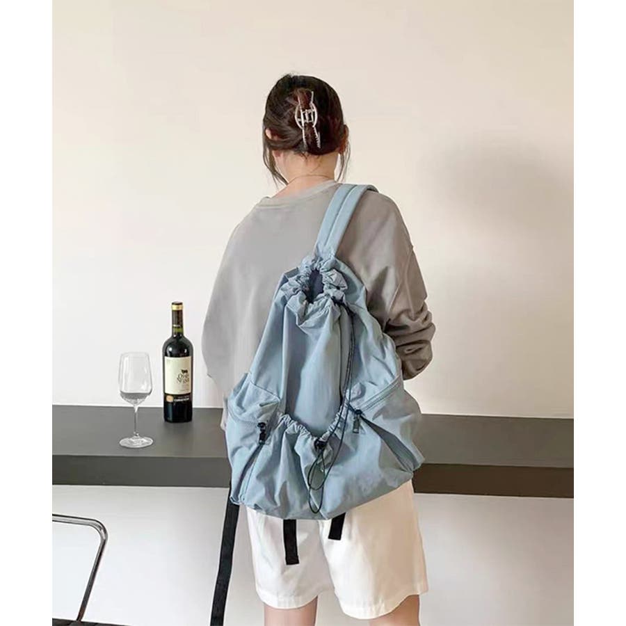 開口部はドローストリング仕様で、大きく開けられるため、物の出し入れがスムーズ