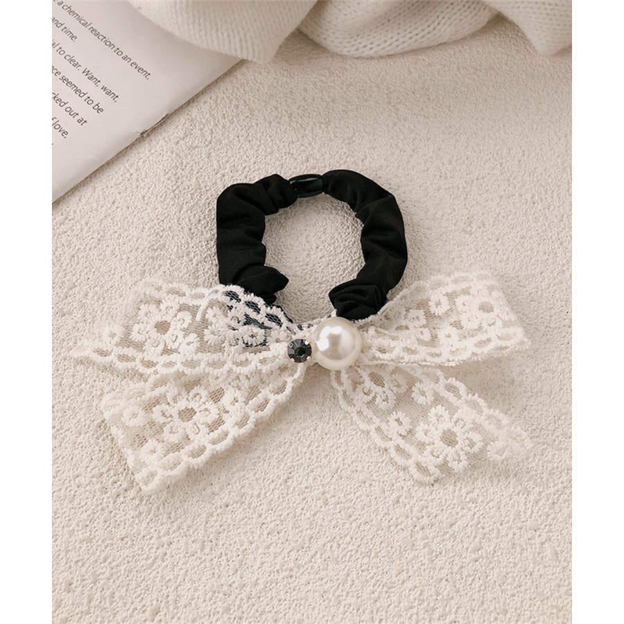 シュシュ レースリボン パール ヘアゴム