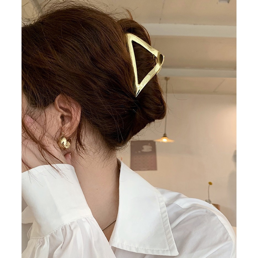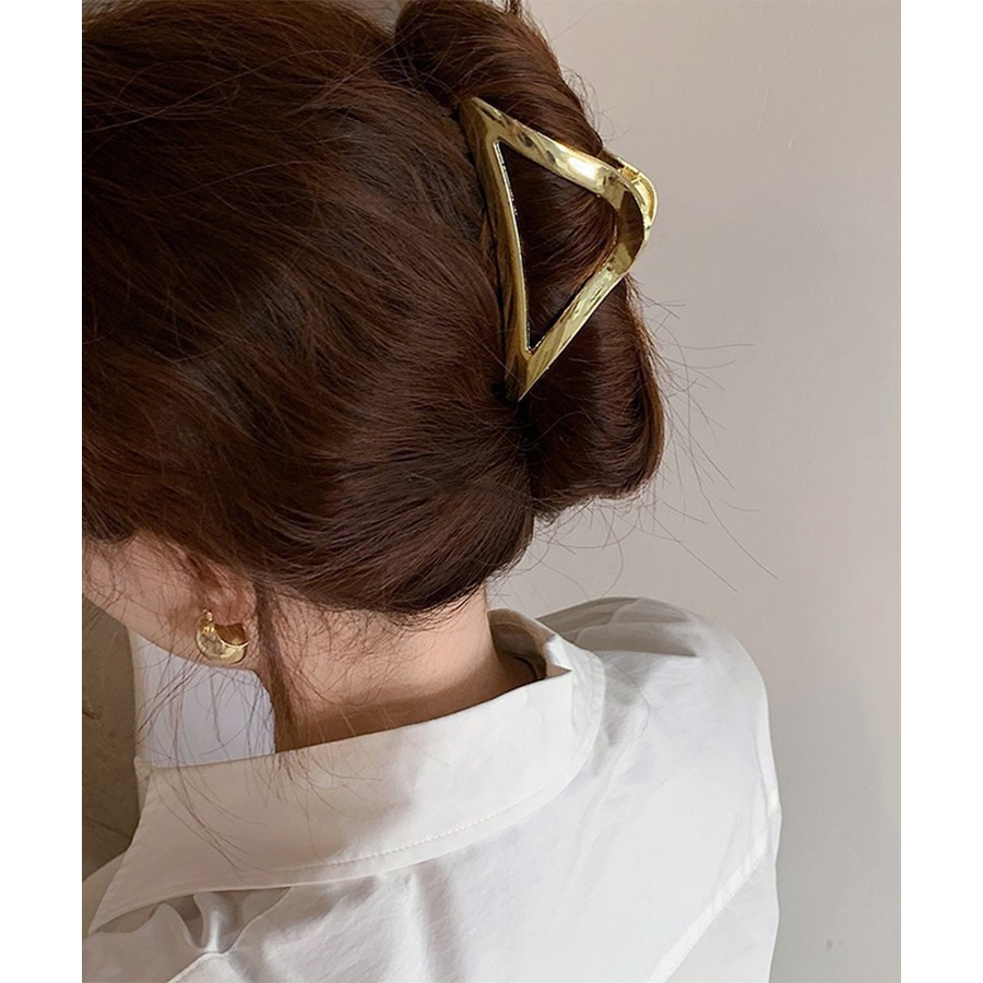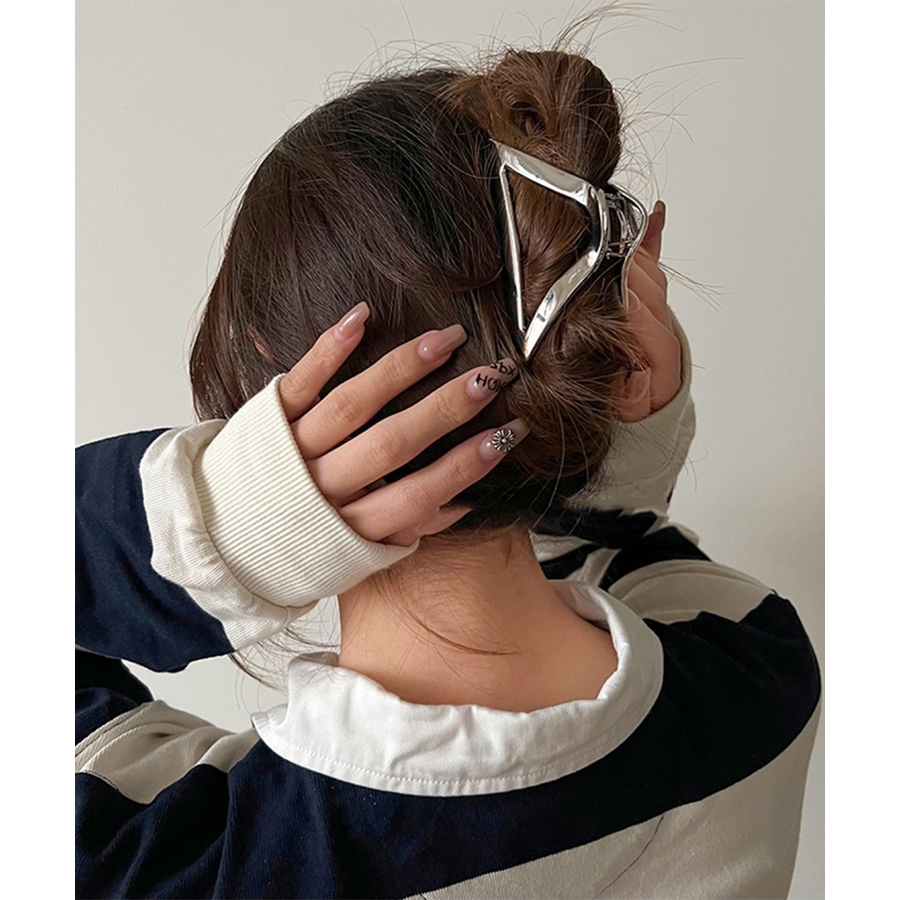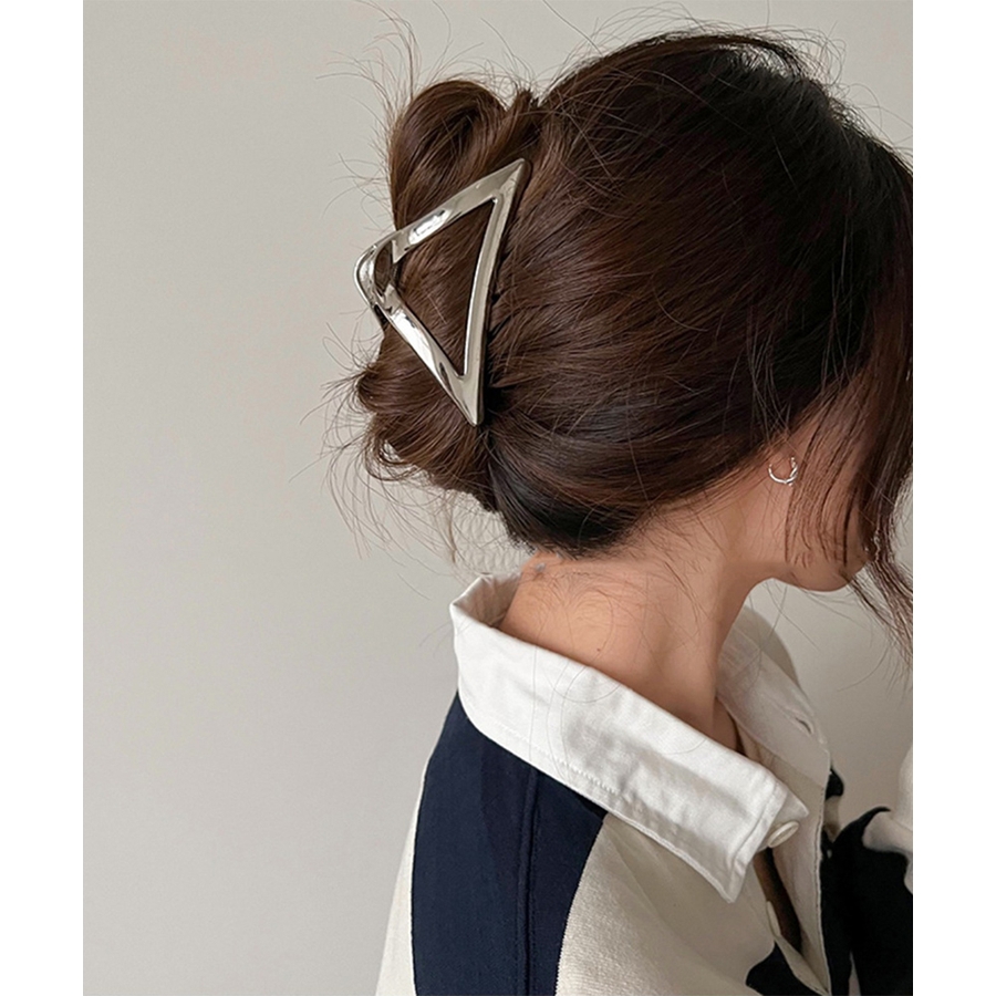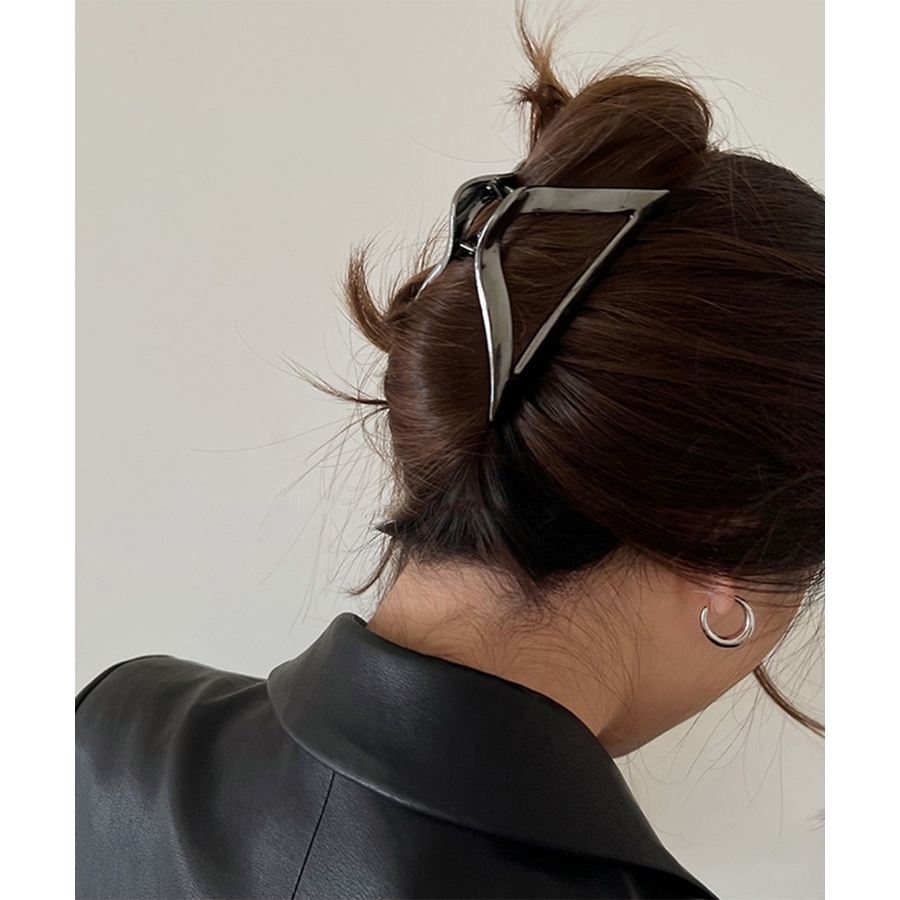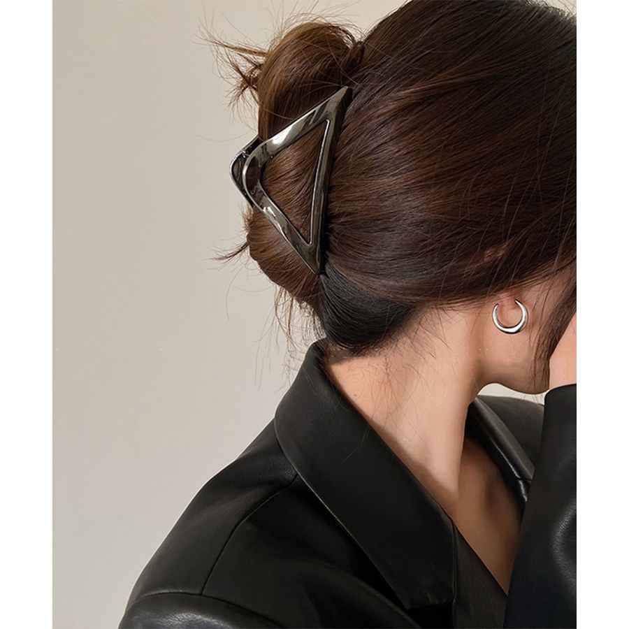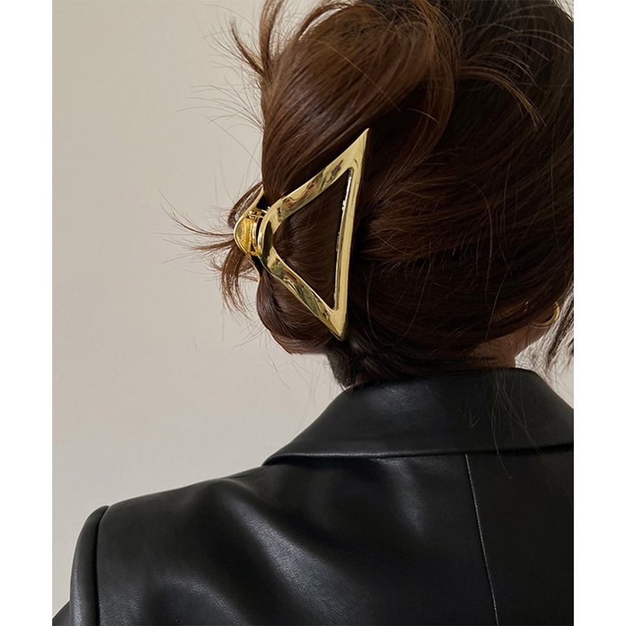 シンプルながら存在感のある三角形メタルヘアクリップ。
