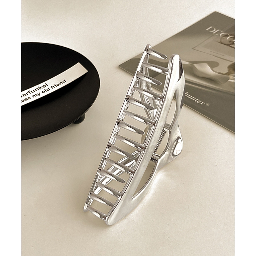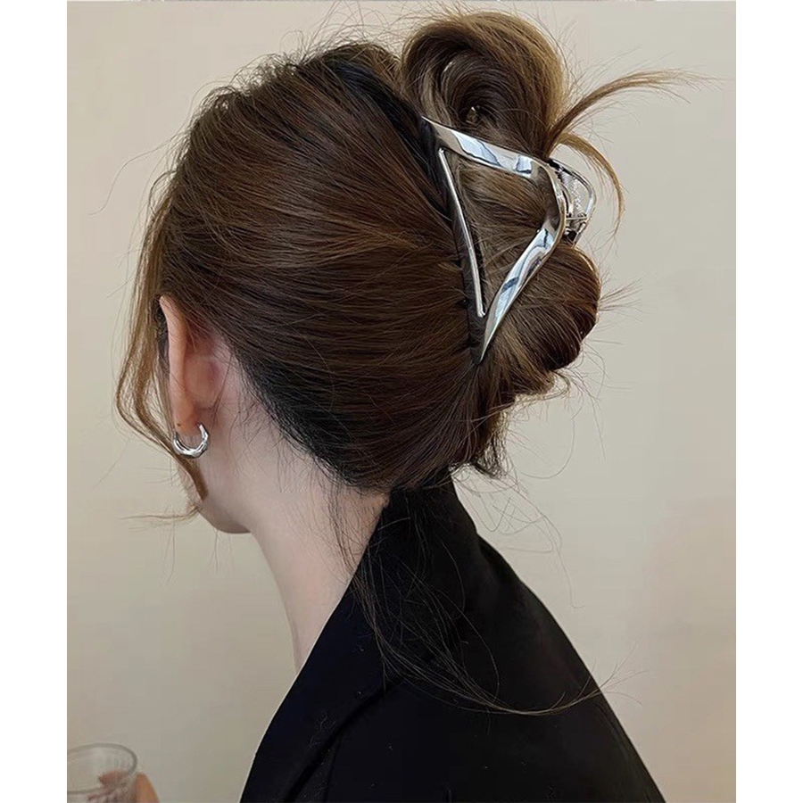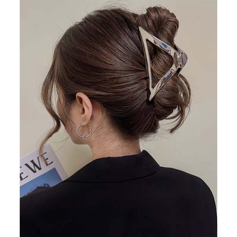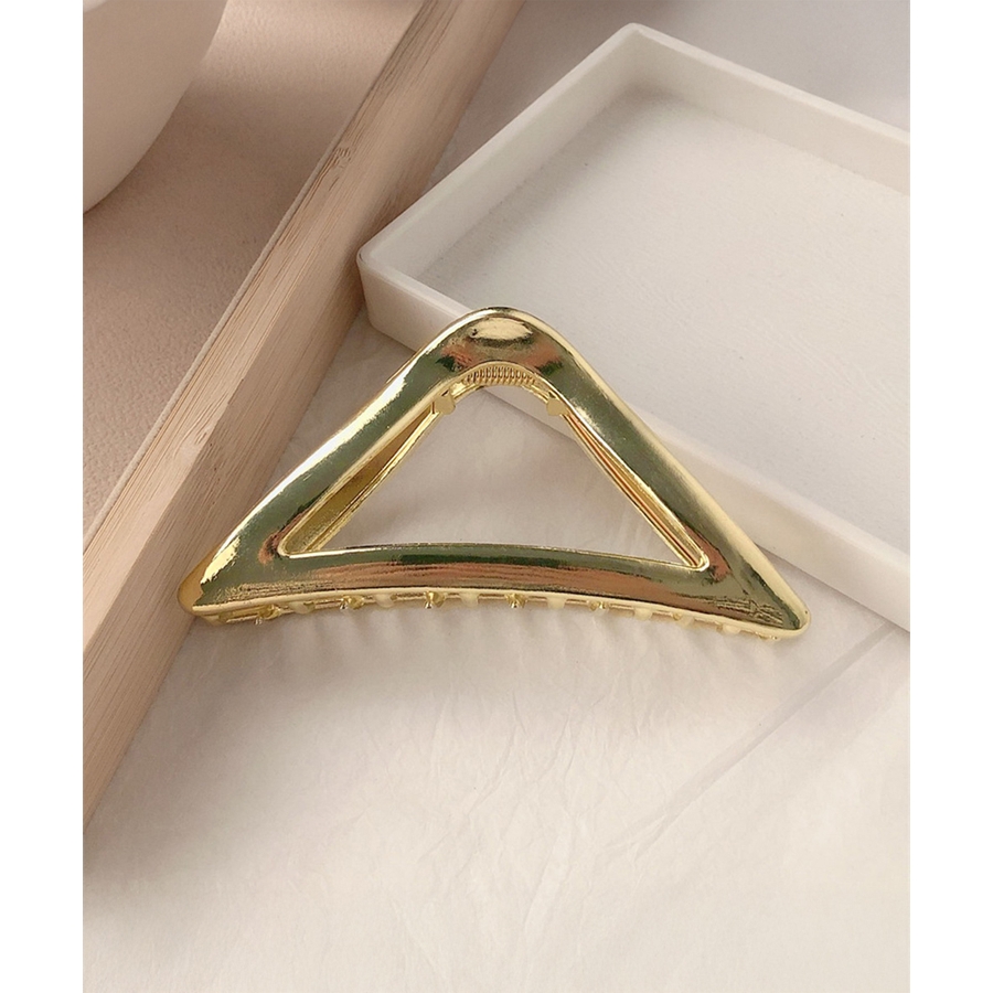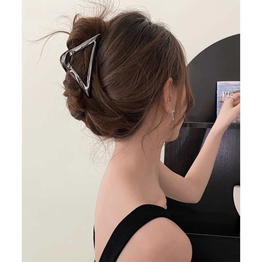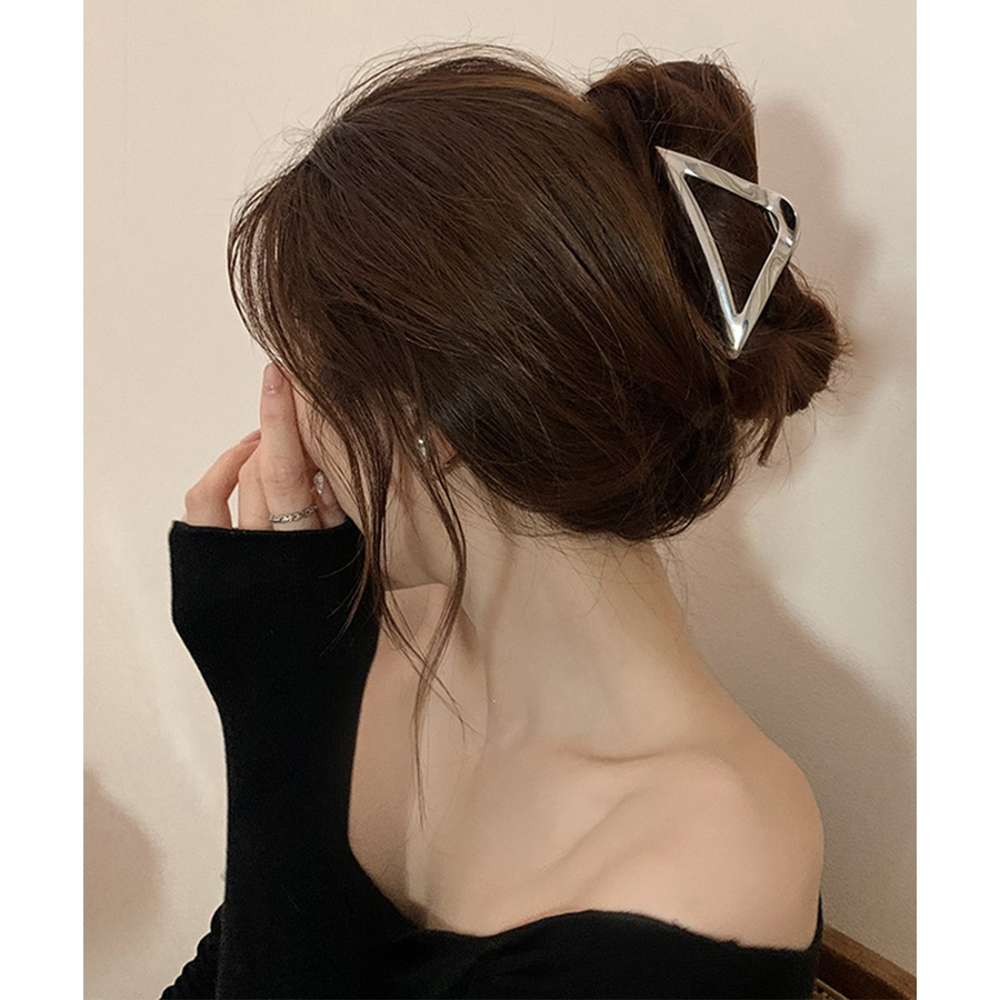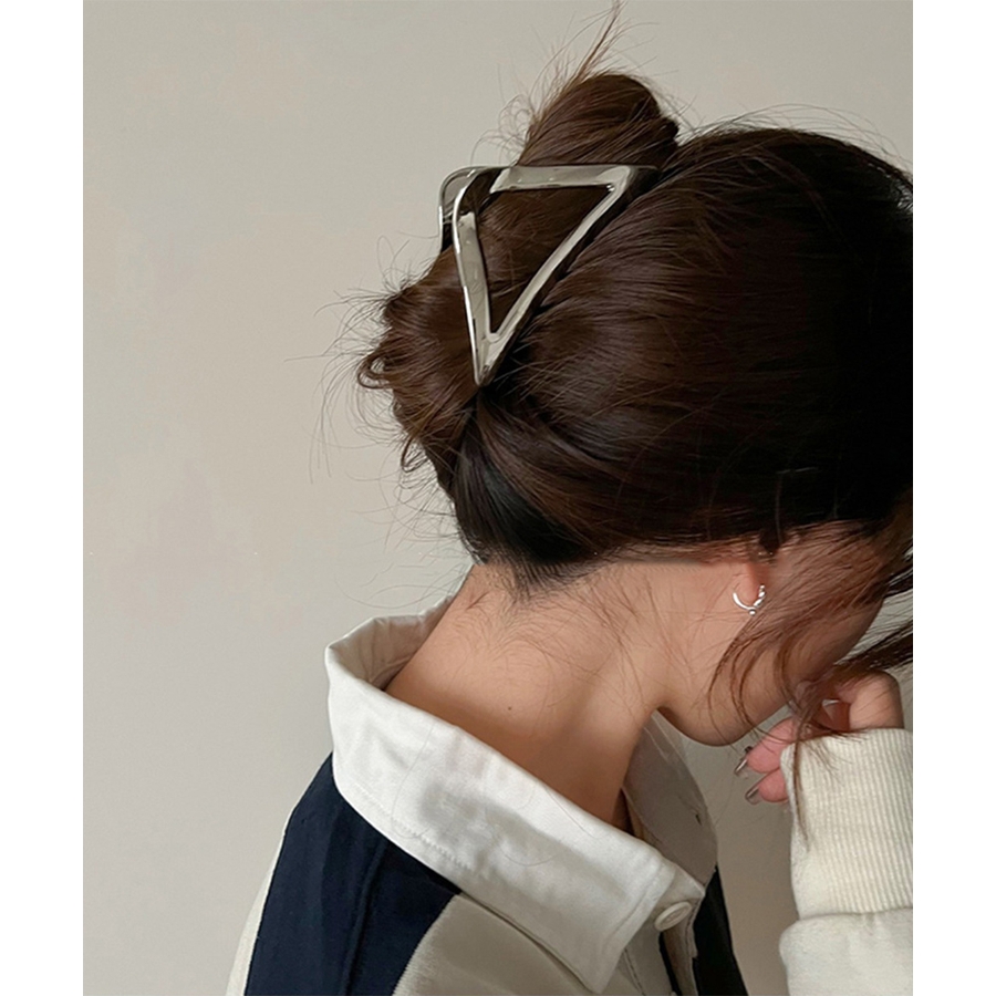 シンプルながら存在感のある三角形メタルヘアクリップ。