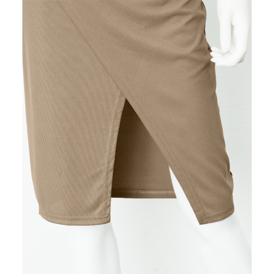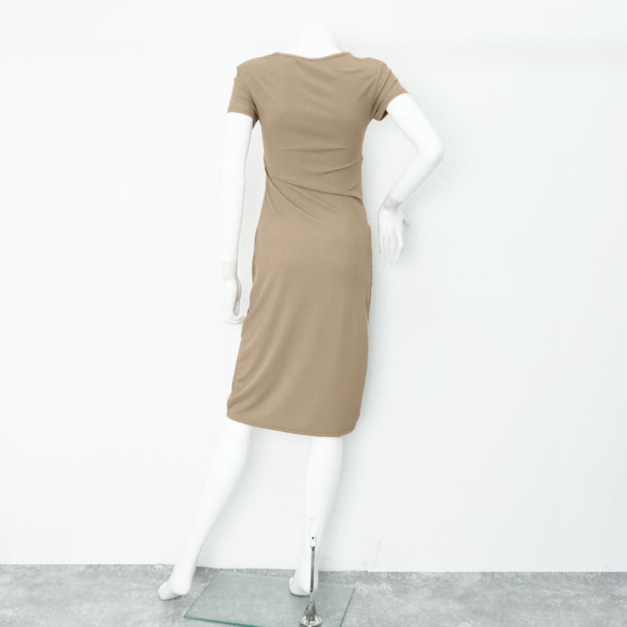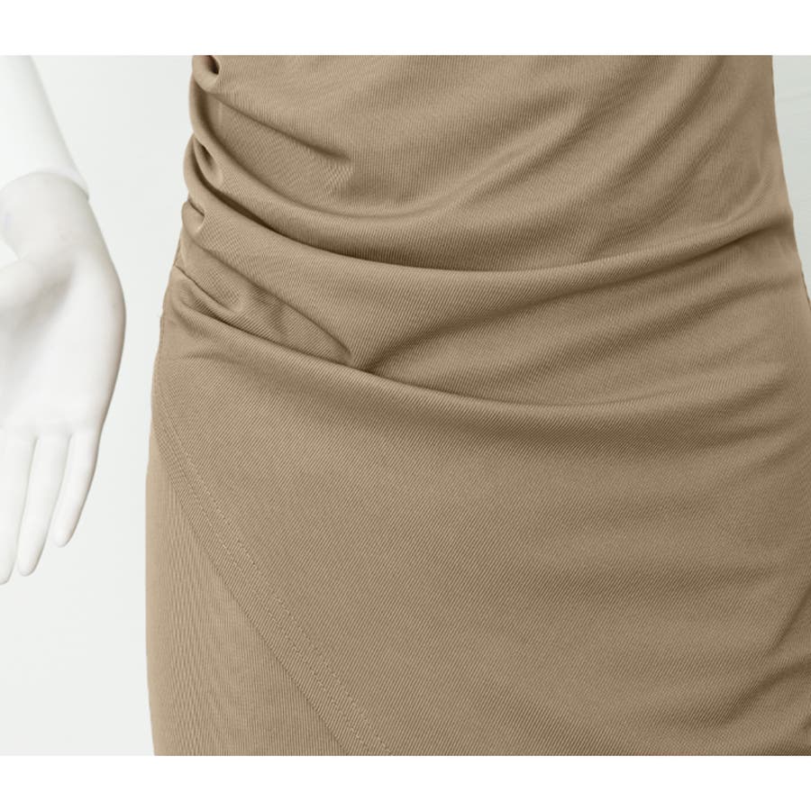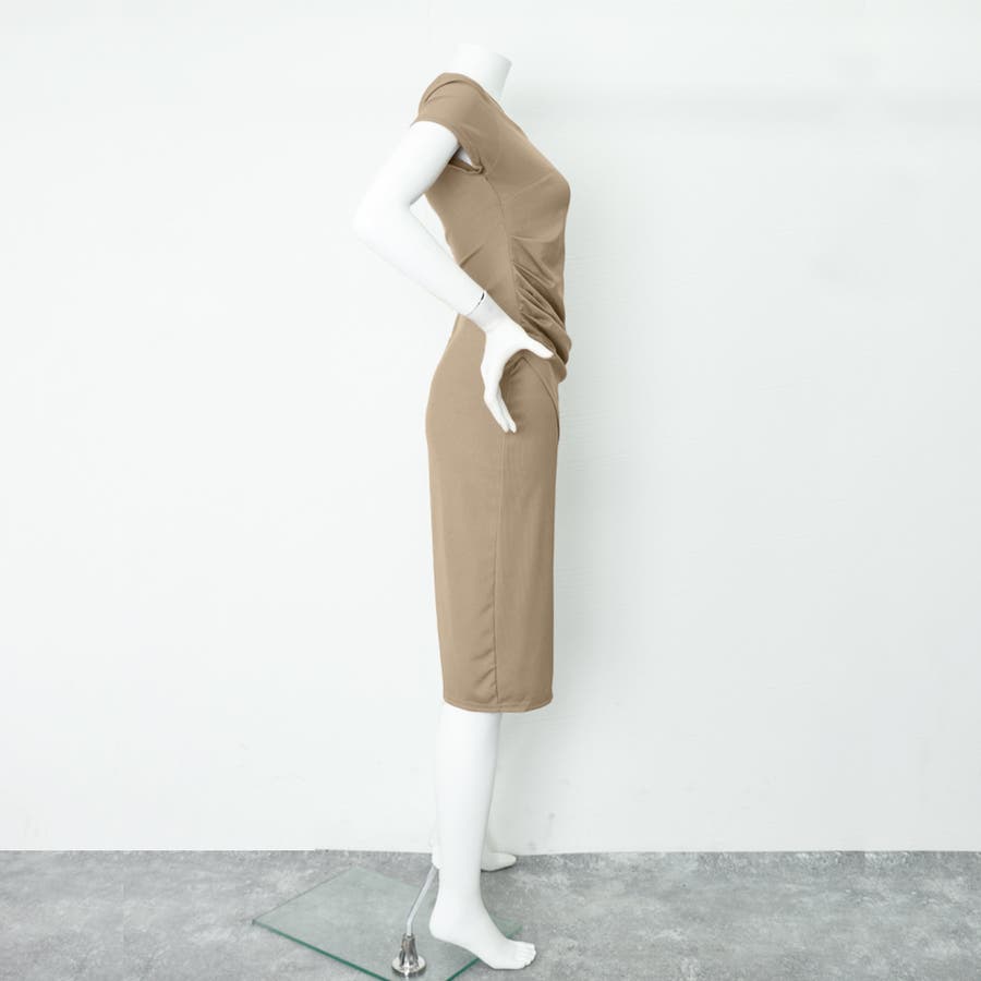 【モカベージュ】ワンピース 半袖 アシンメトリー タイト