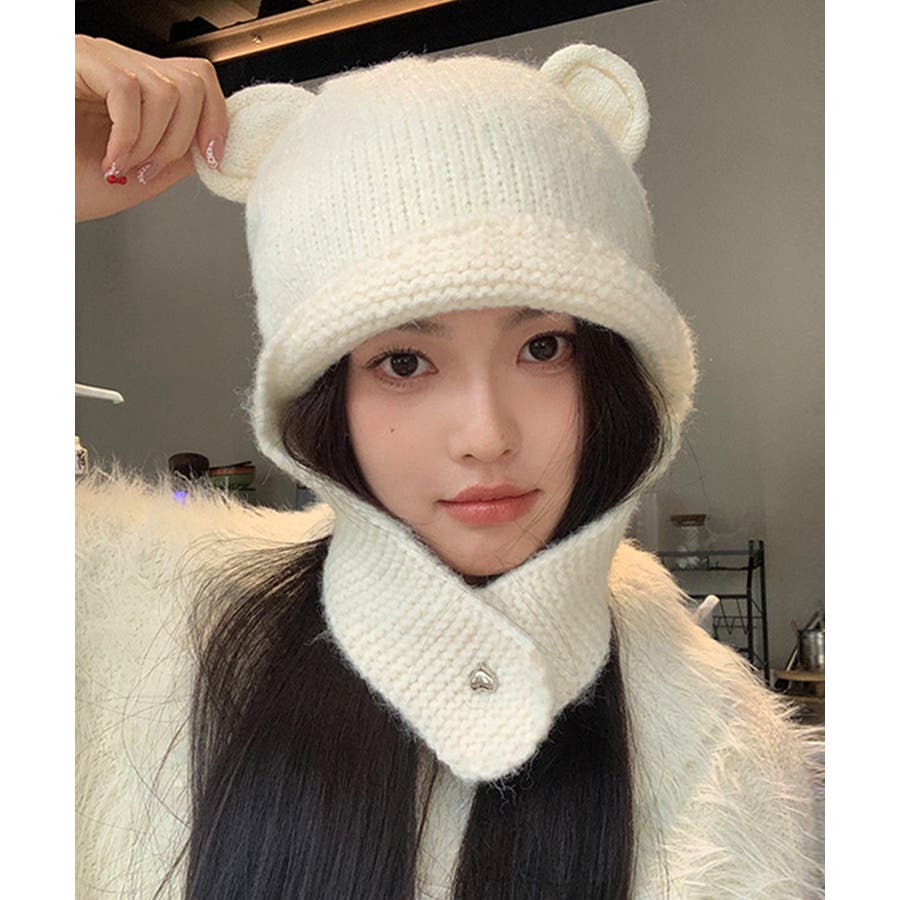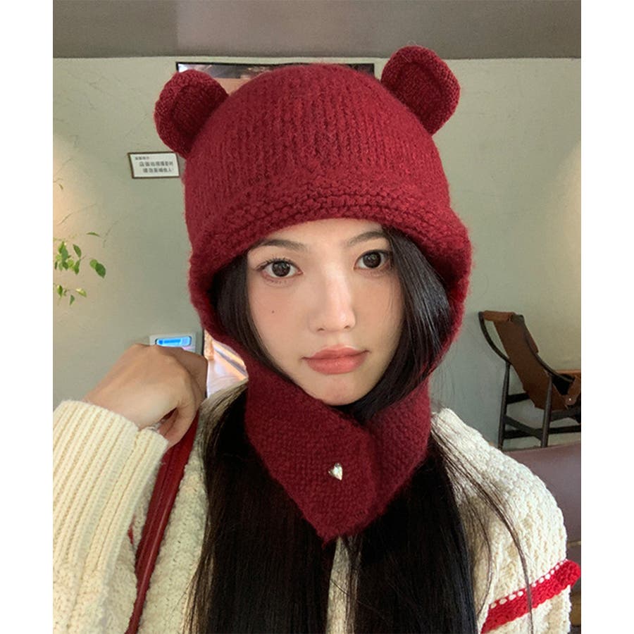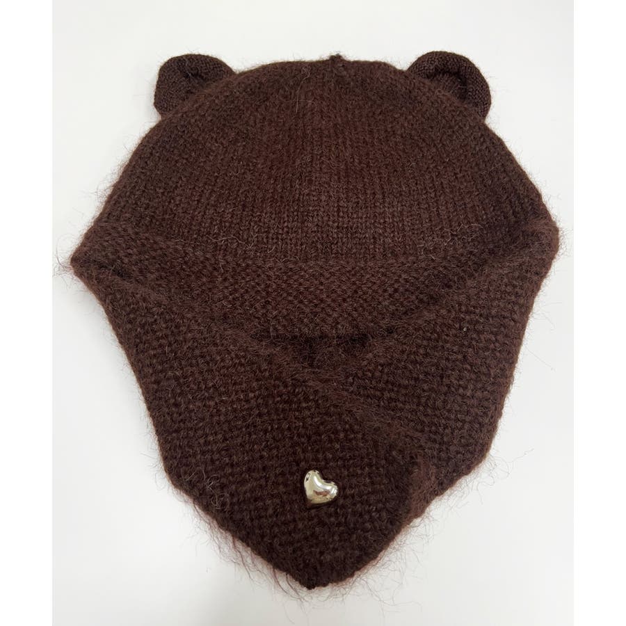 リブ編み ハートボタン 小顔 秋冬 あったか 折りたたみ カジュアル おしゃれ 可愛い 人気 お出掛け 保温防寒