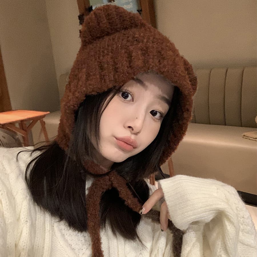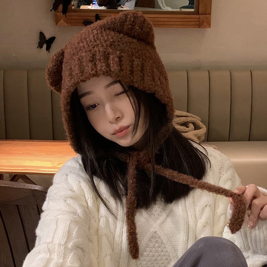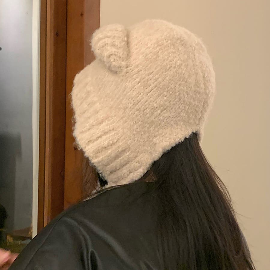 リブ編み帽子 耳付き 韓国風 おしゃれ 秋冬 折りたたみ シルエット カジュアル おしゃれ 可愛い 人気 お出掛け