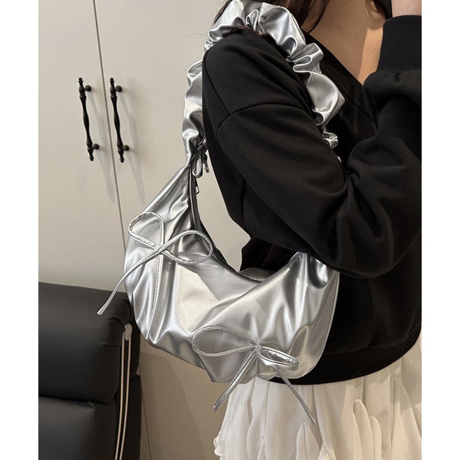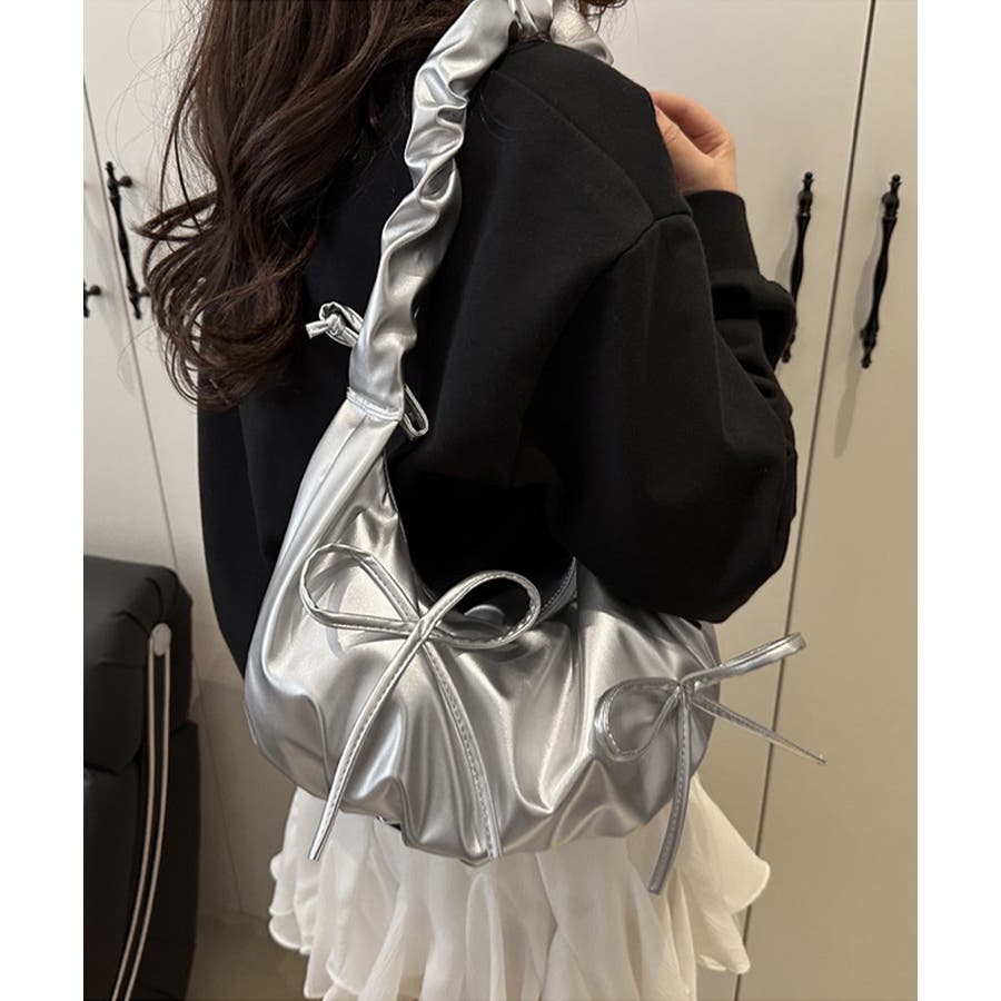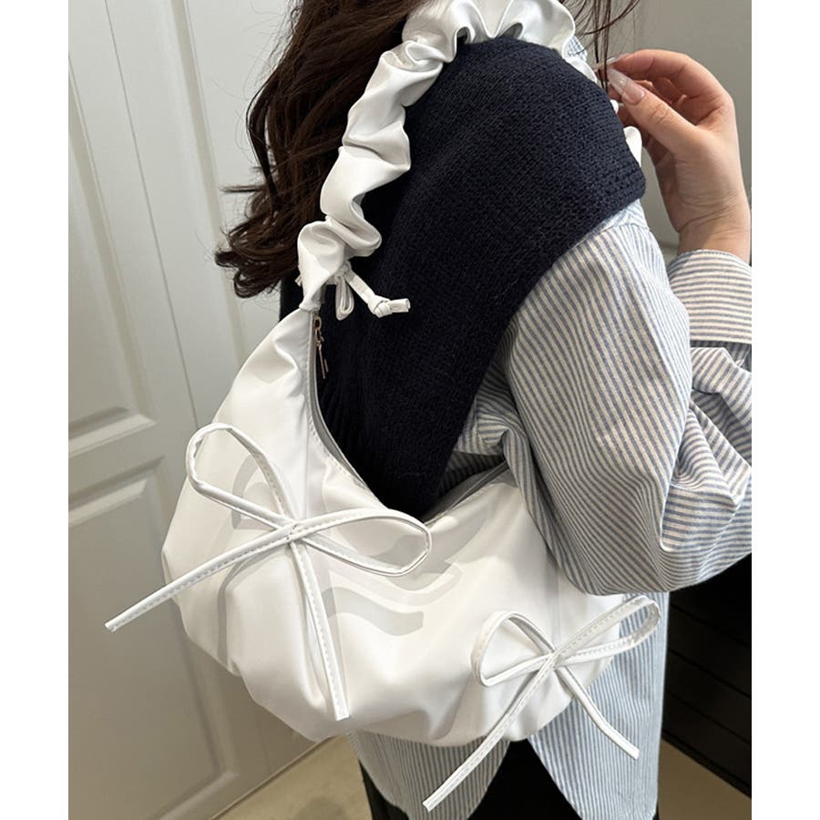 可愛いリボンデザインがアクセントとなるショルダーバッグ。