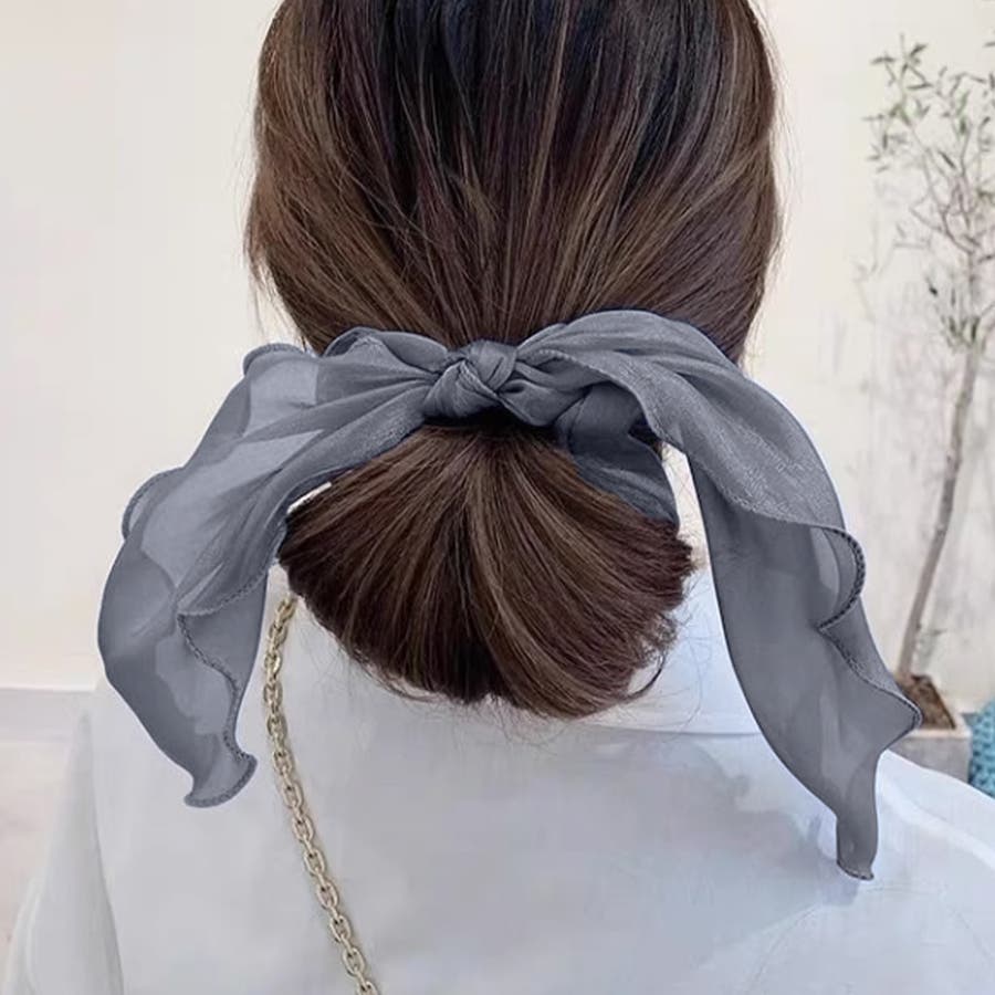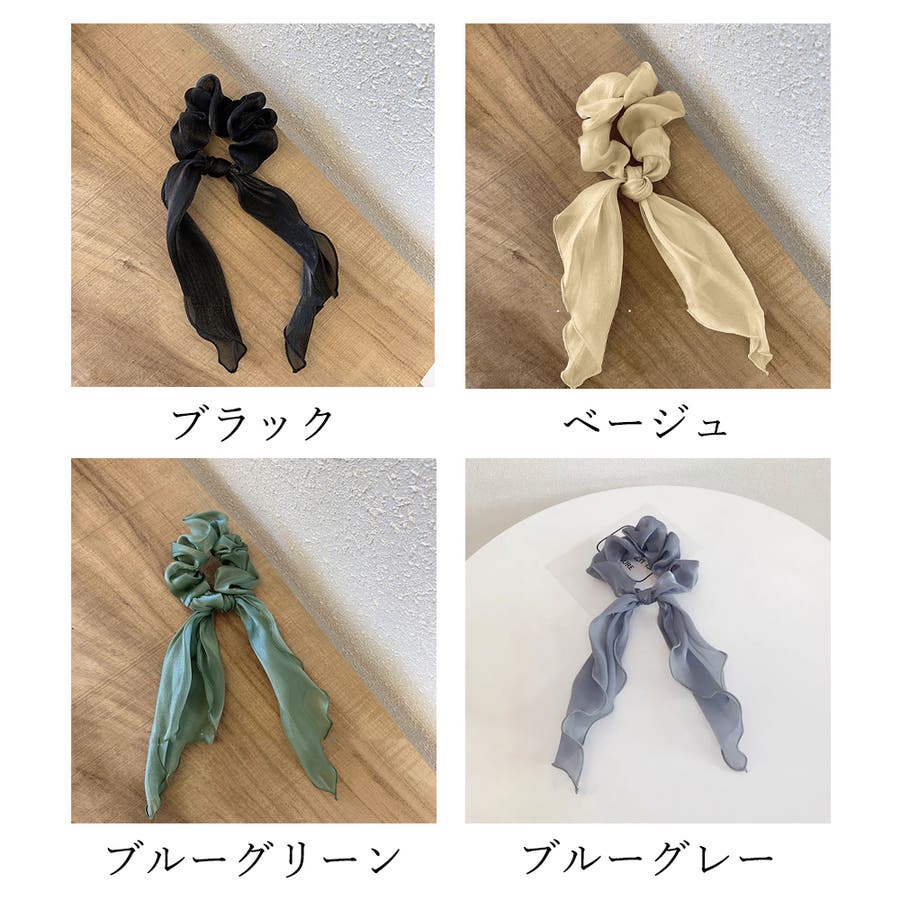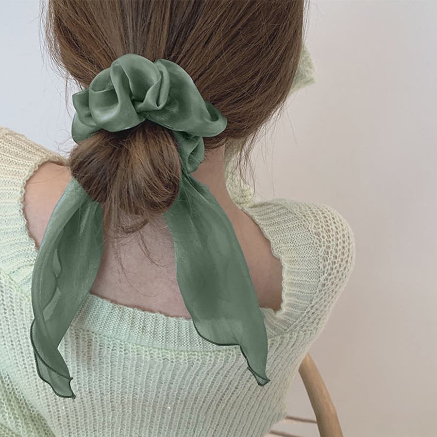 シュシュ 透け感サテン ヘアゴム 韓国風